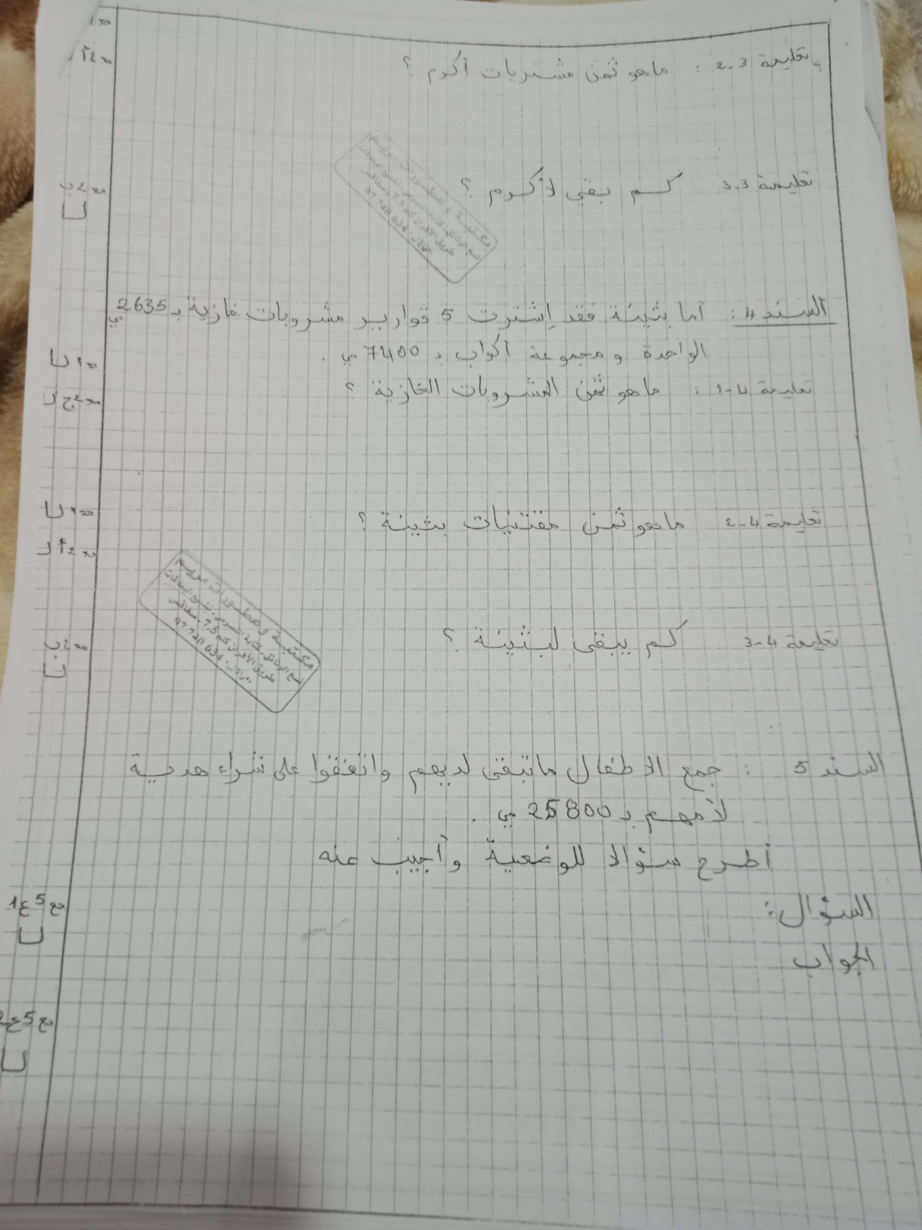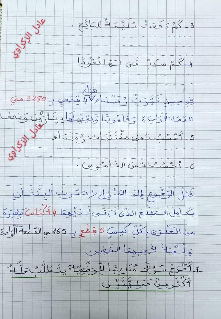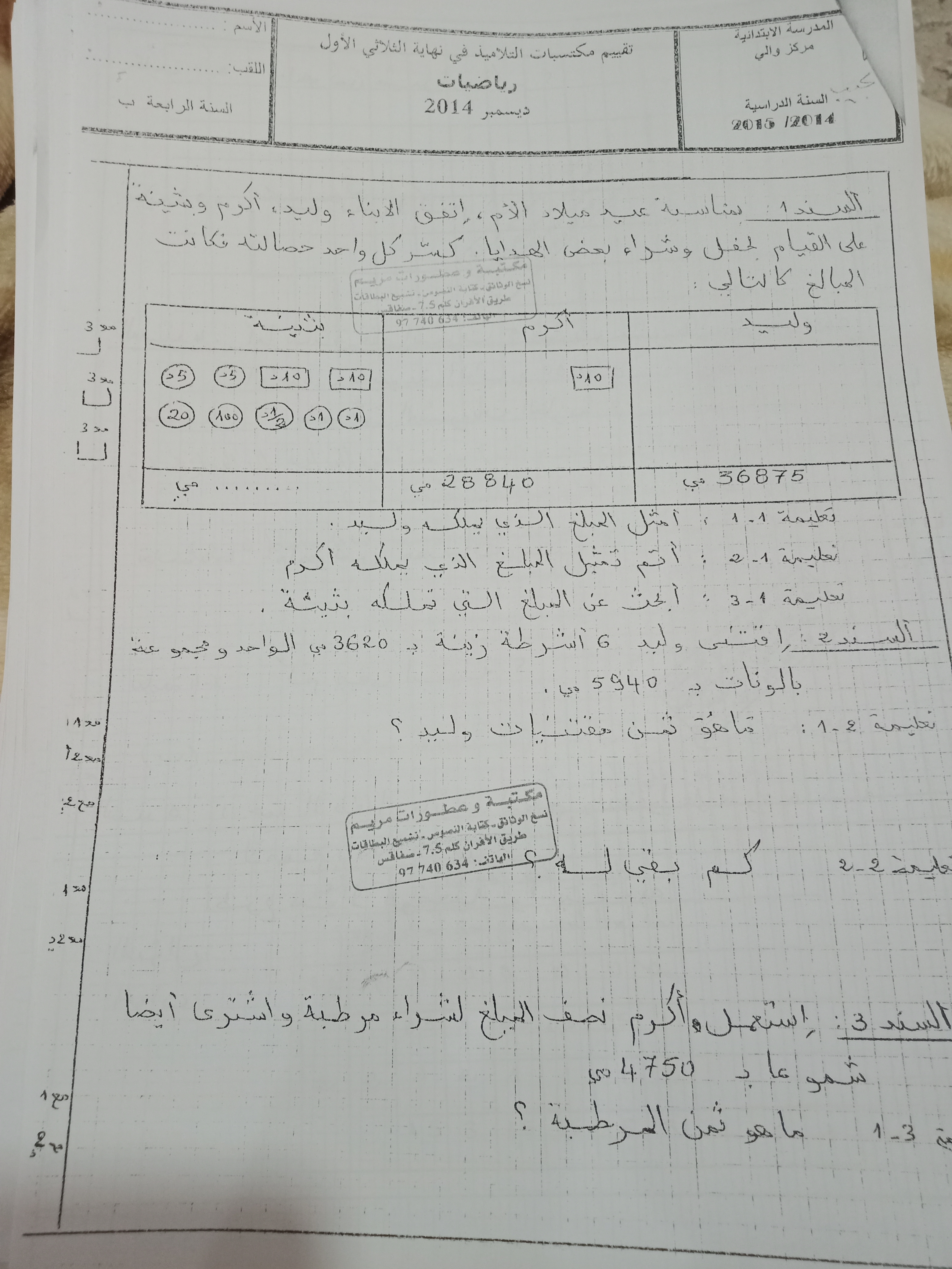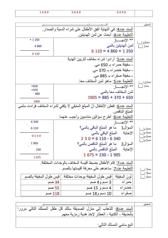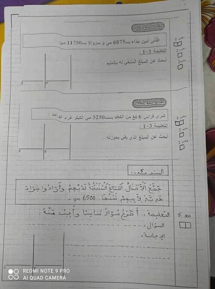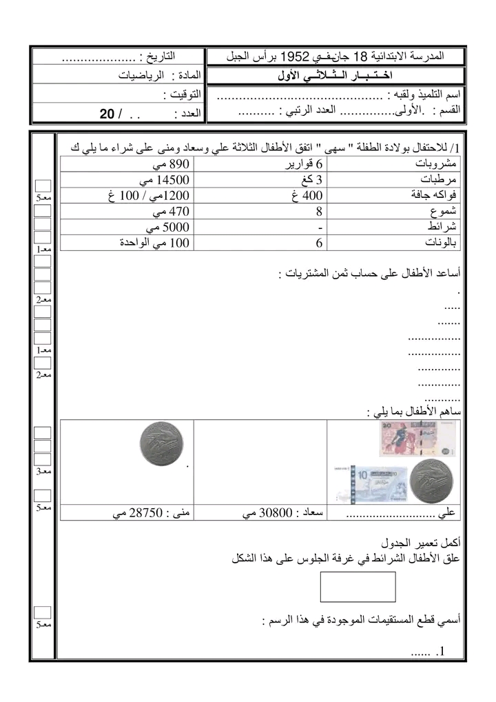 اختبارات رياضيات الثلاثي الأول سنة رابعة ♥️