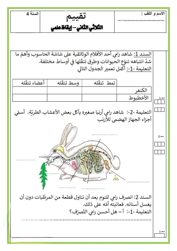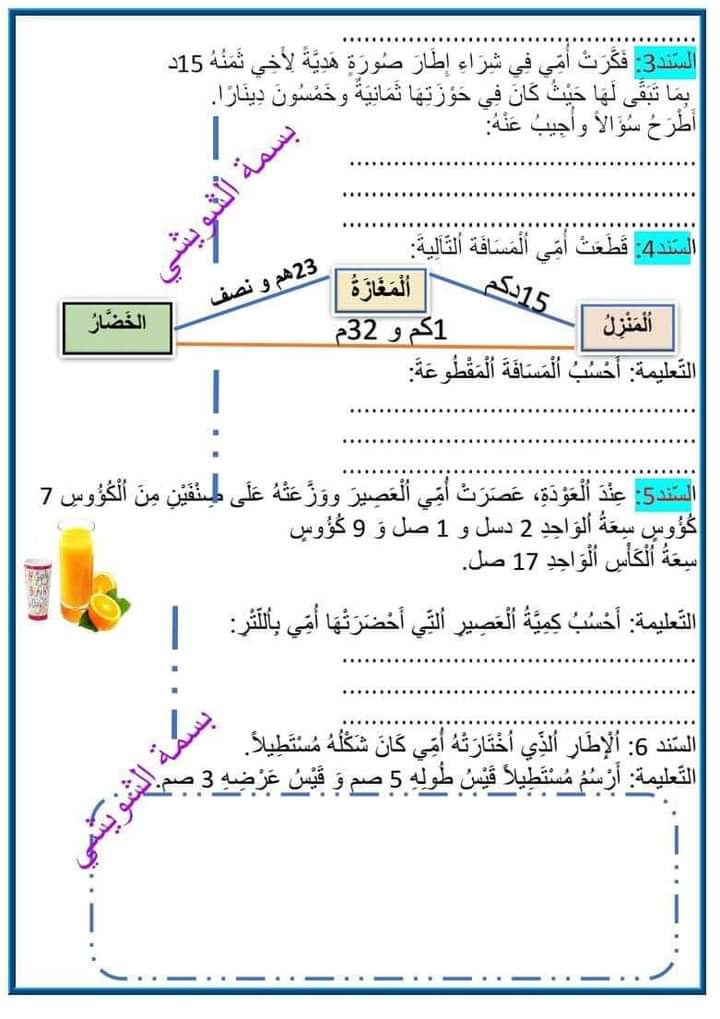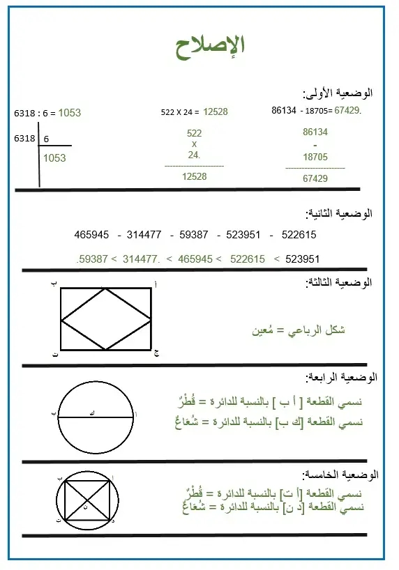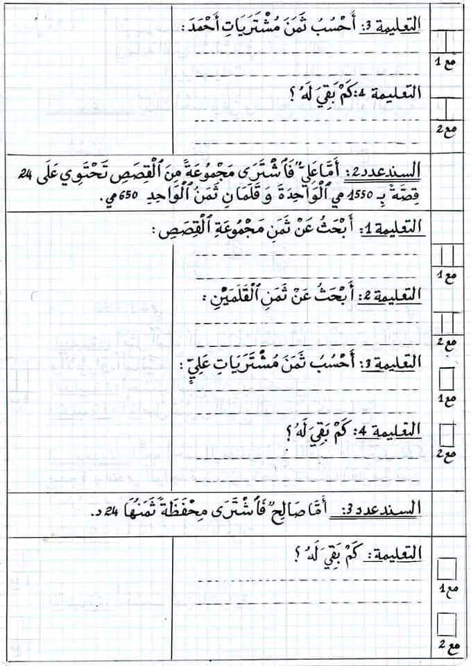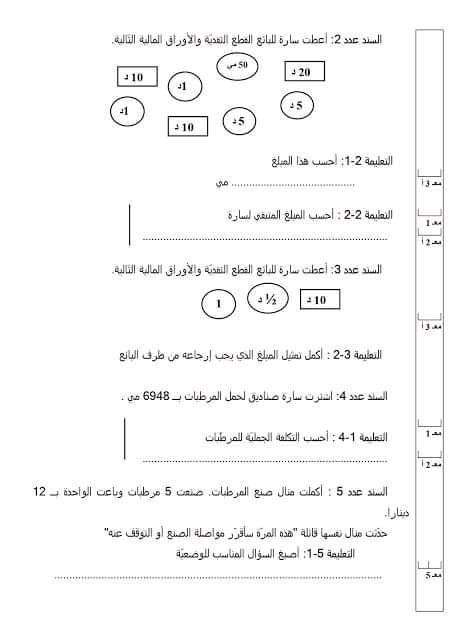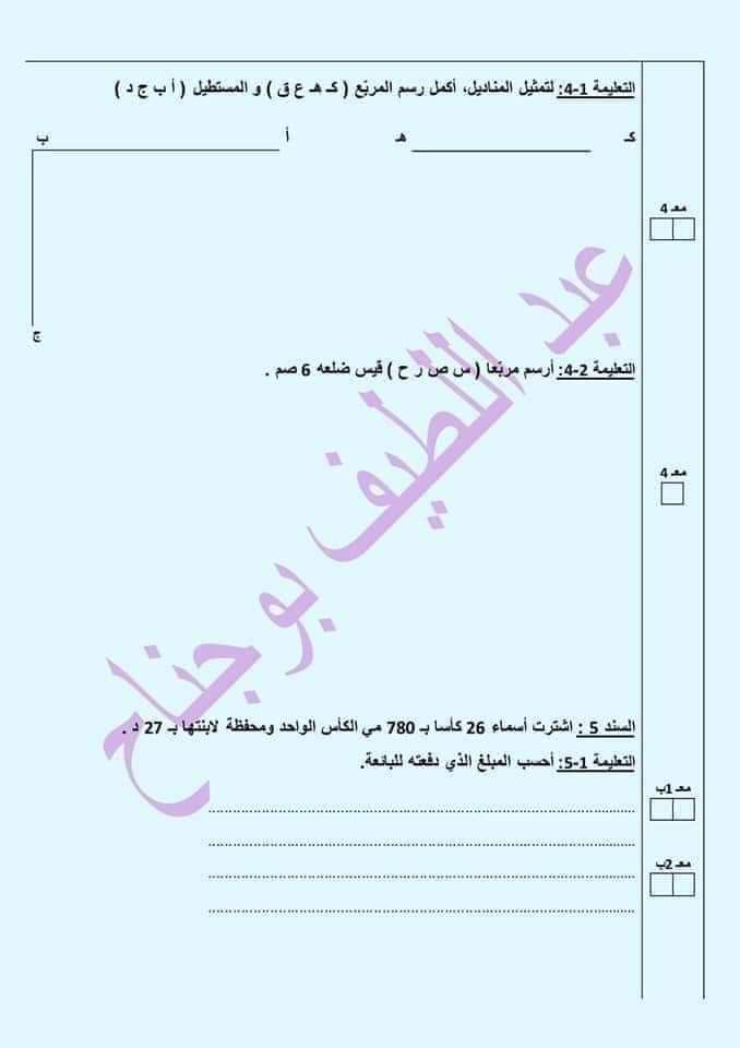 تقاييم رياضيات الثلاثي الثاني سنة رابعة