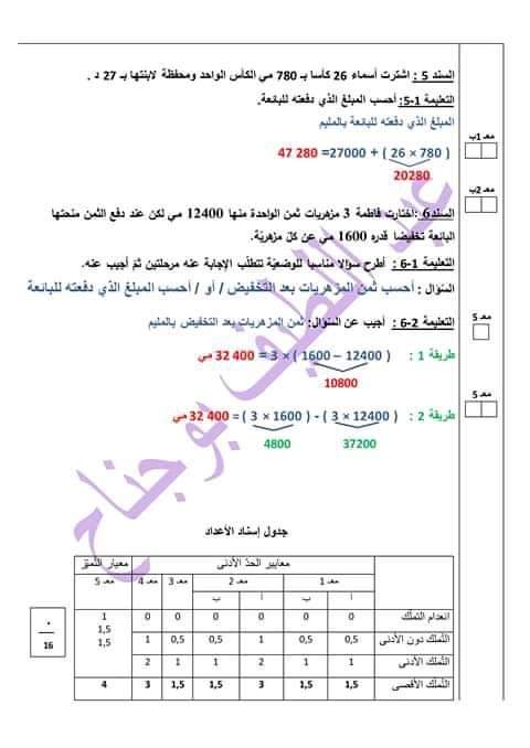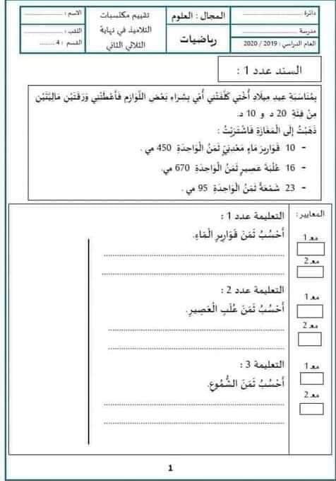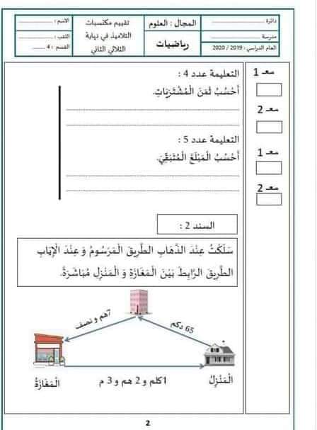 تقييم رياضيات ثلاثي ثاني