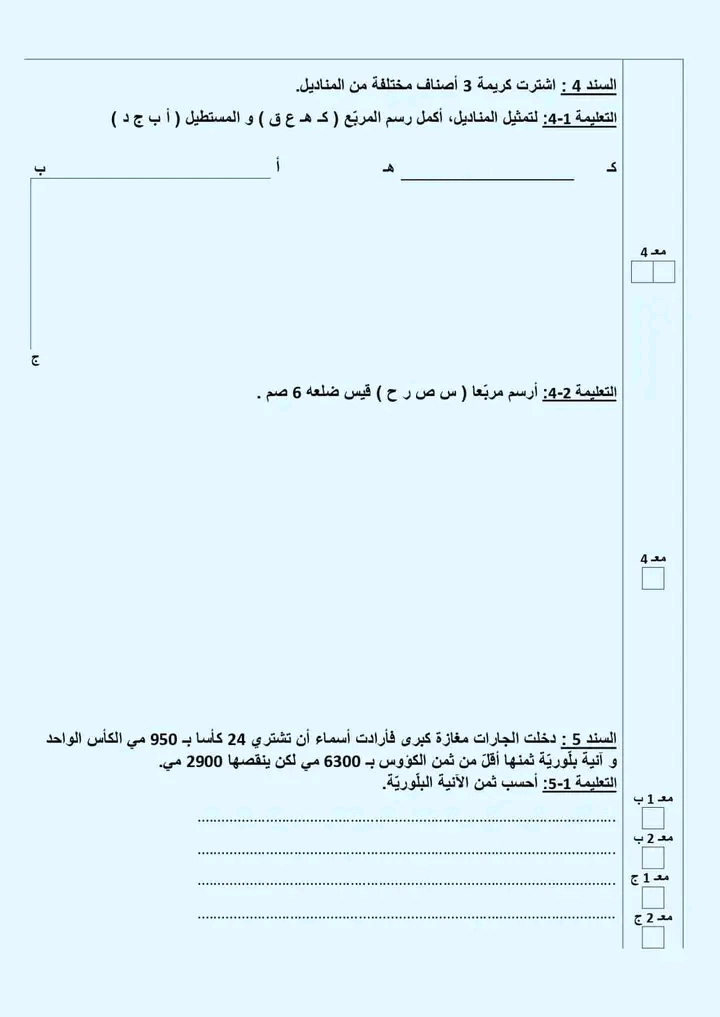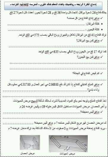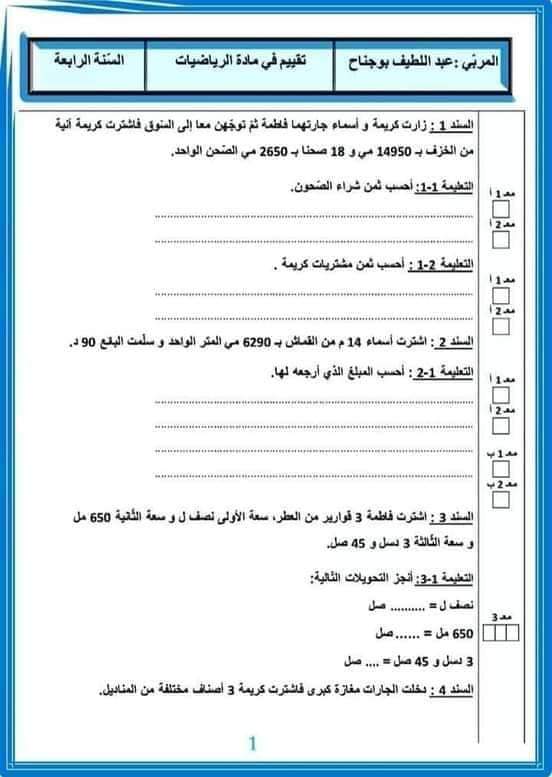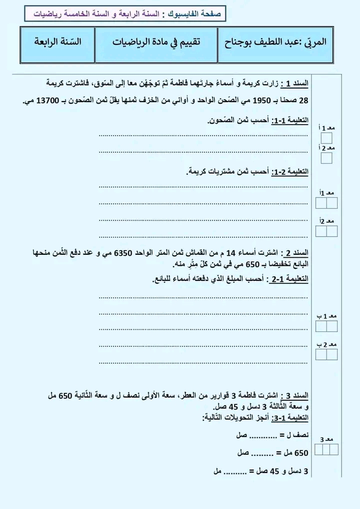 رياضيات سنة رابعة - الثلاثي الثالث