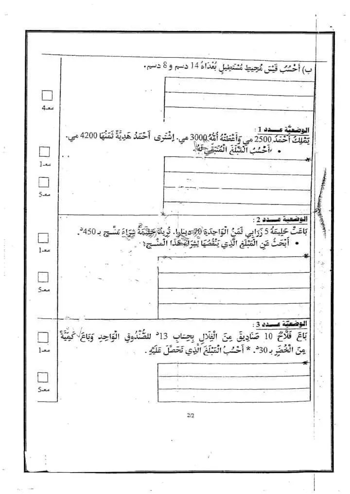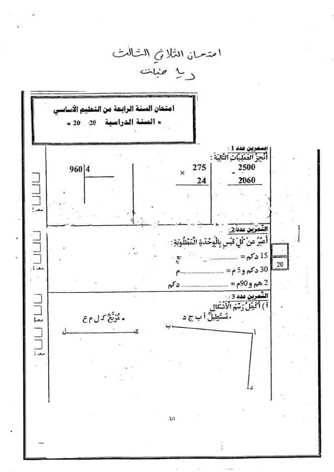 امتحان رياضيات بالاصلاح سنة رابعة الثلاثي الثالث