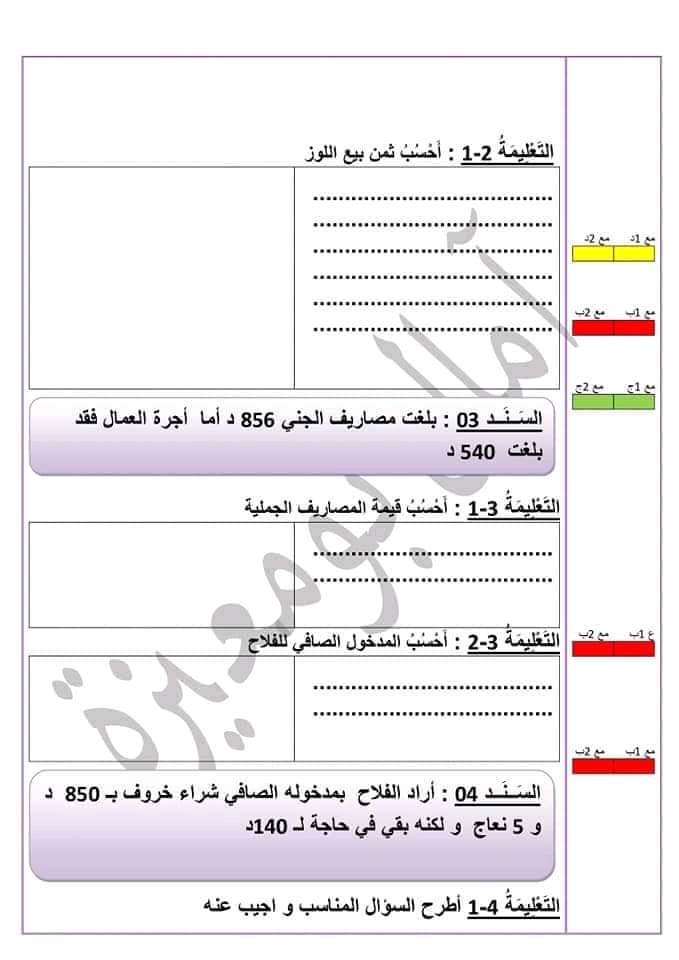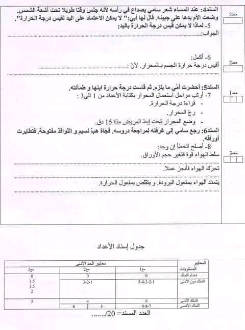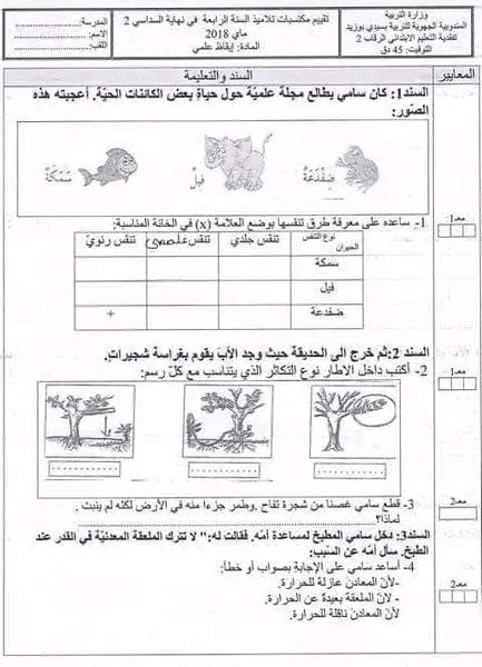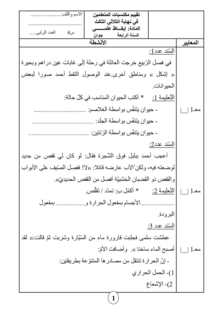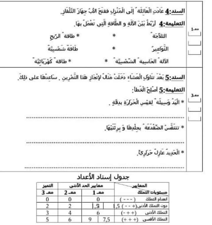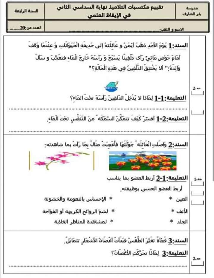 تقييم ابقاظ علمي سنة رابعة ثلاثي ثالث بالإصلاح سنة رابعة