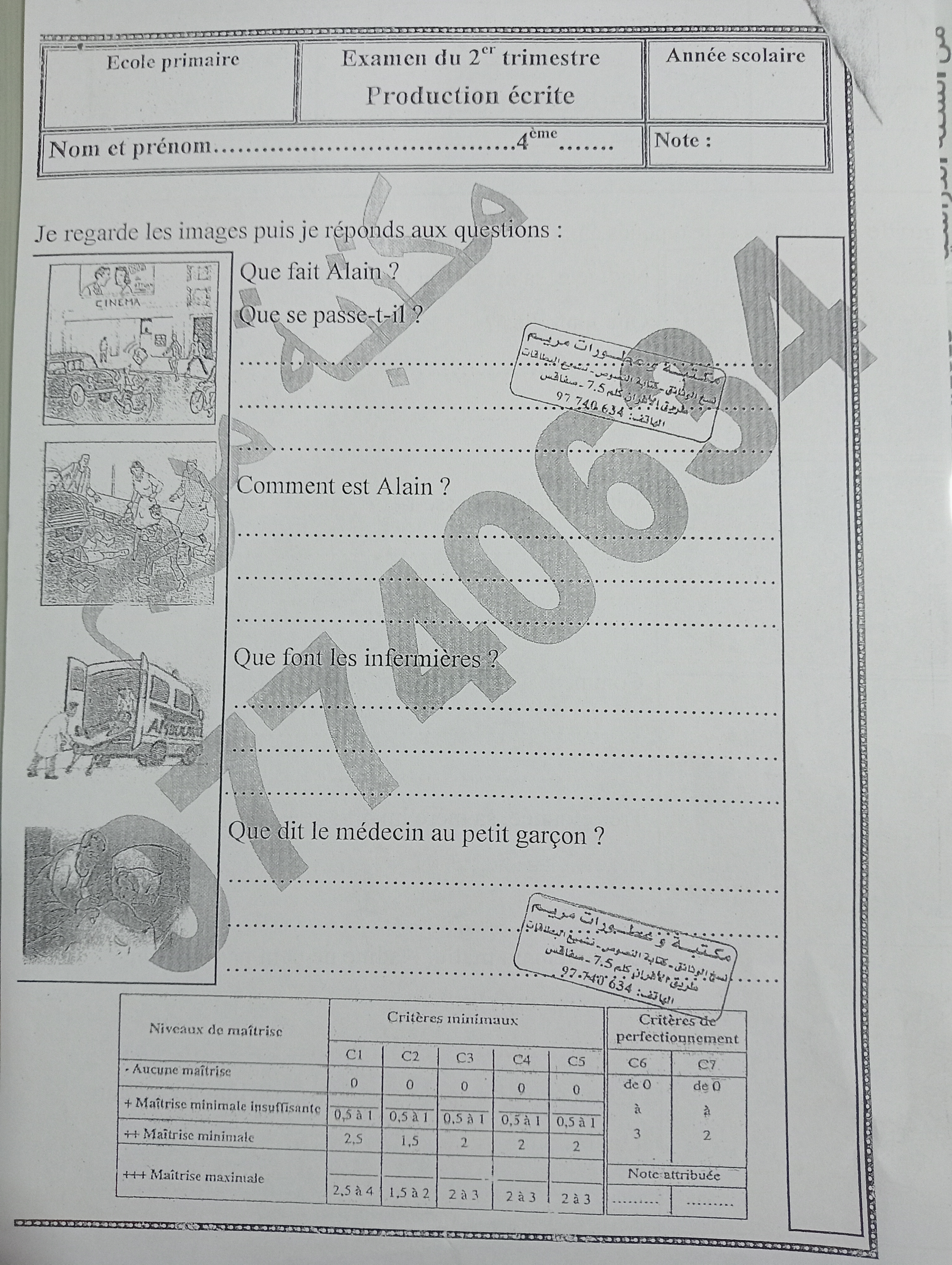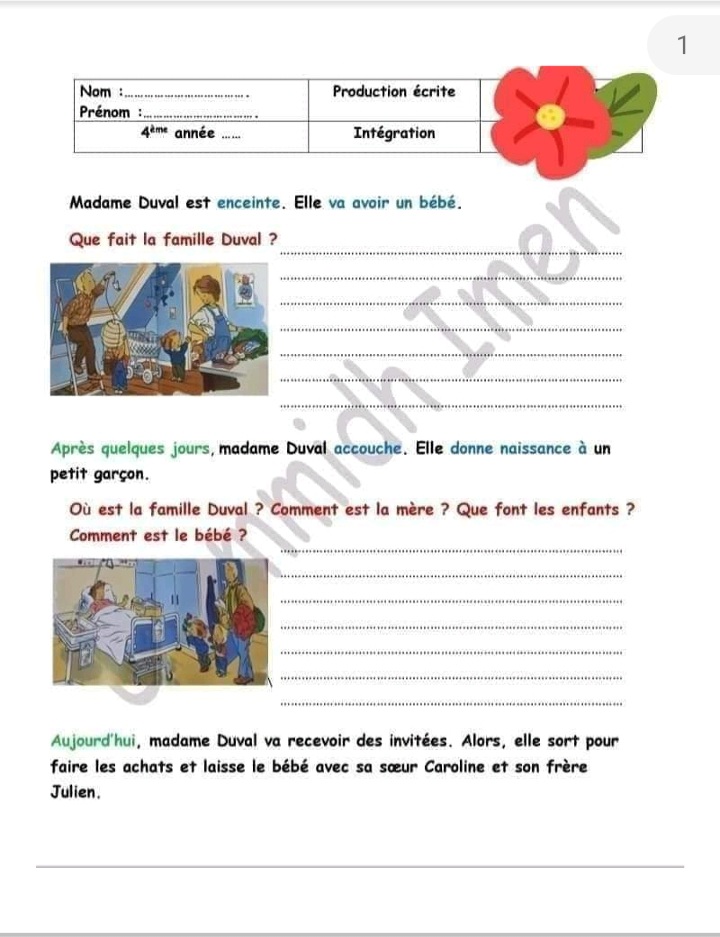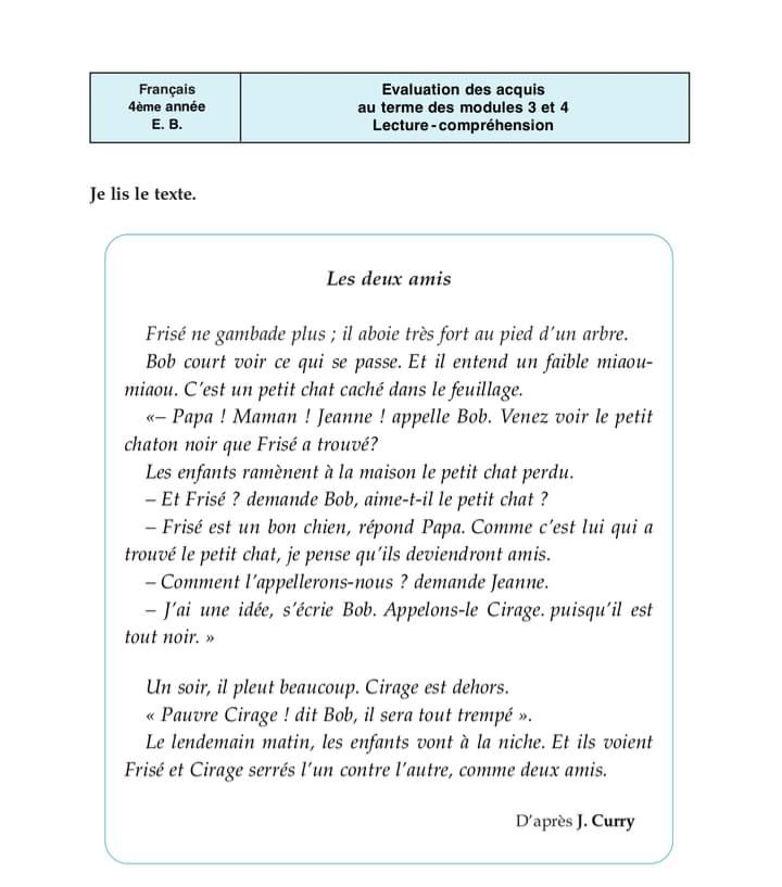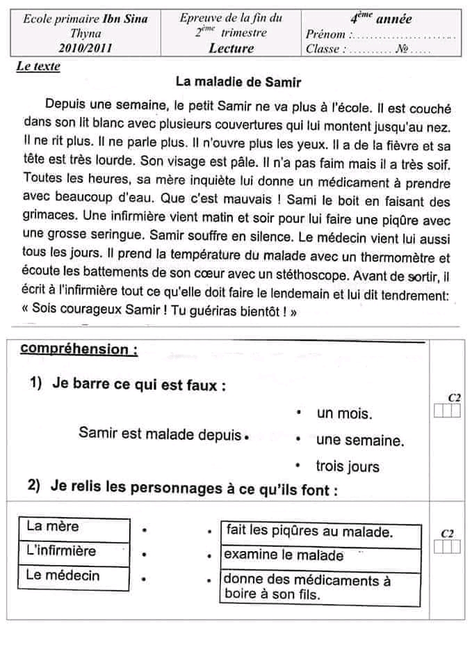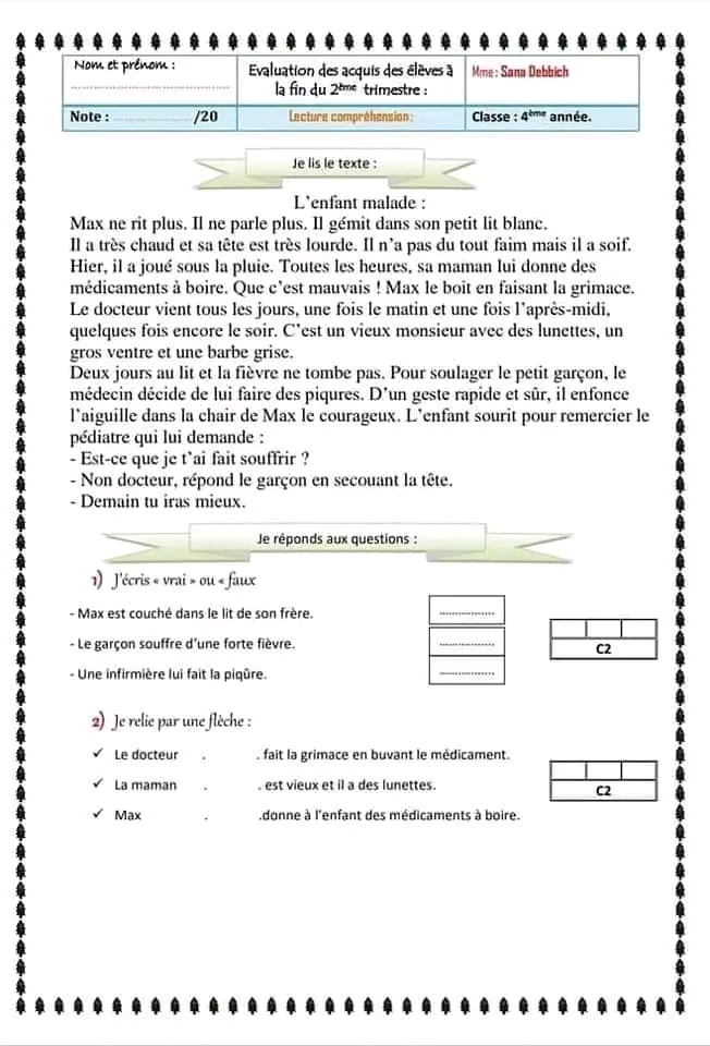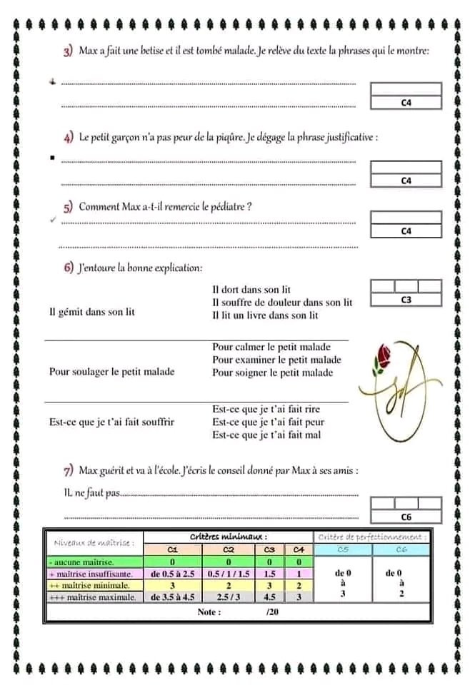 ✨ تقييم فرنسية تلا ميذ السنة الرابعة ثلاثي ثاني ✨📢