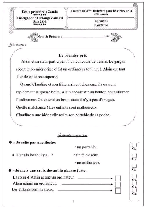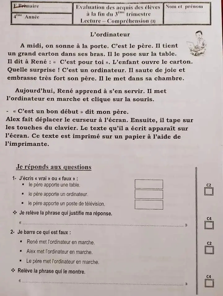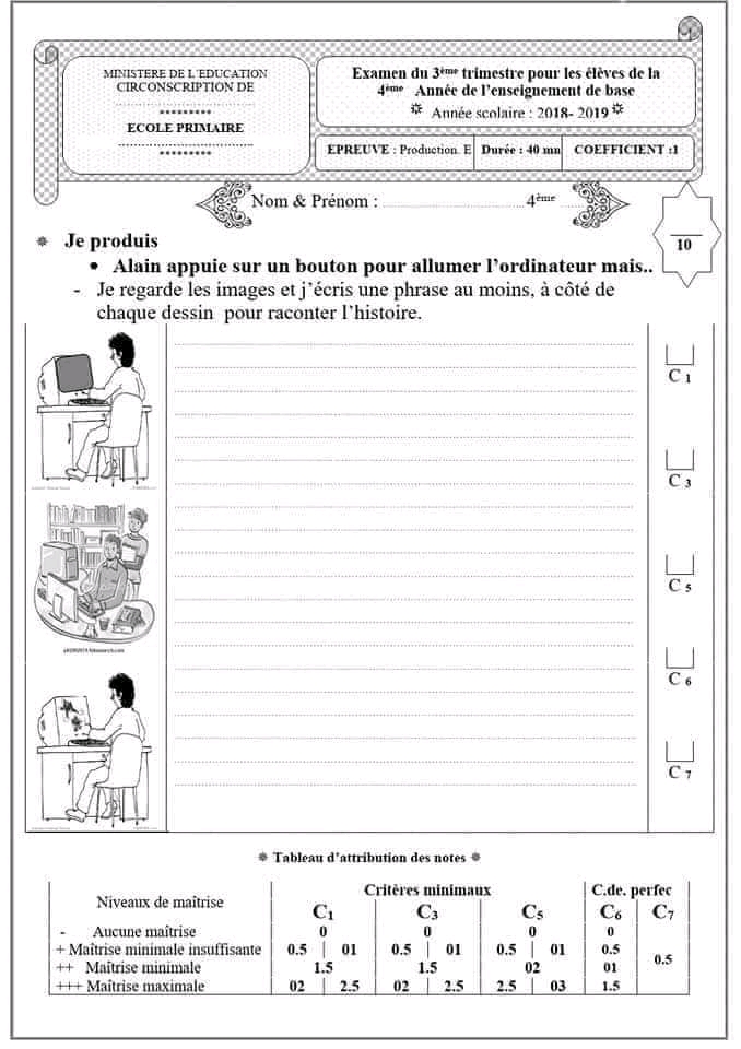 Evaluation de l'écrit au terme du 3ème trimestre ✨🚀