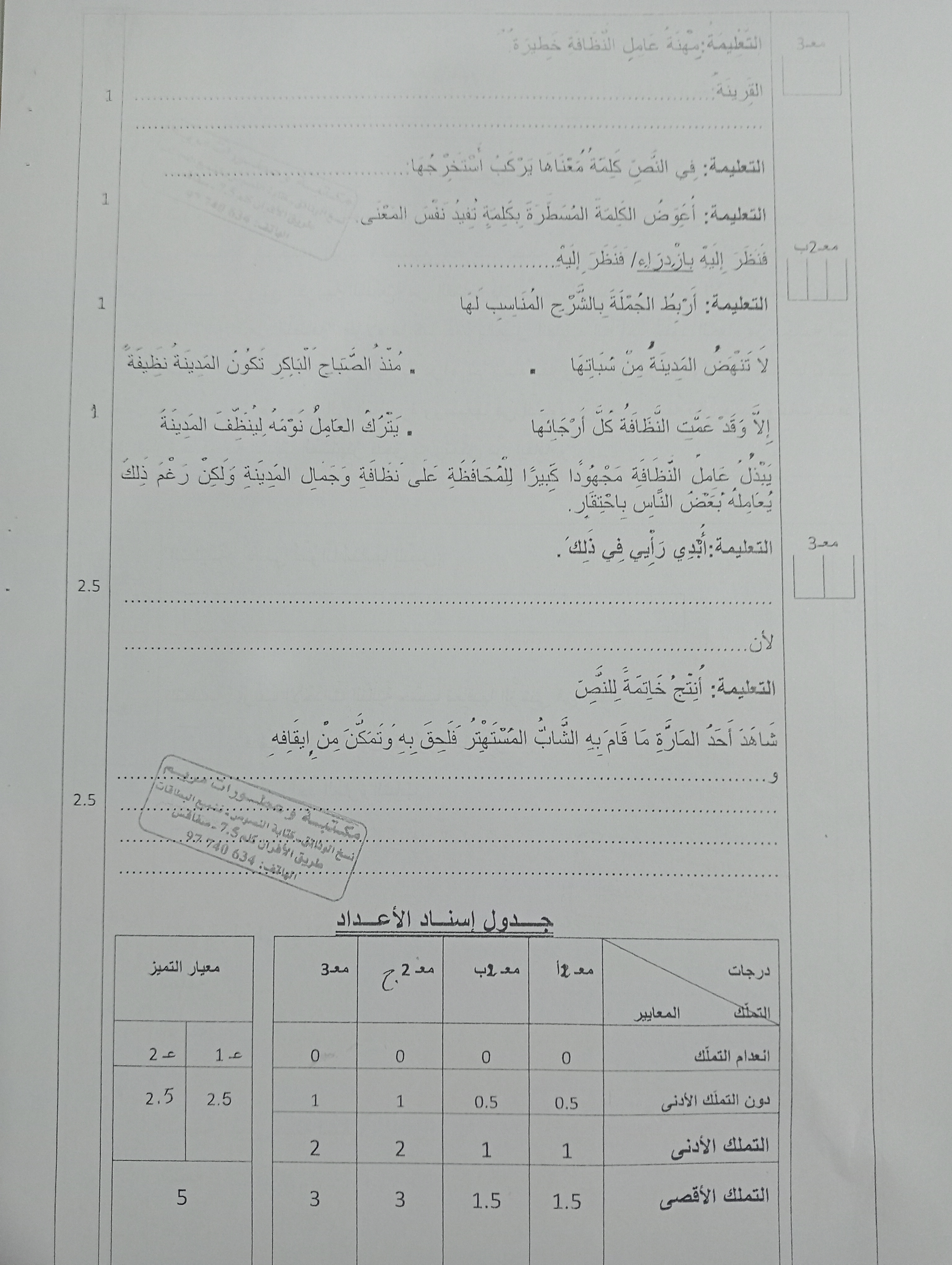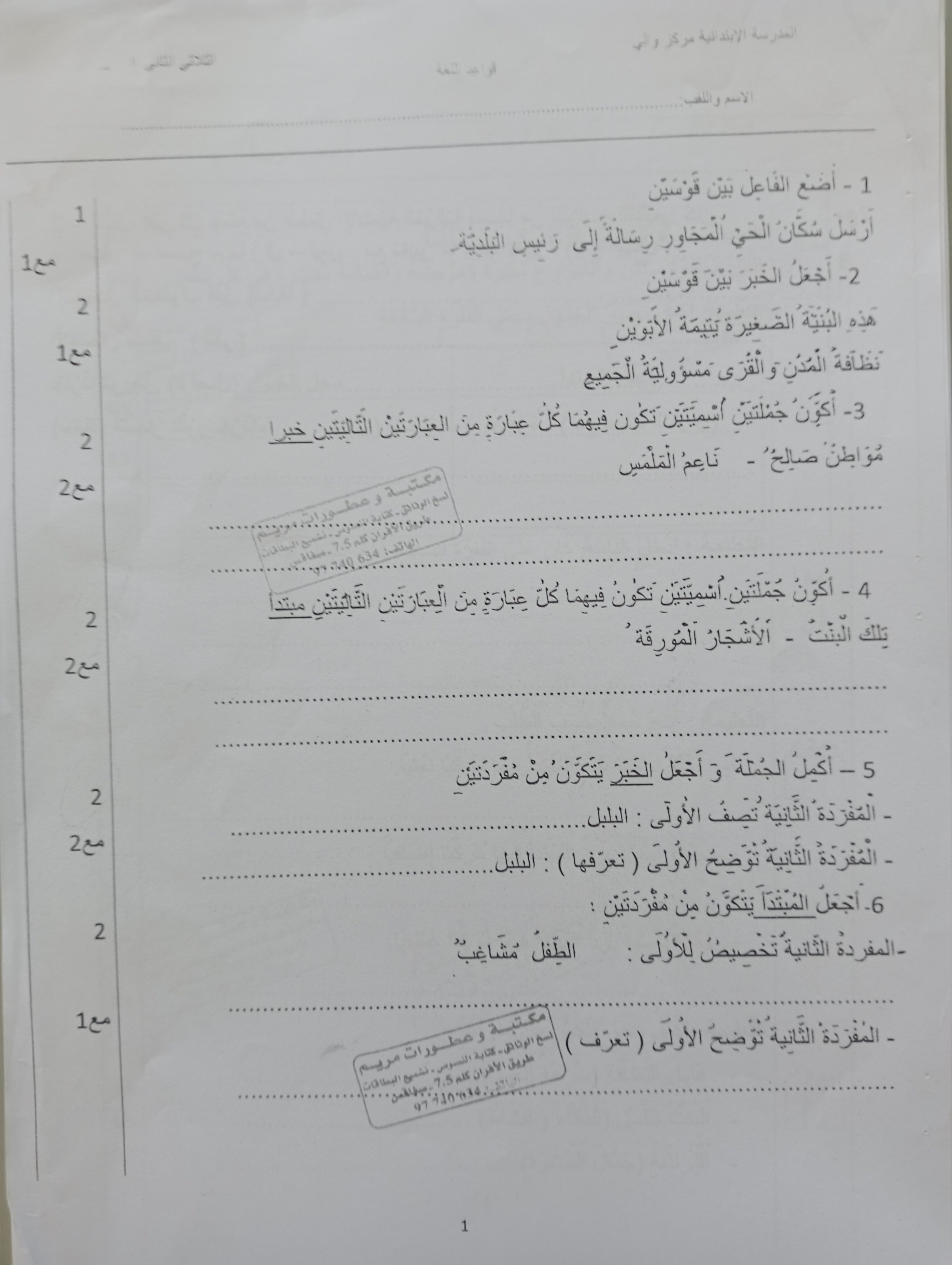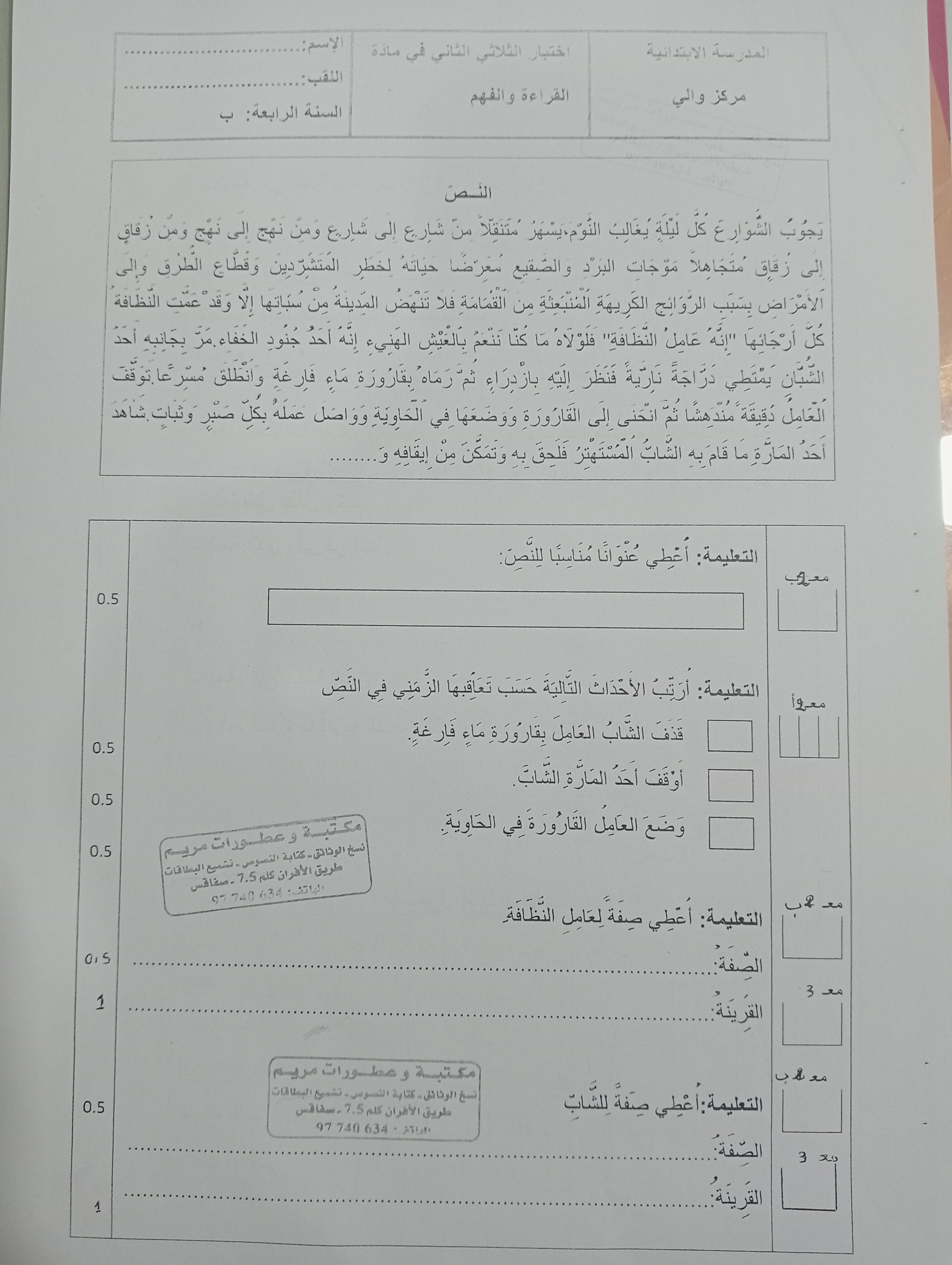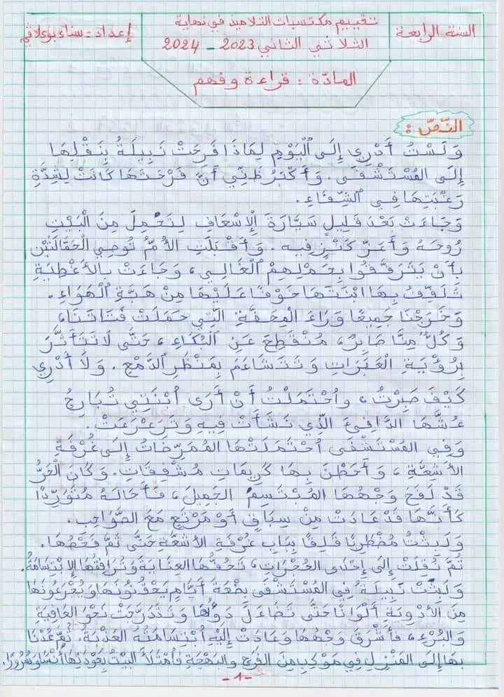 امتحانات قواعد لغة الثلاثي الأول سنة رابعة