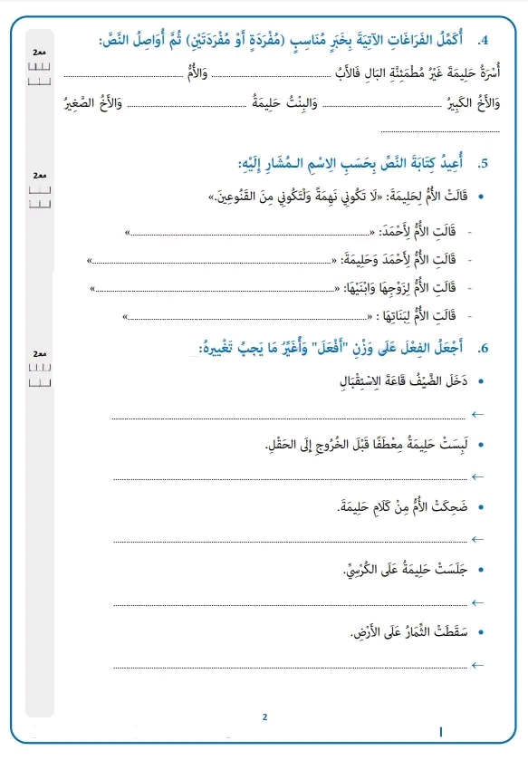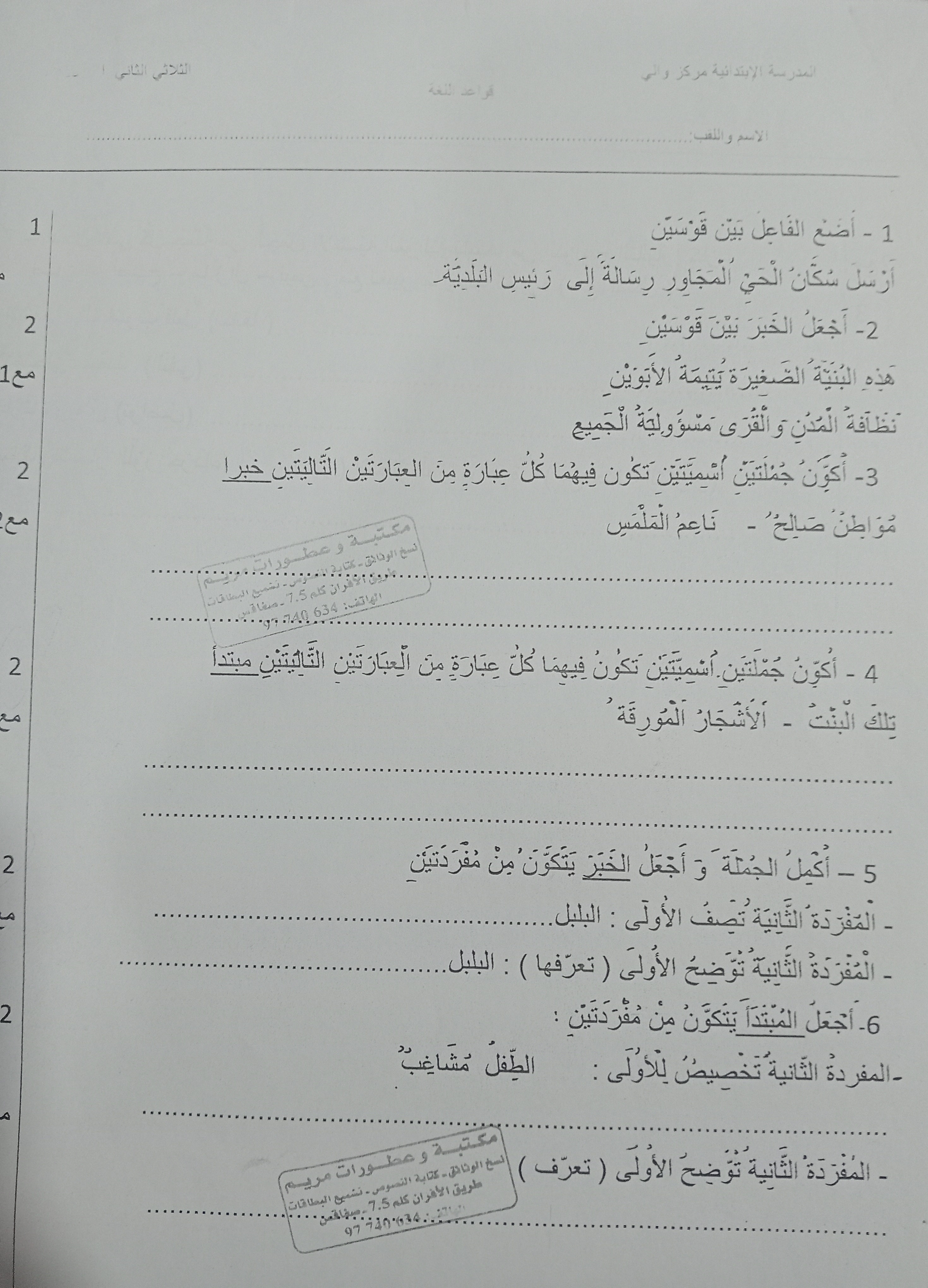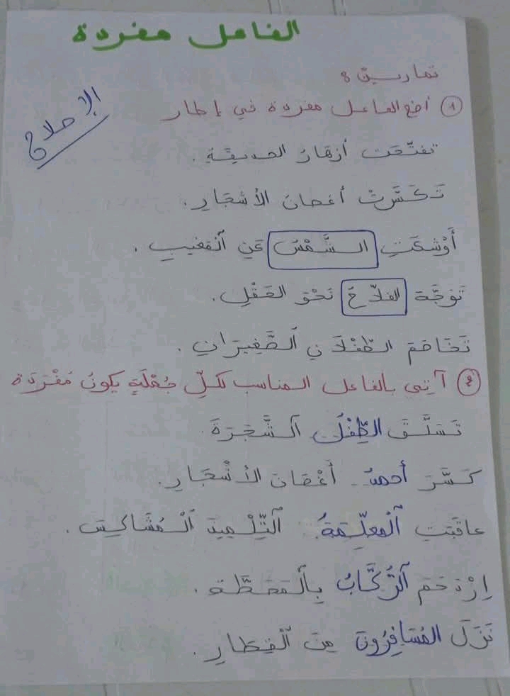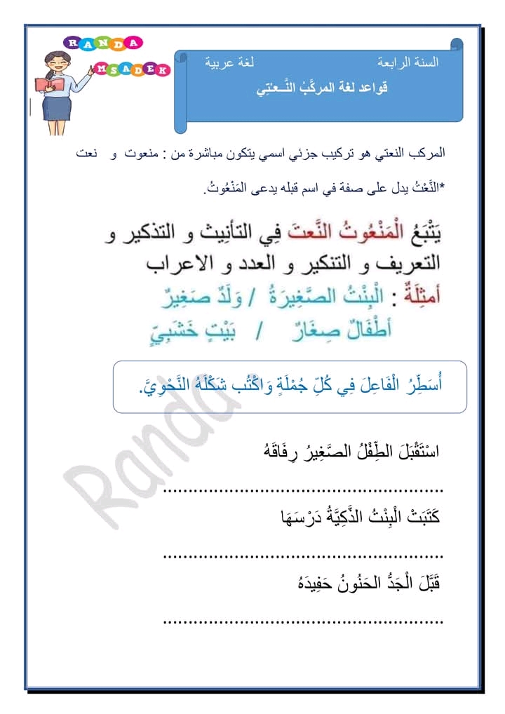 اختبار لغة سنة رابعة ثلاثي ثاني مع الاصلاح