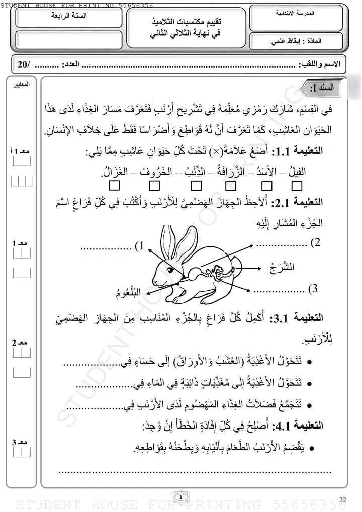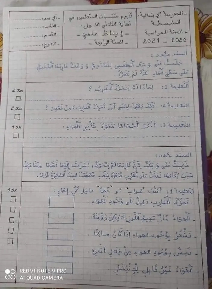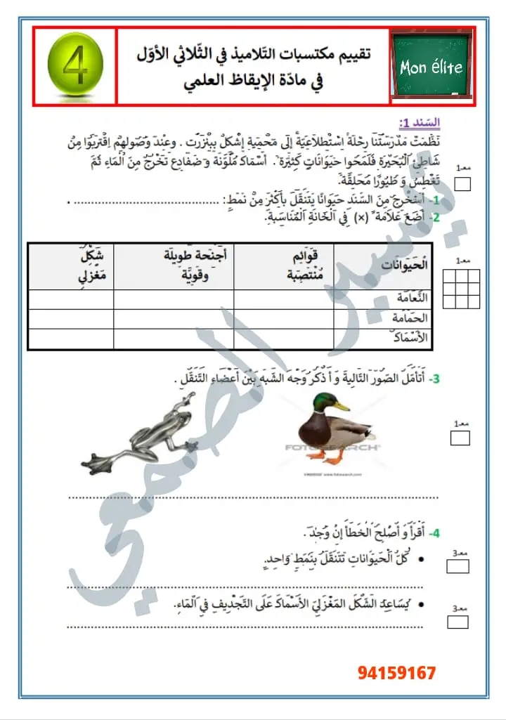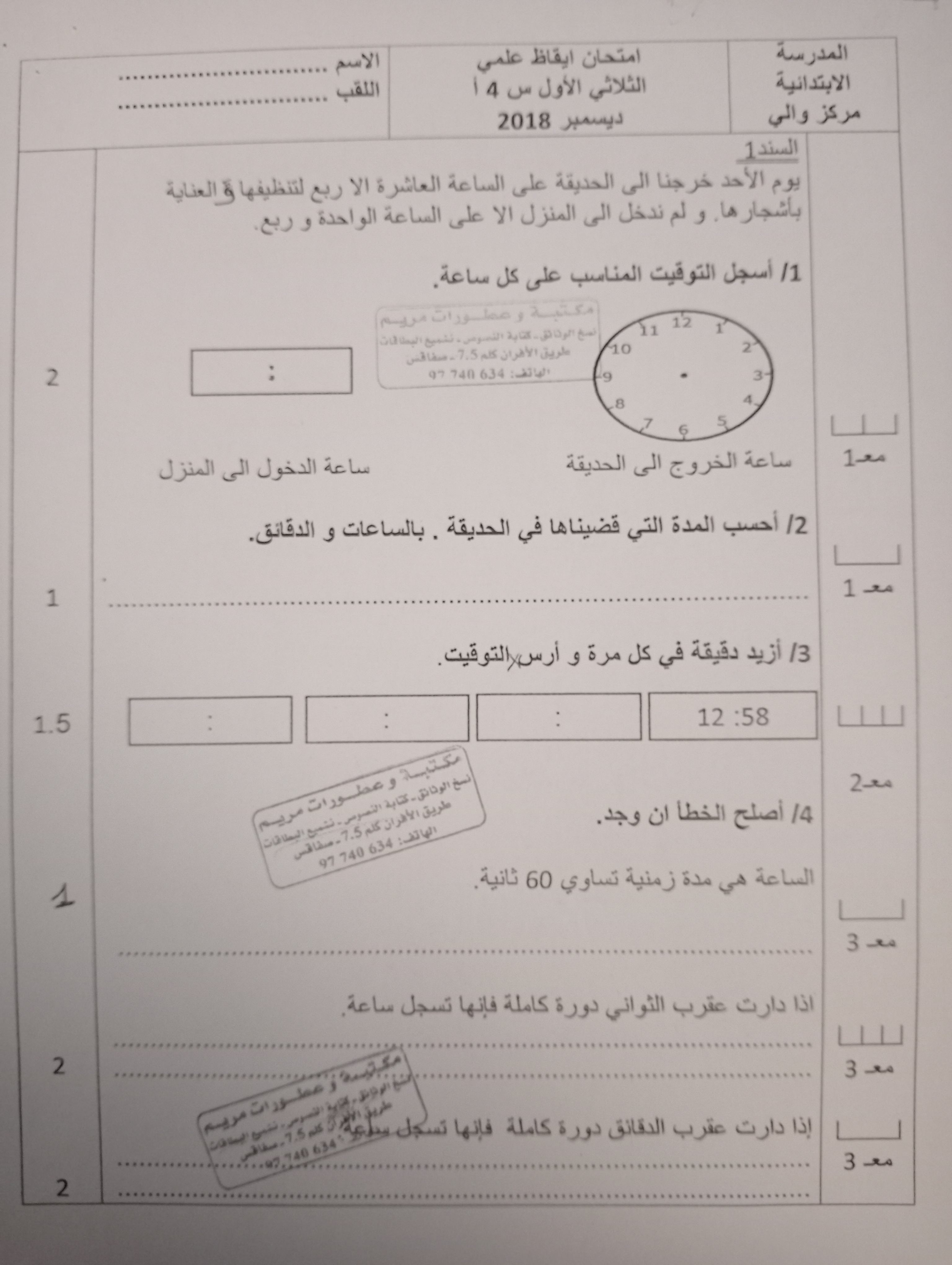 امتحانات ايقاظ علمي الثلاثي الأول سنة رابعة