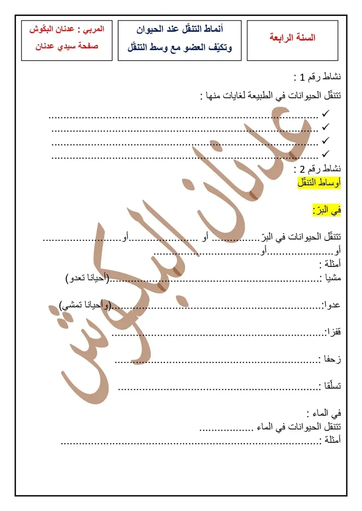 مراجعة محور التنقل لدى الحيوانات + الإصلاح