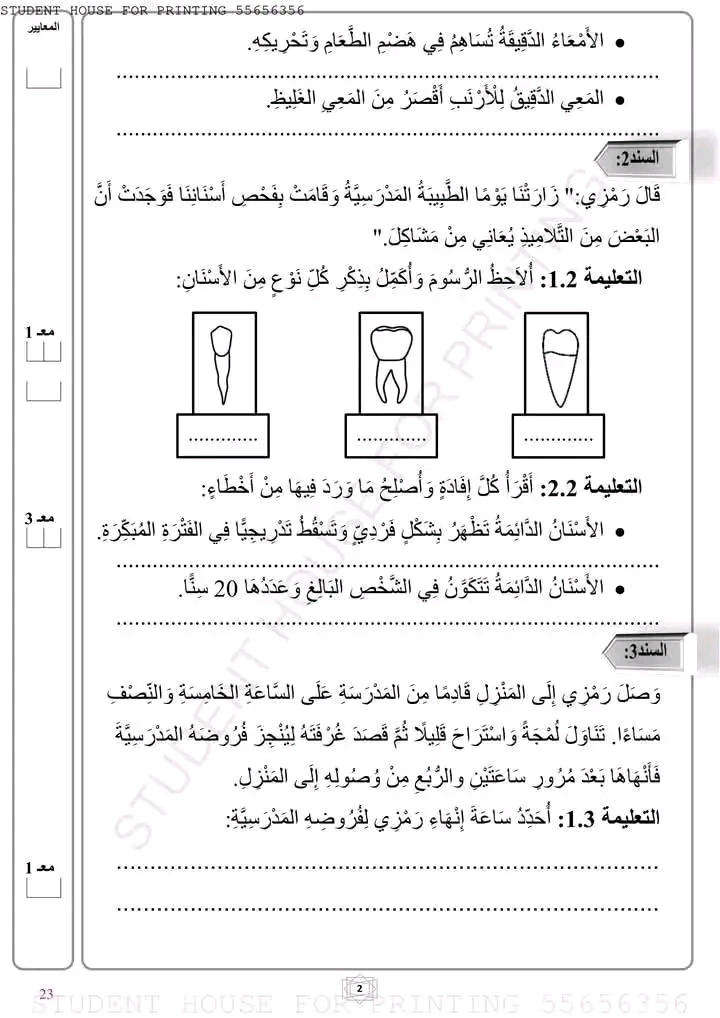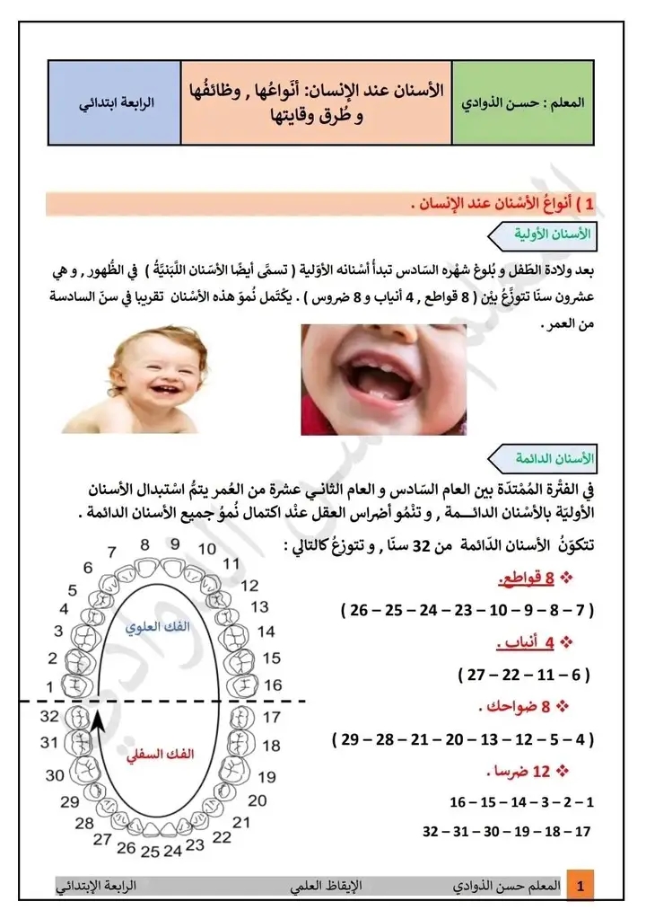 درس الأسنان مع إصلاح التمارين التطبيقية .