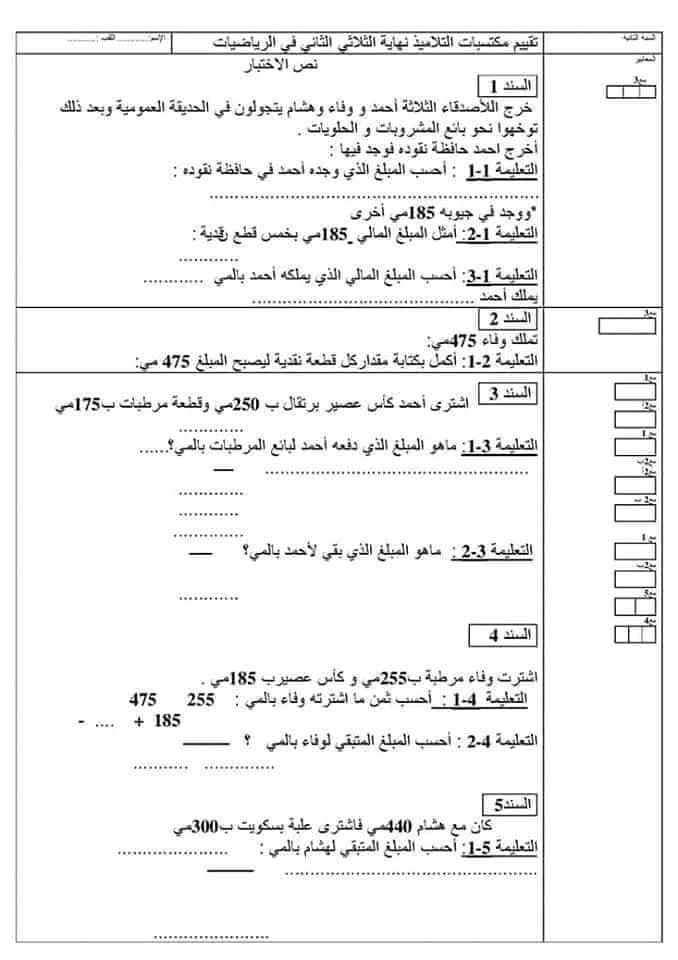 امتحان قراءة وفهم سنة ثالثة