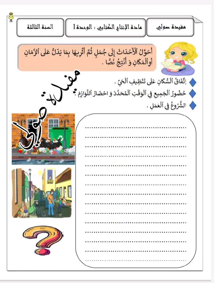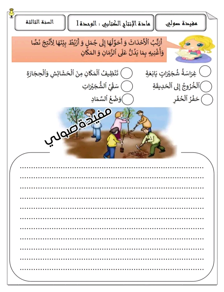 إدماج إنتاج كتابي مع السنة الثالثة