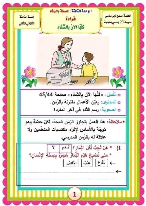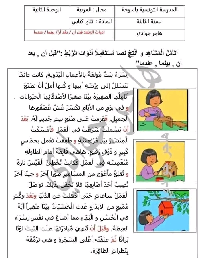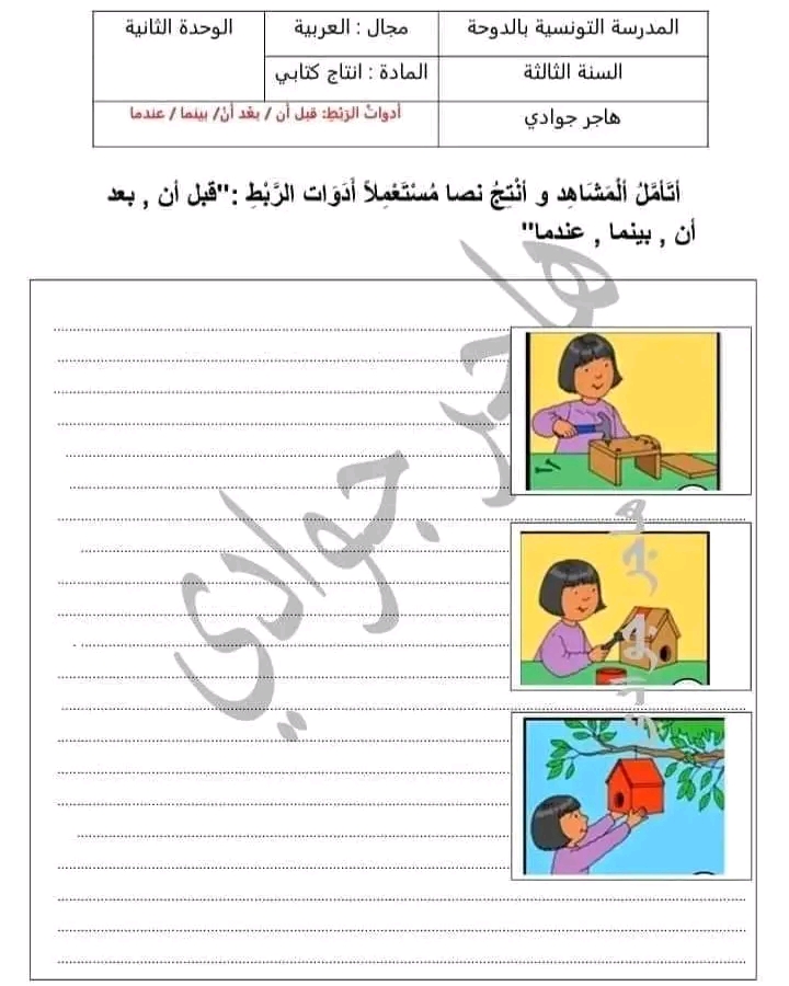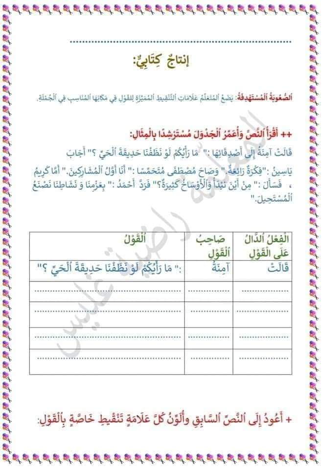 مراجعة انتاج كتابي سنة ثالثة ثلاثي ثالث
