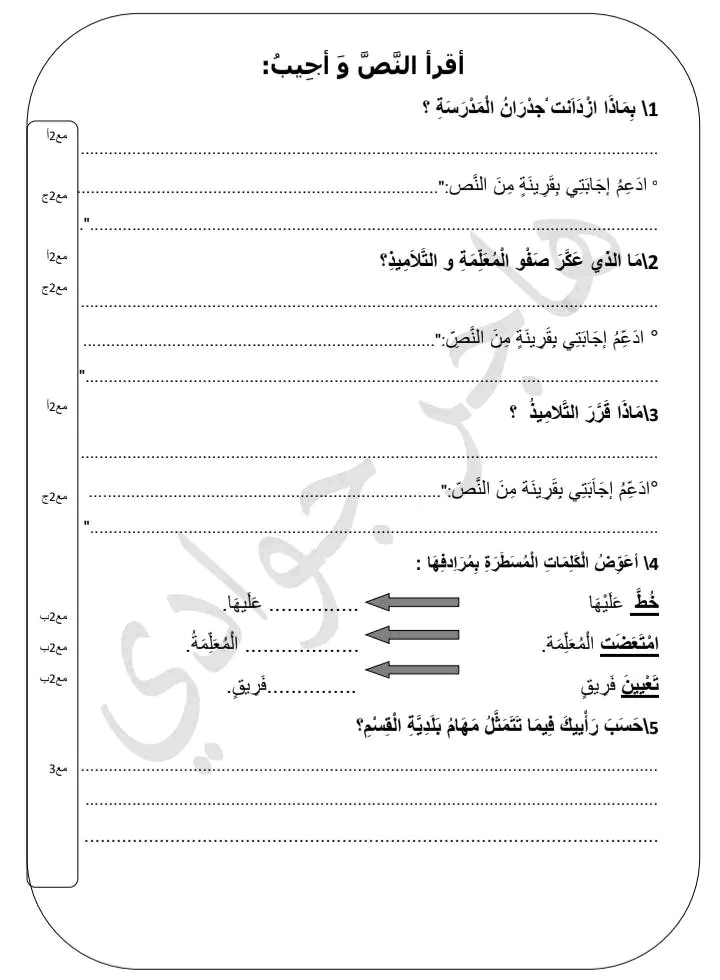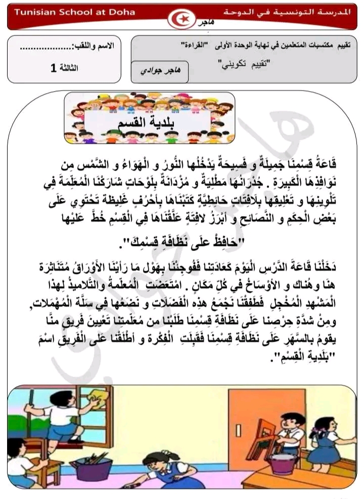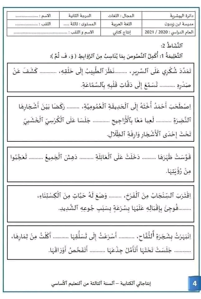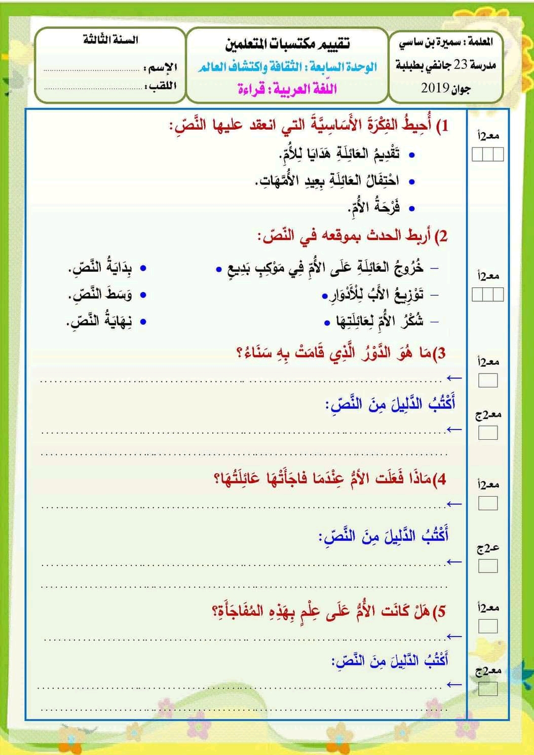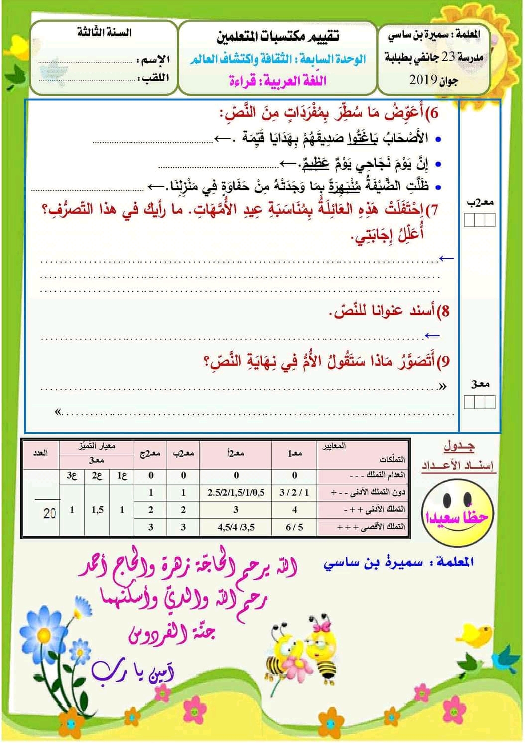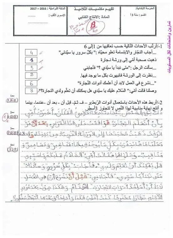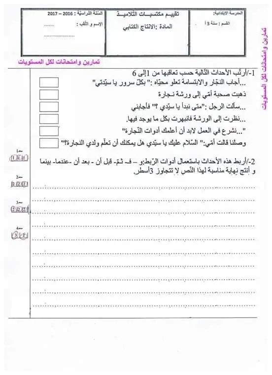 تقييم في الإنتاج الكتابي ثلاثي أول سنة ثالثة