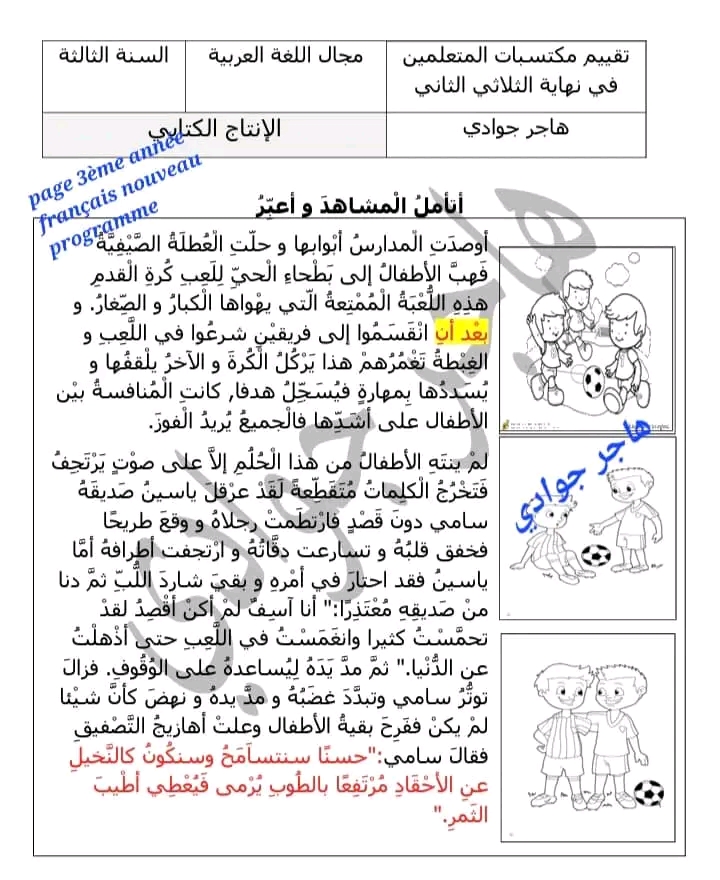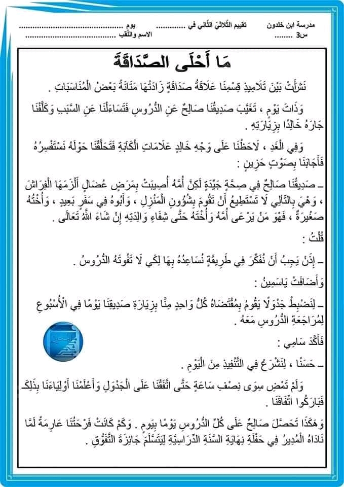 اختبار انتاج كتابي ثلاثي ثاني