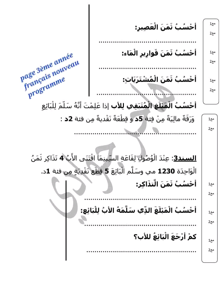 رياضيات سنة ثانية /ثالثة