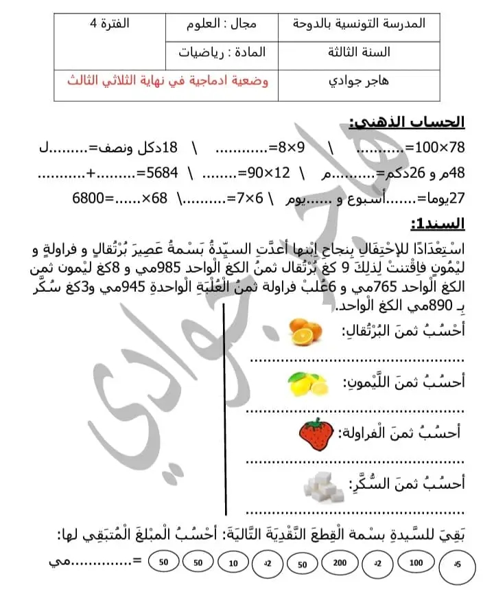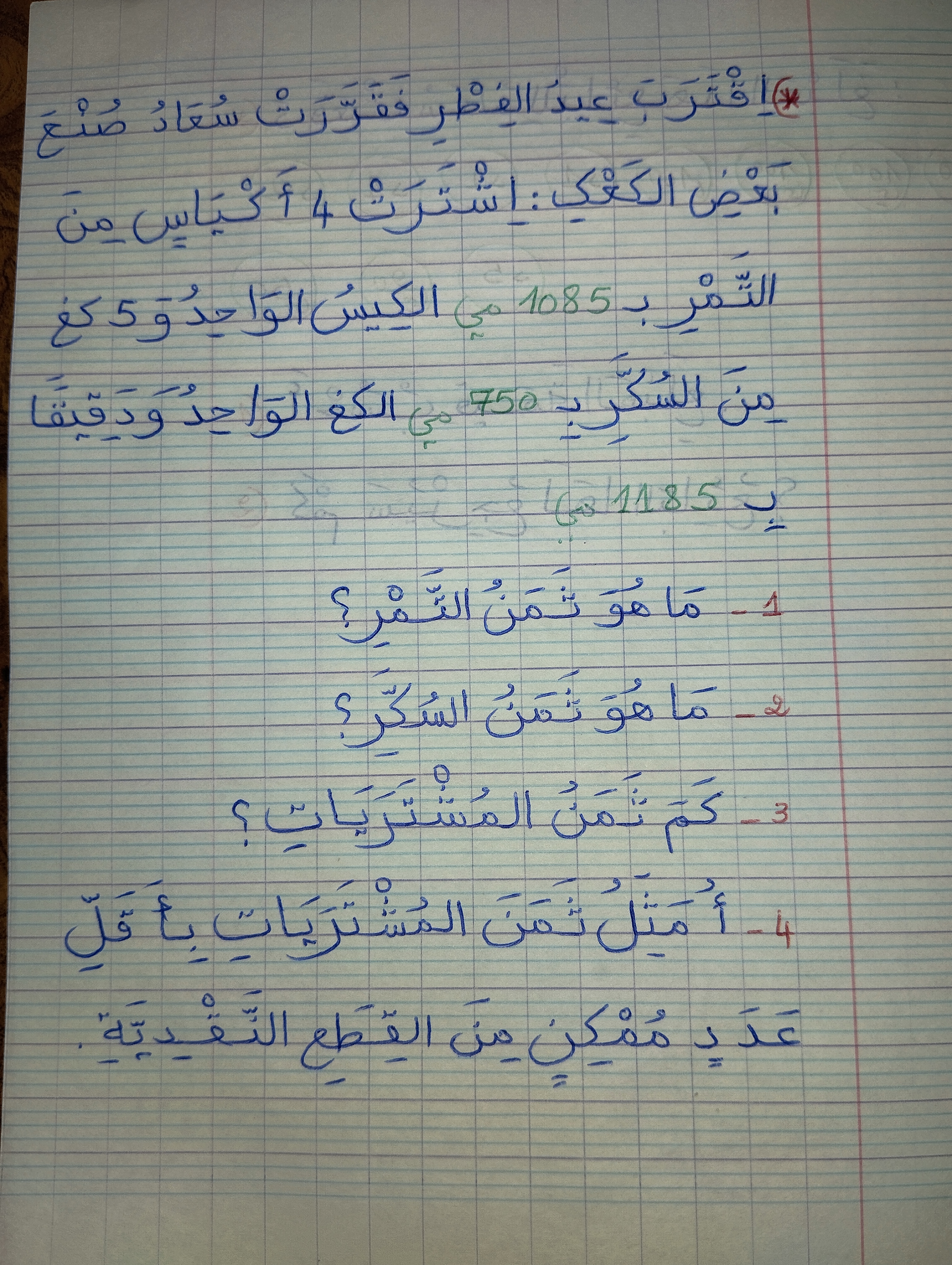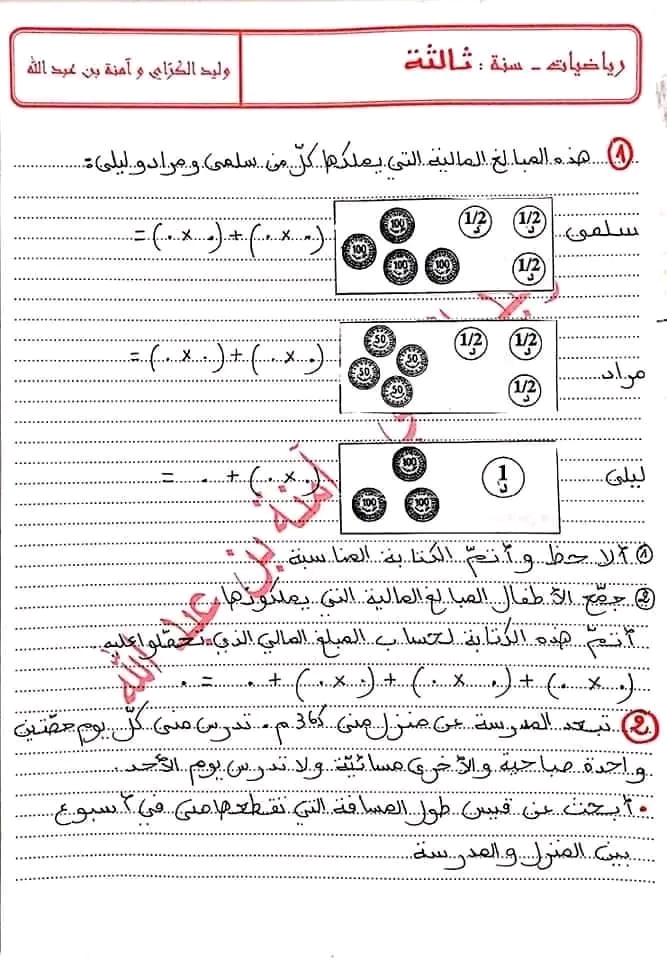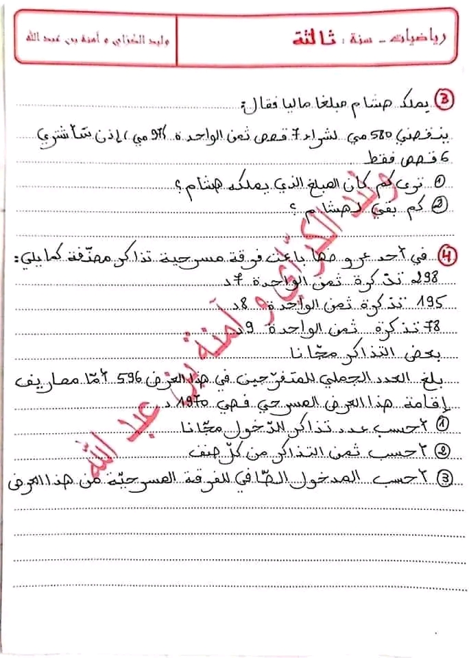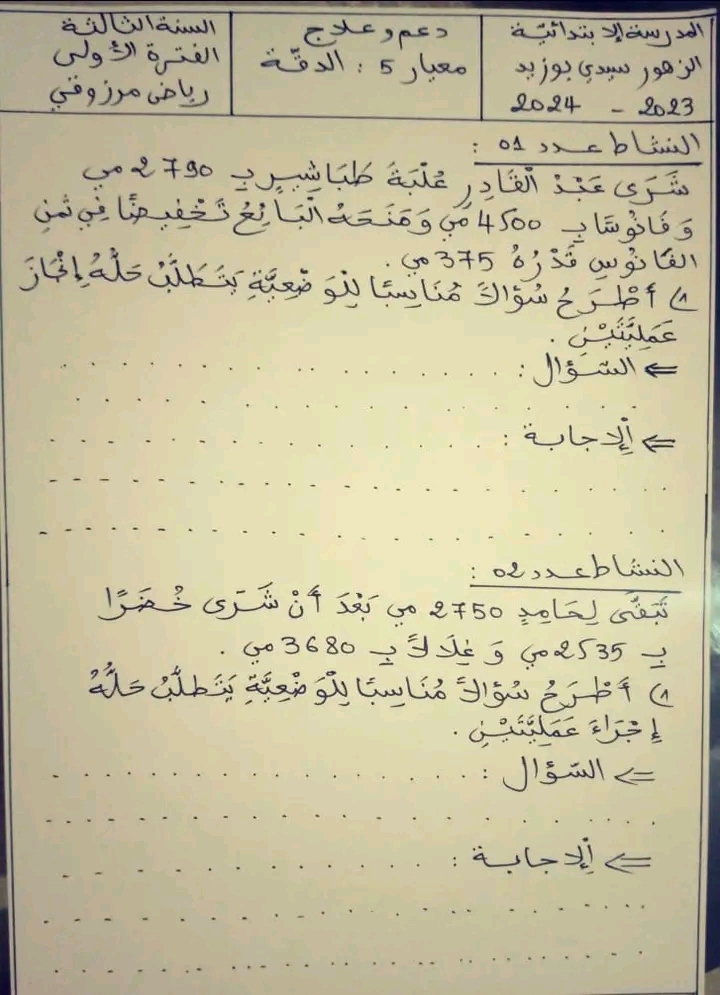 مسألة لتلاميذ السنة الرابعة ❤️❤️❤️❤️