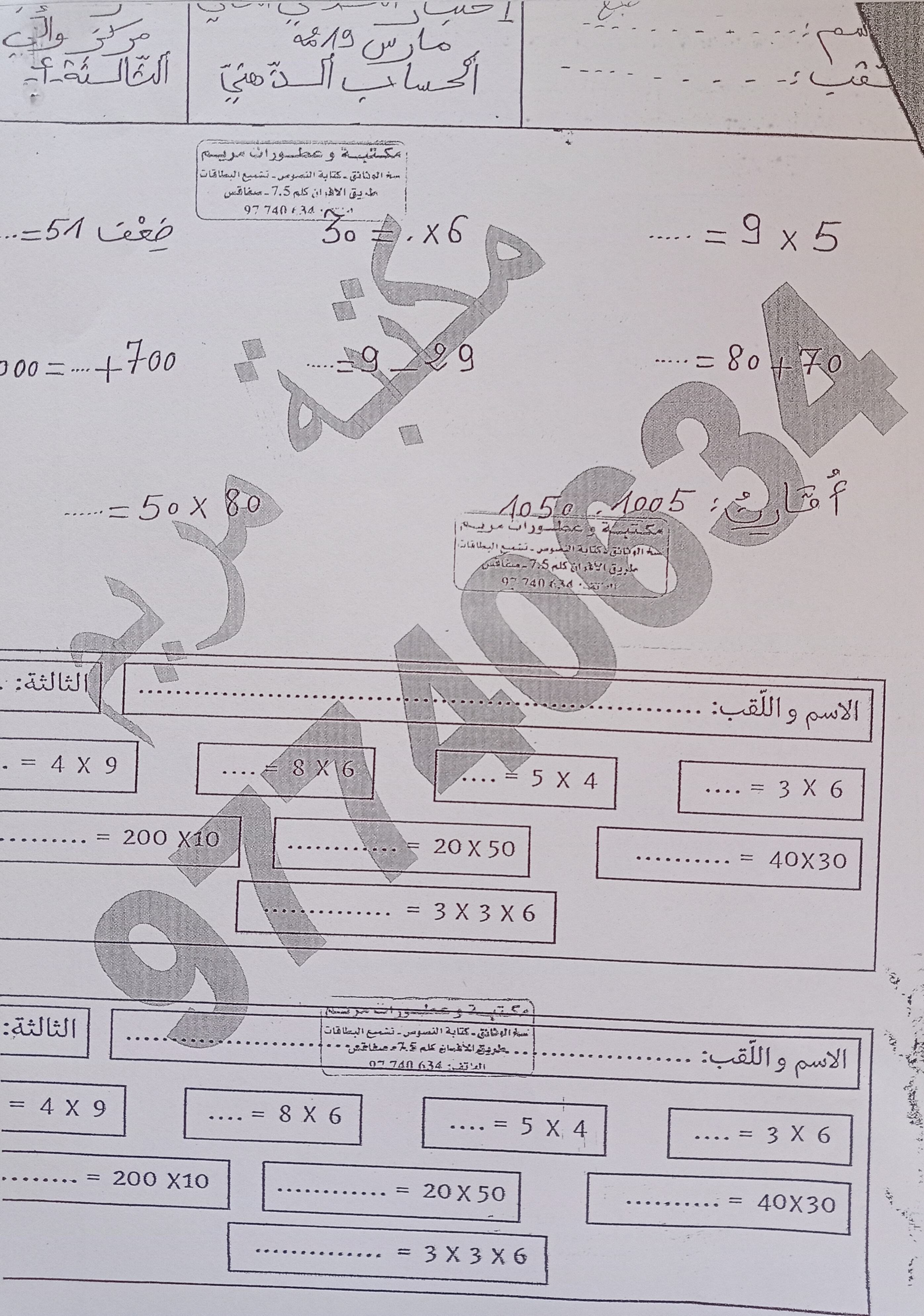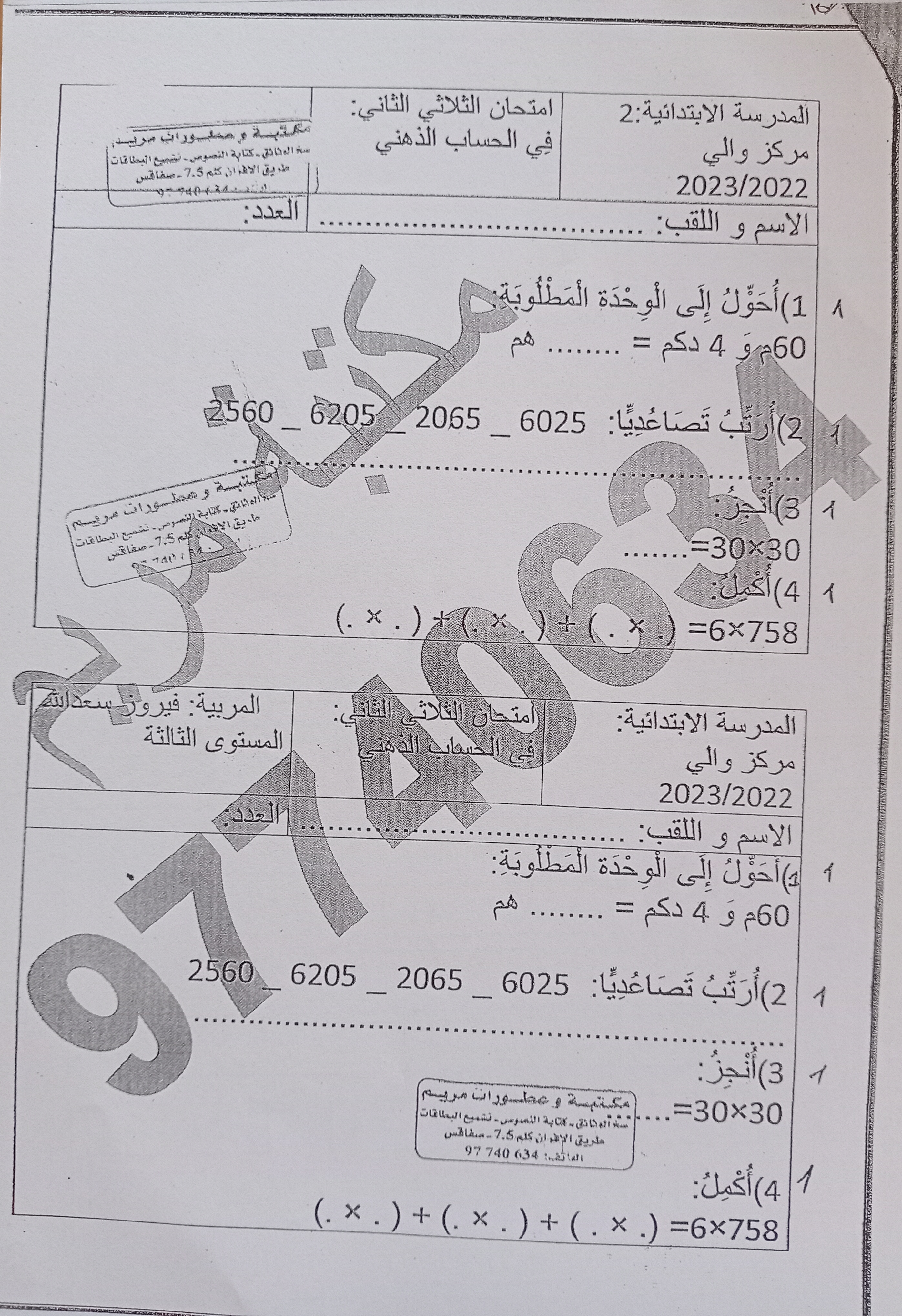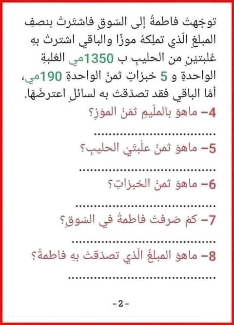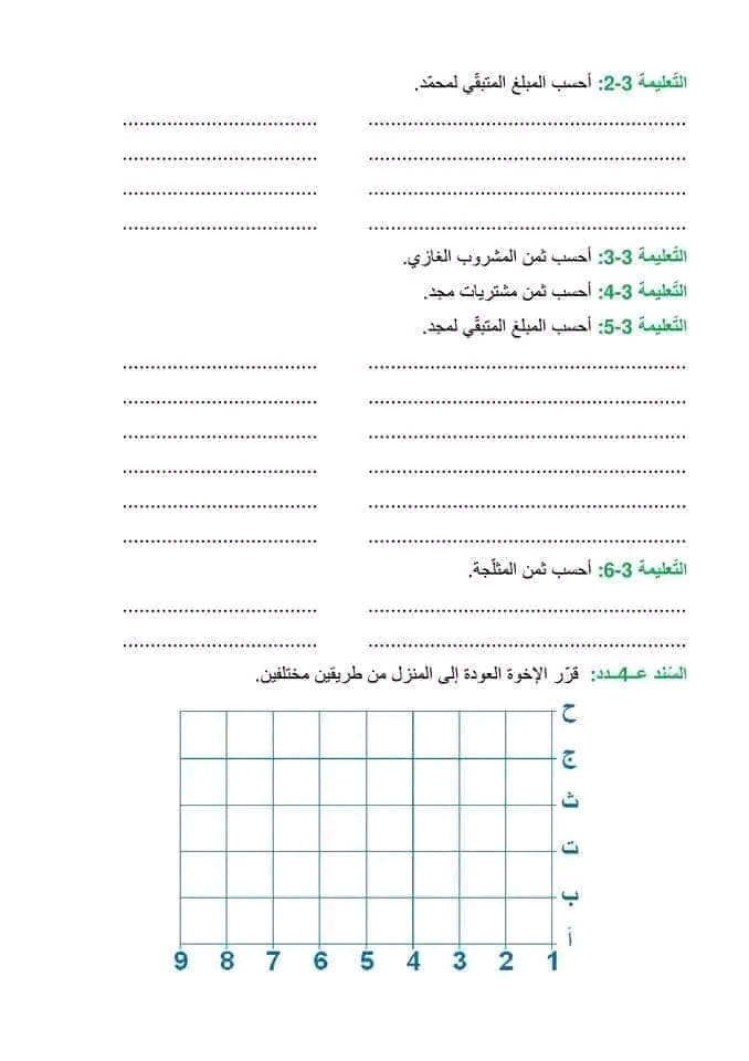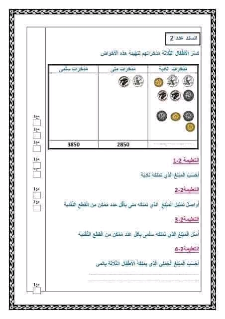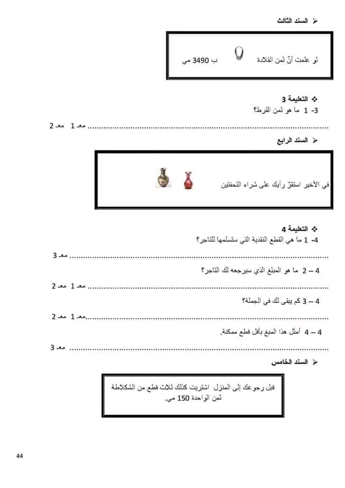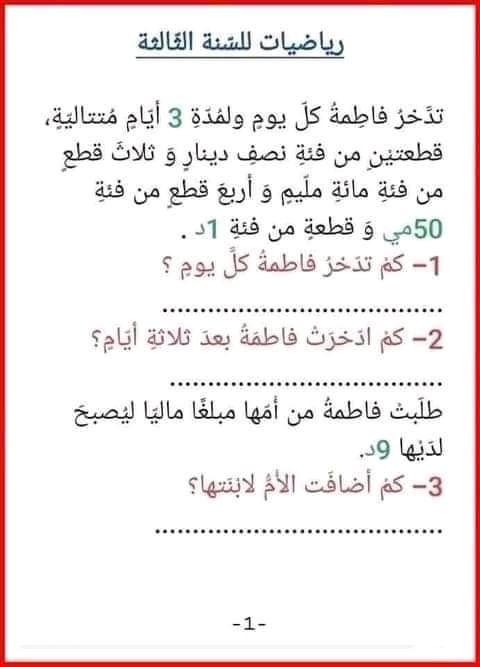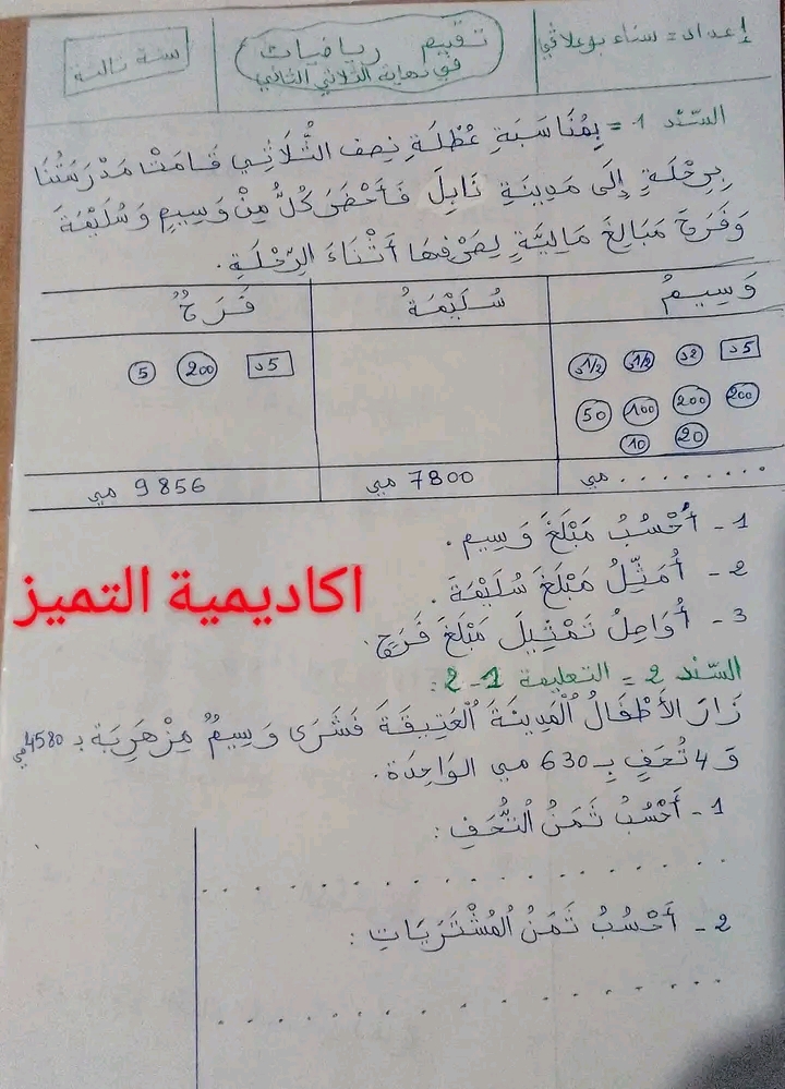 تقييم رياضيات سنة ثالثة ث 2