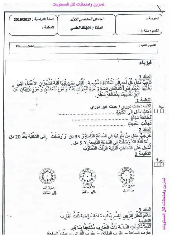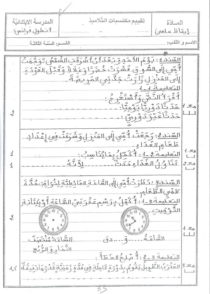 تقييمات يقاظ علمي بالاصلاح سنة ثالثة
