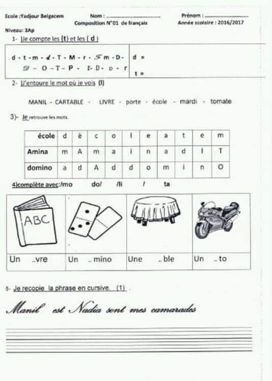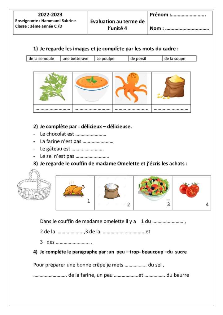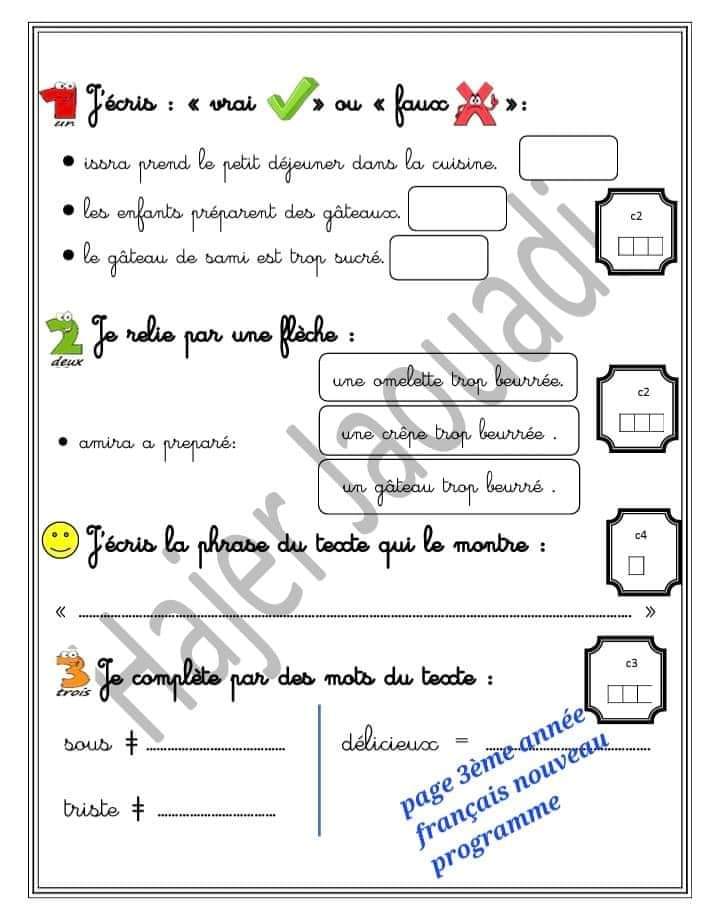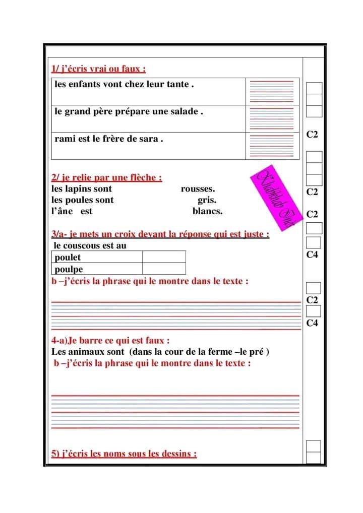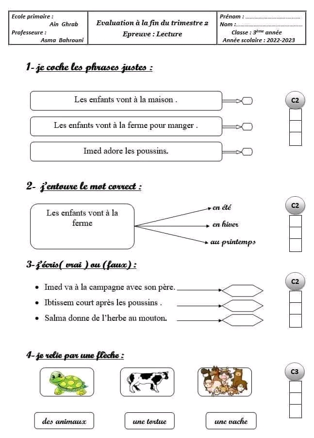 تقييم ثلاثي ثاني بالاصلاح فرنسية سنة ثالثة