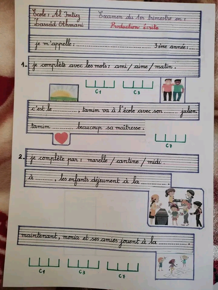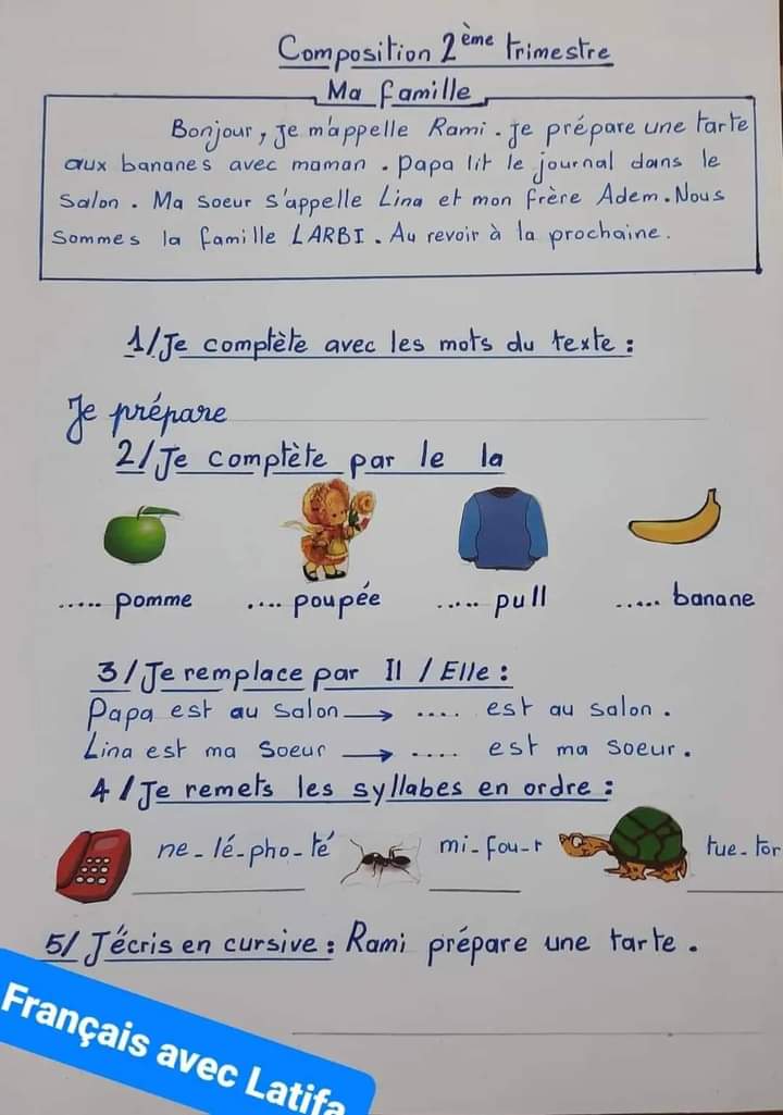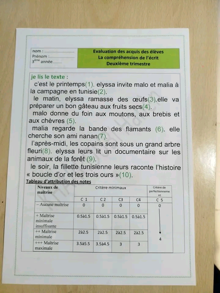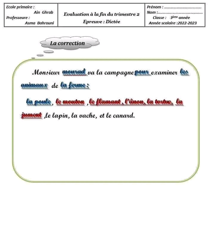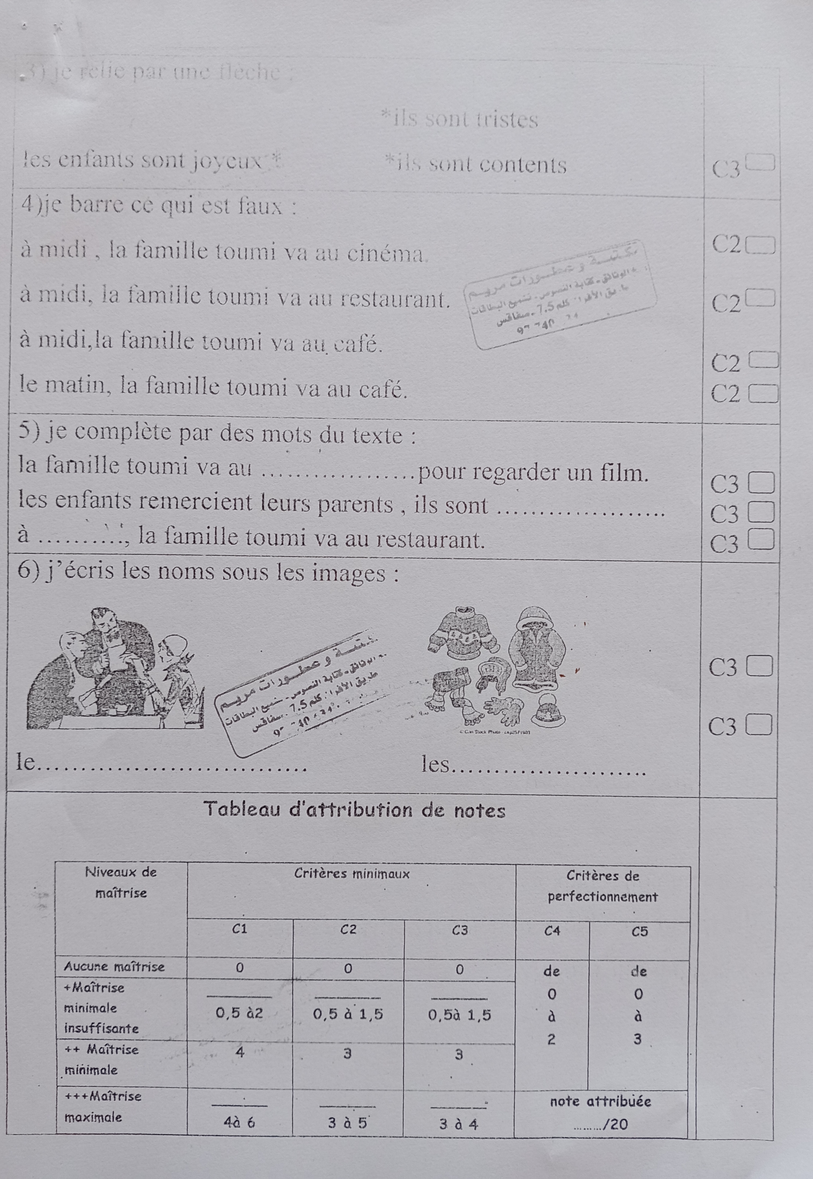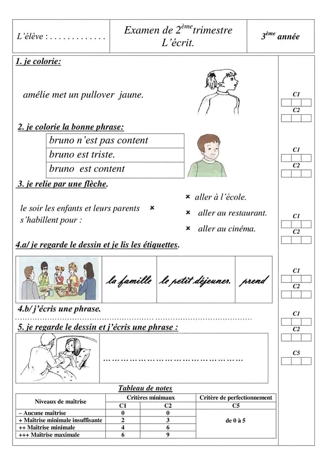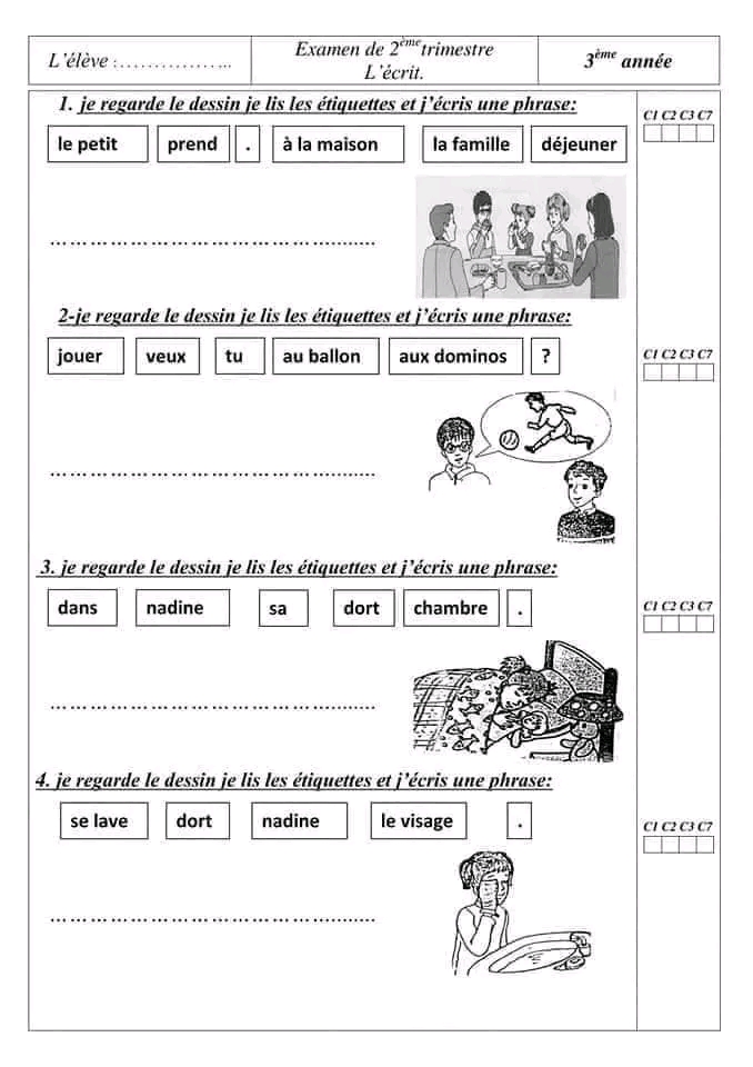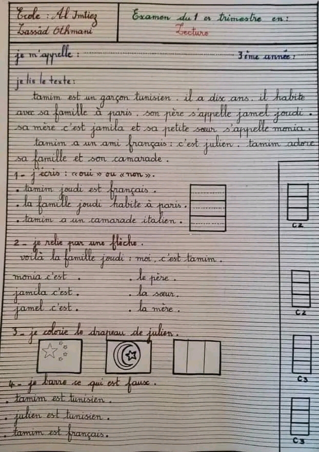 سنة ثالثة امتحان الثّلاثي الثاني فرنسية