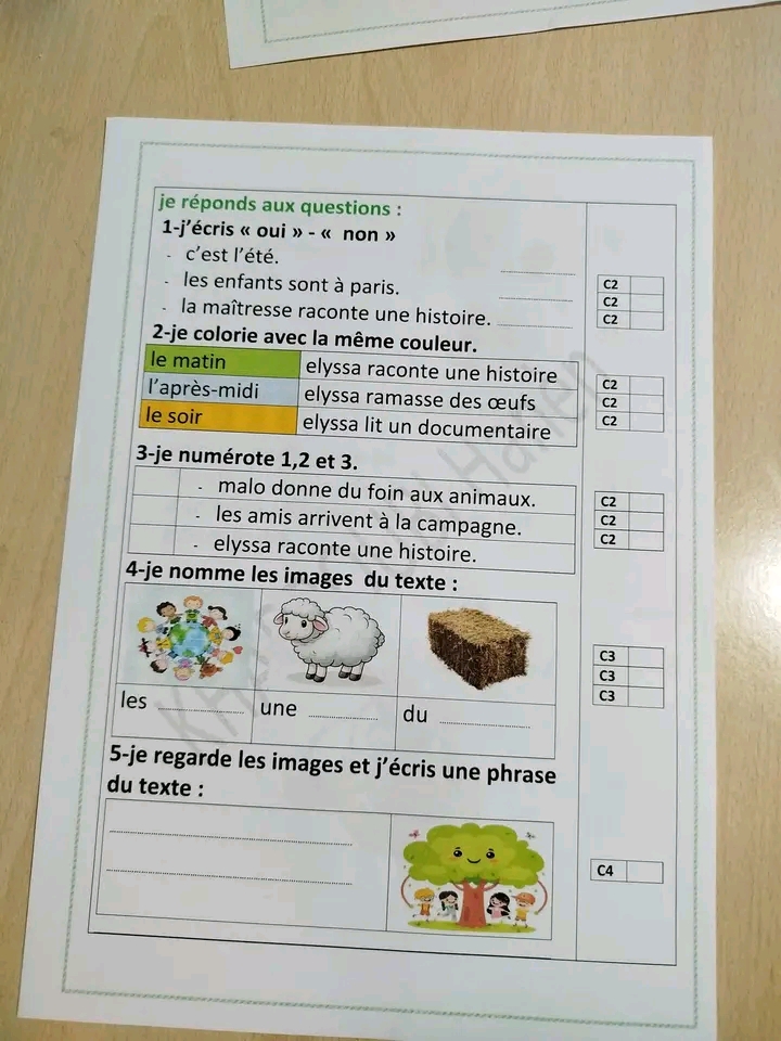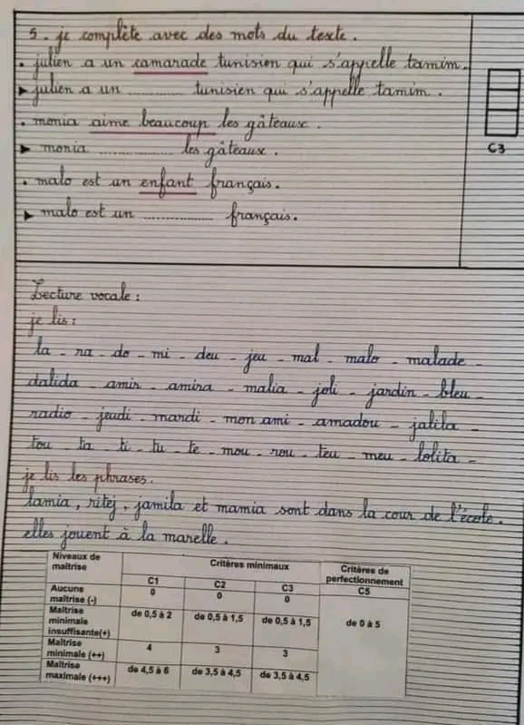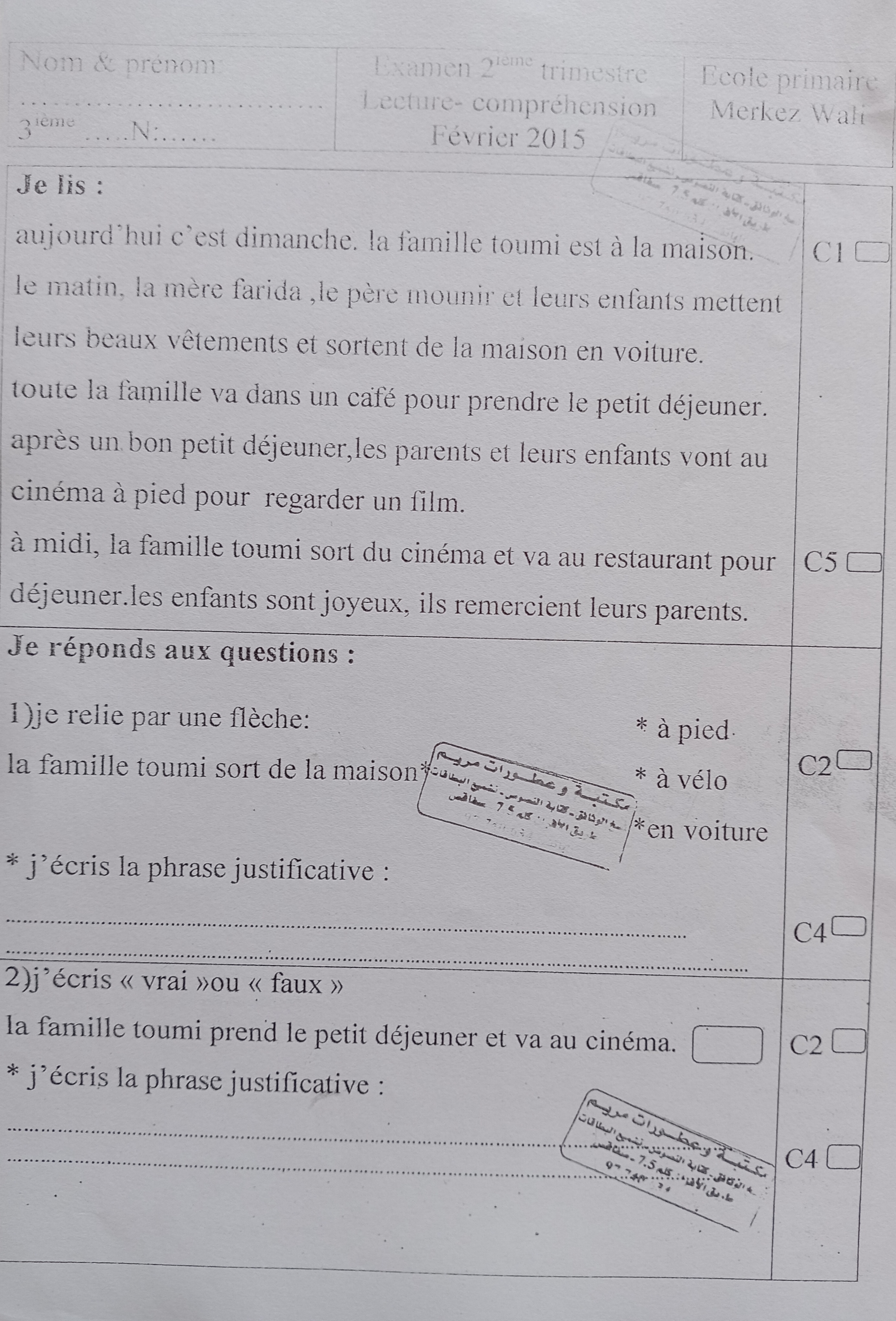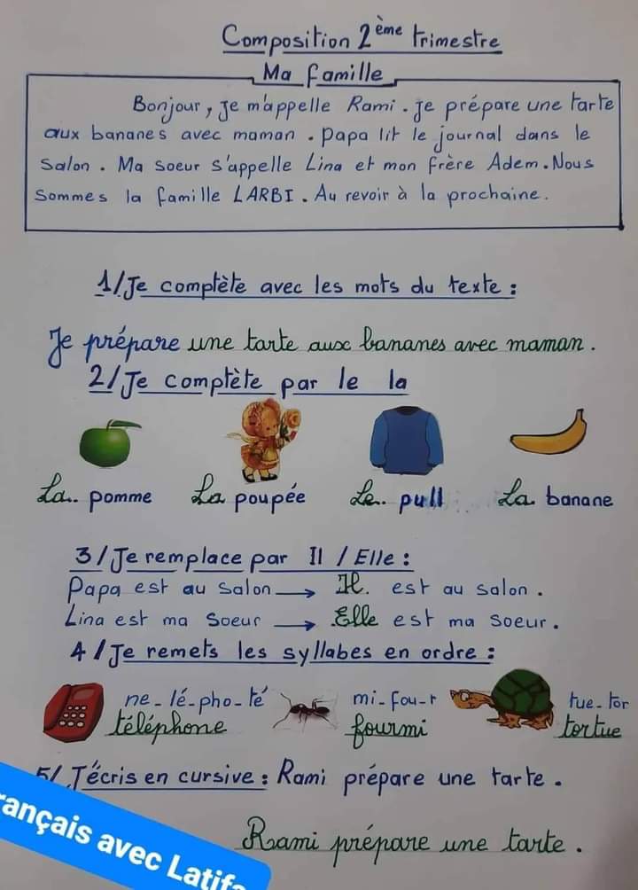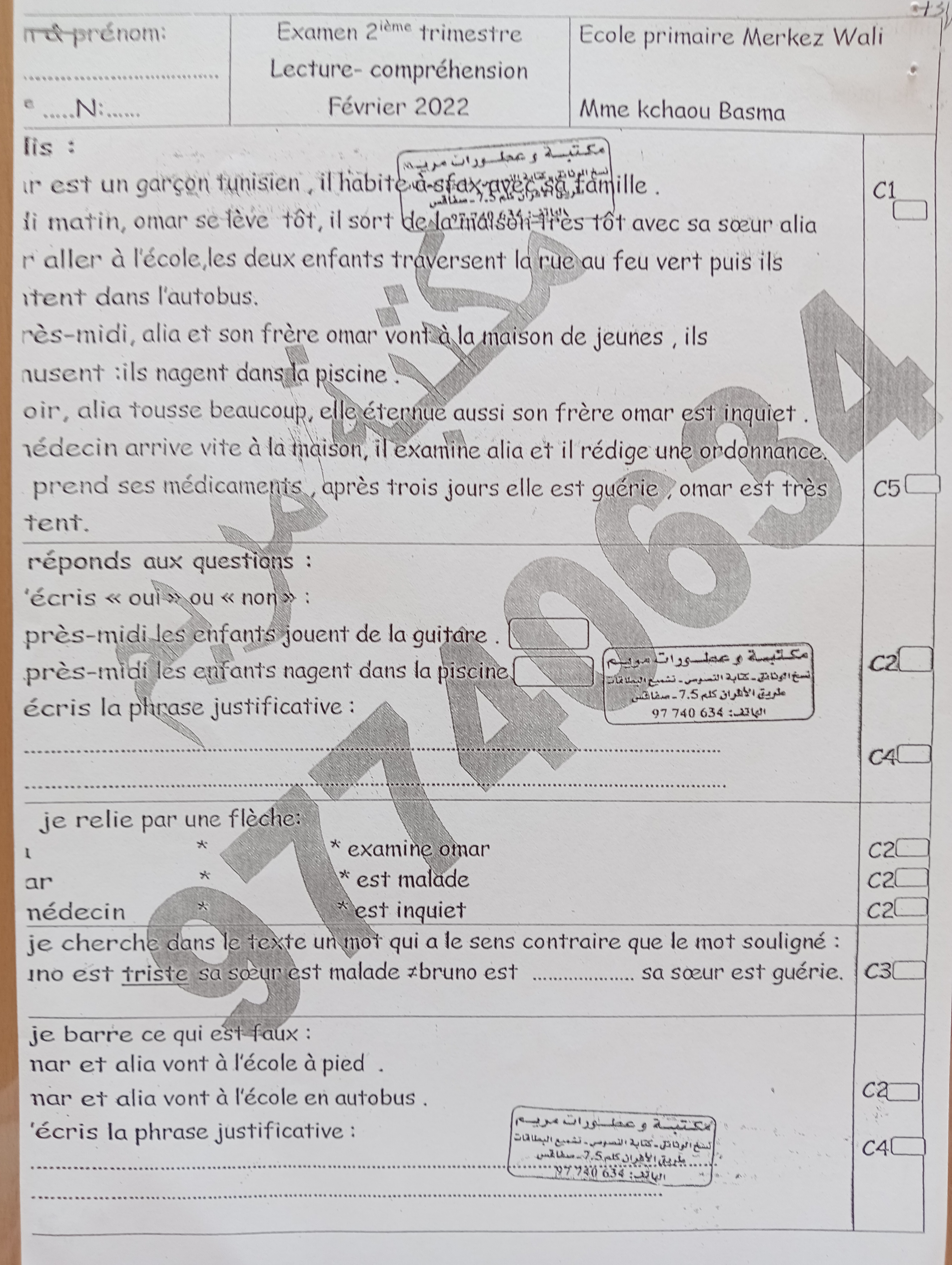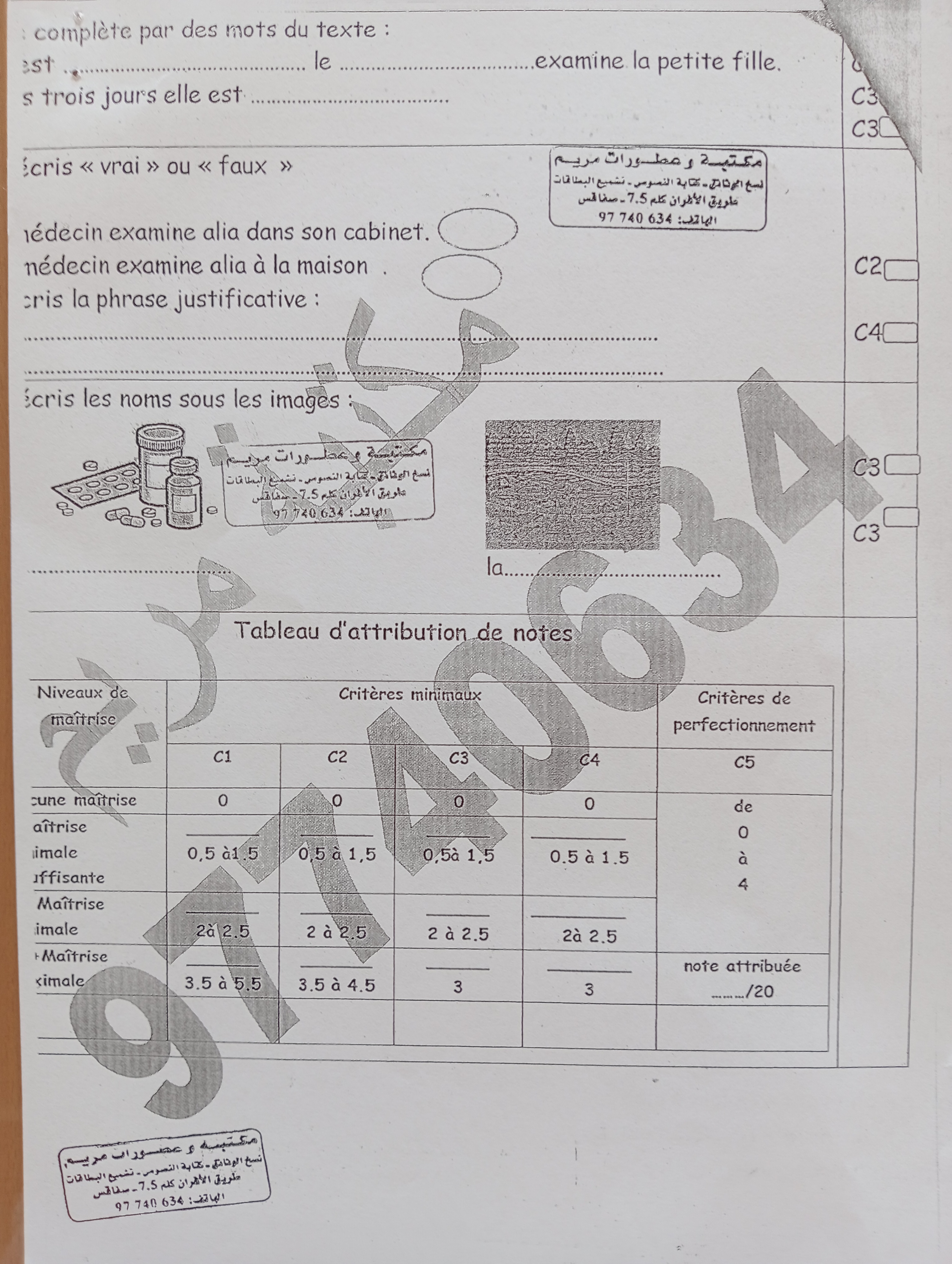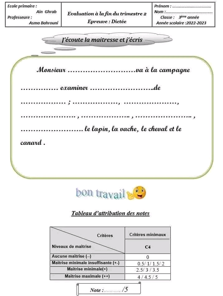 سنة ثالثة امتحان الثّلاثي الثاني فرنسية