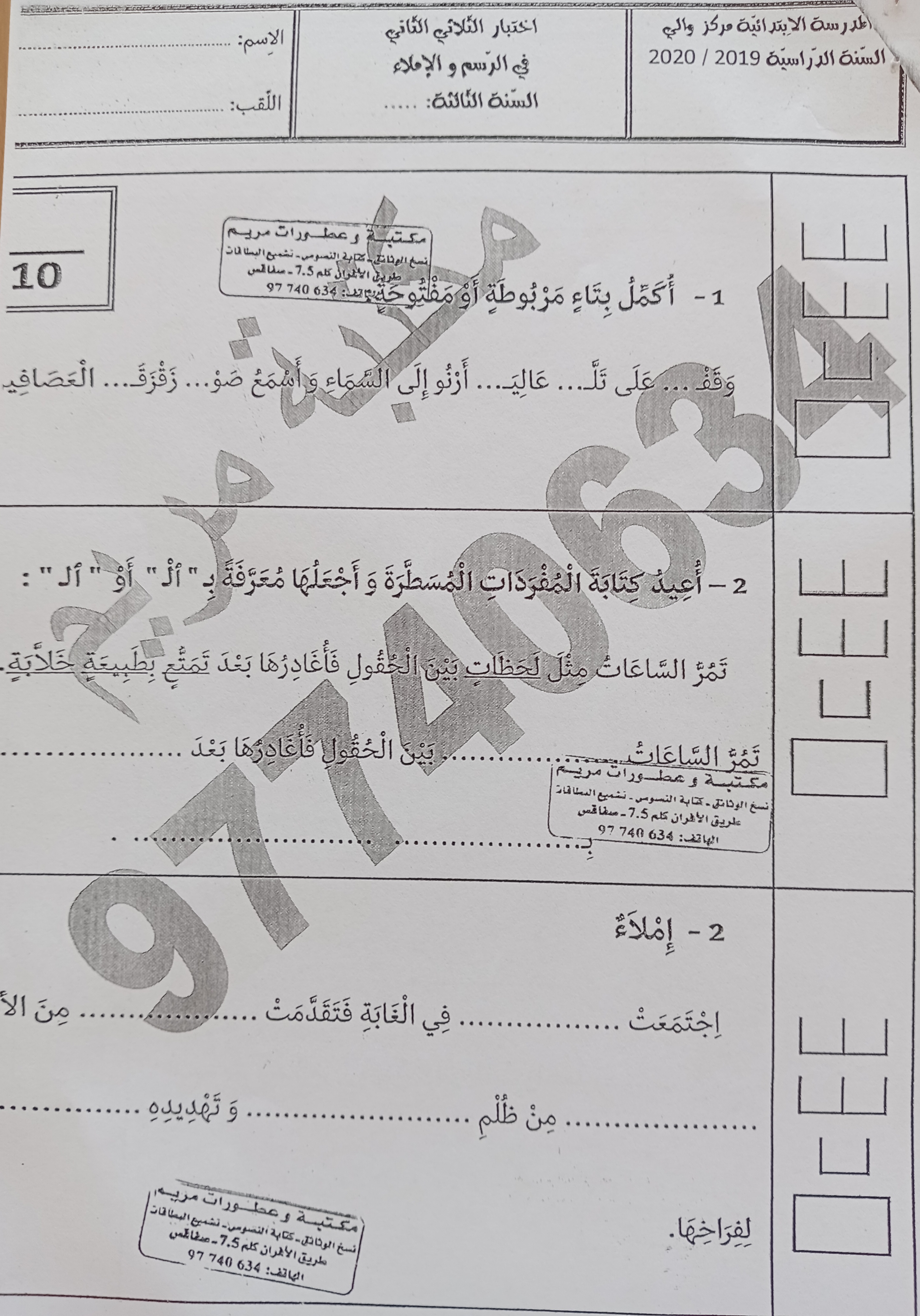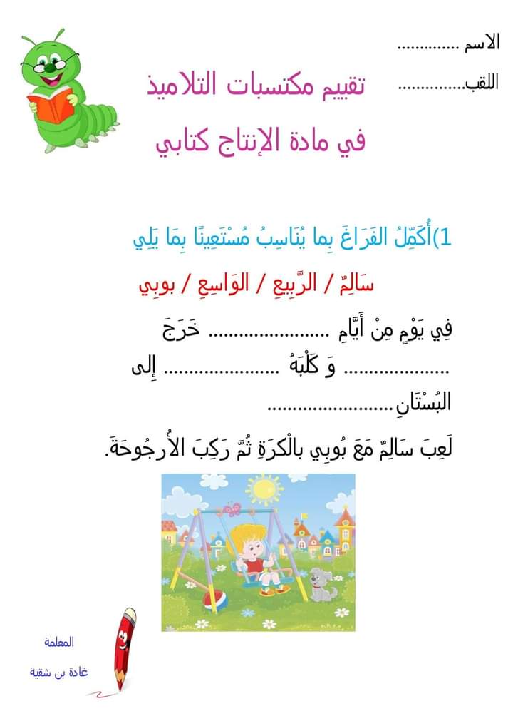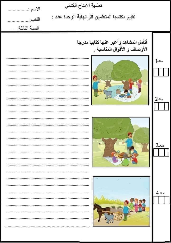 تقييم في الإنتاج الكتابي ثلاثي أول سنة ثالثة