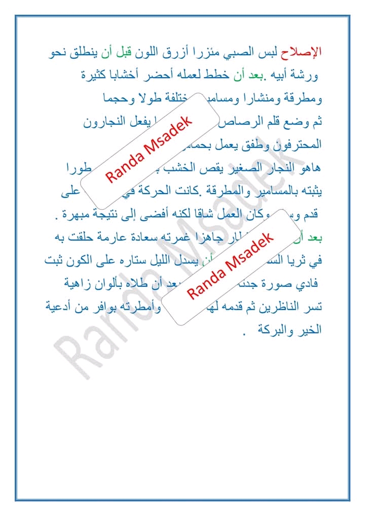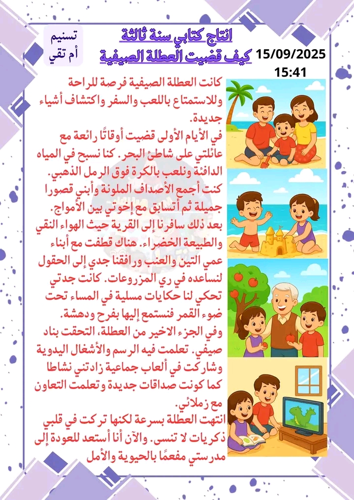 🔸انتاج كتابي كيف أقضي العطلة الصيفية مرفق بالاصلاح