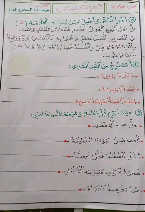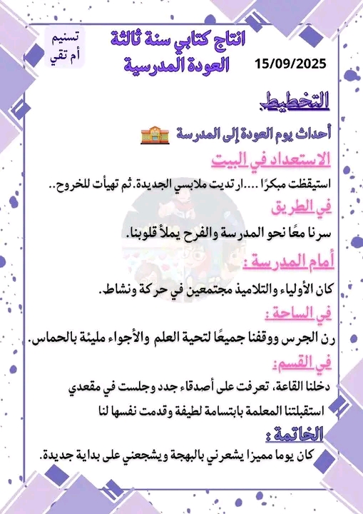 🔸انتاج كتابي العودة المدرسية مرفق بالاصلاح