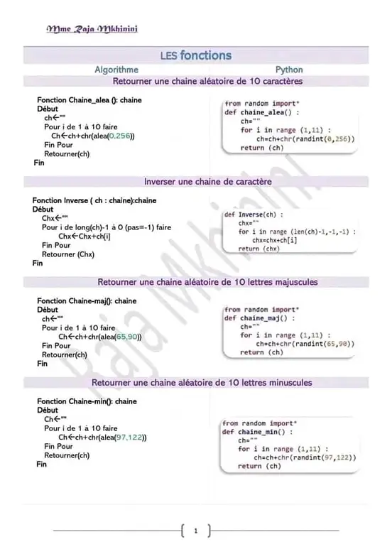 Les sous programmes ( Algorithme et Python).
