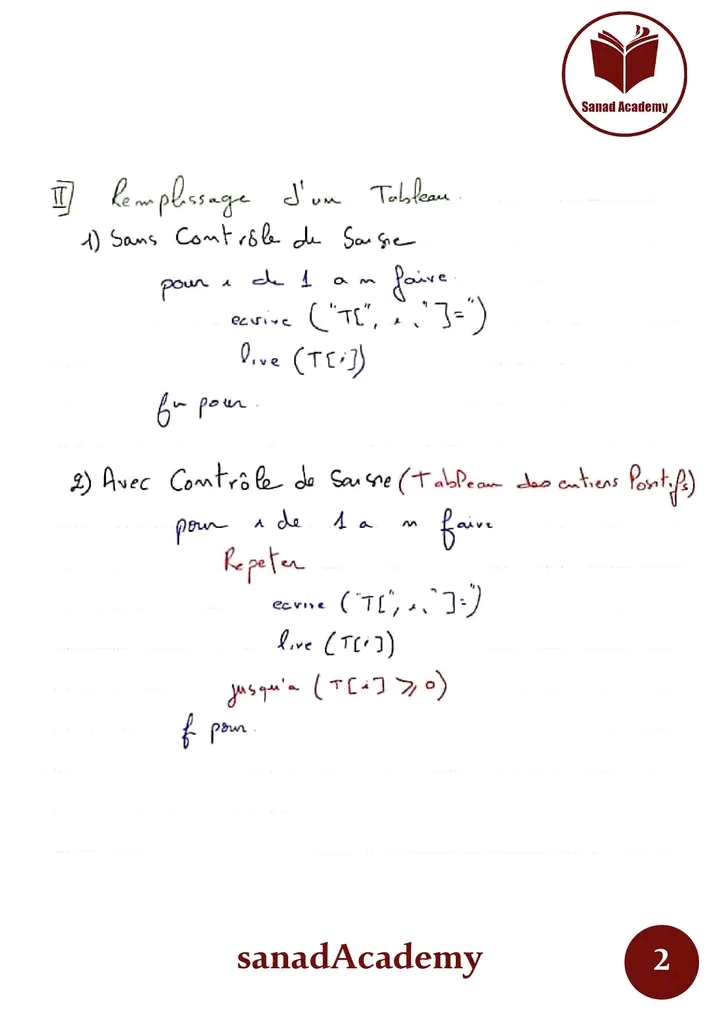 Leçons Algorithme et programmation
