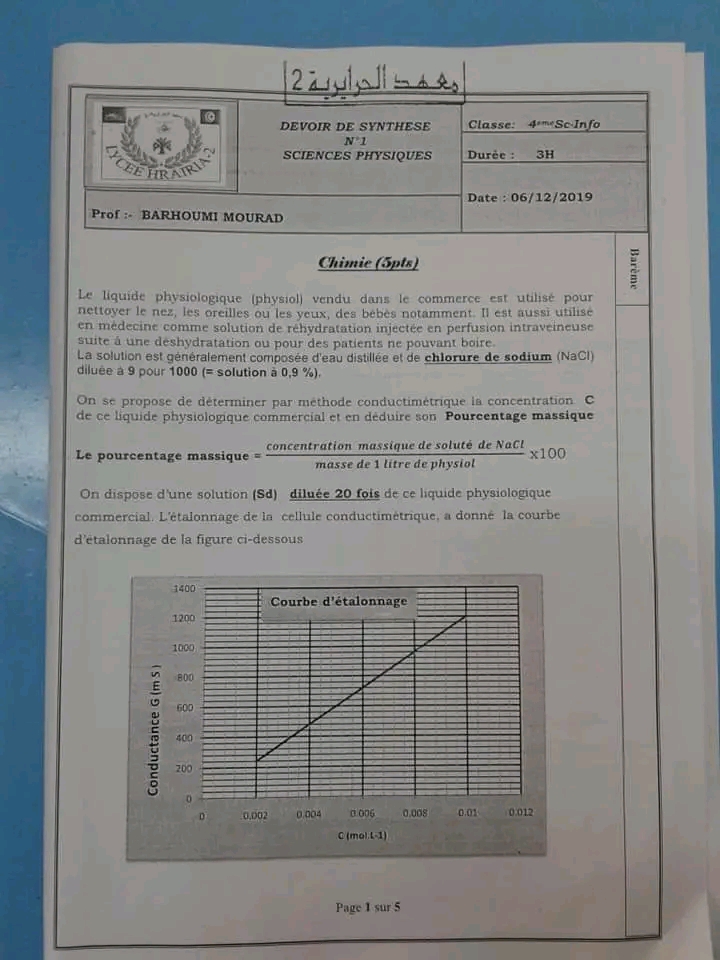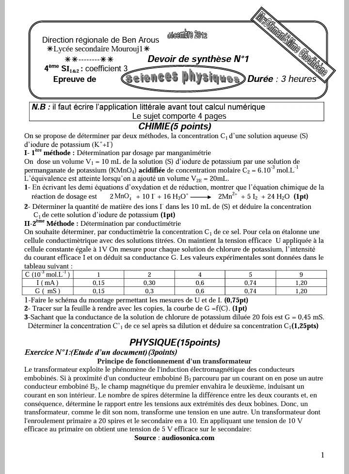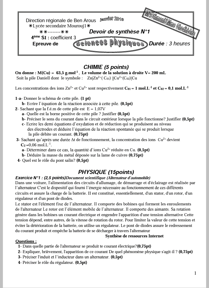 DEVOIR A LA MAISON 1ERE TRIMESTRE 4Sc.Inf