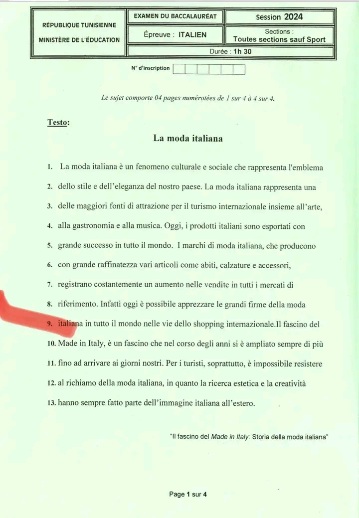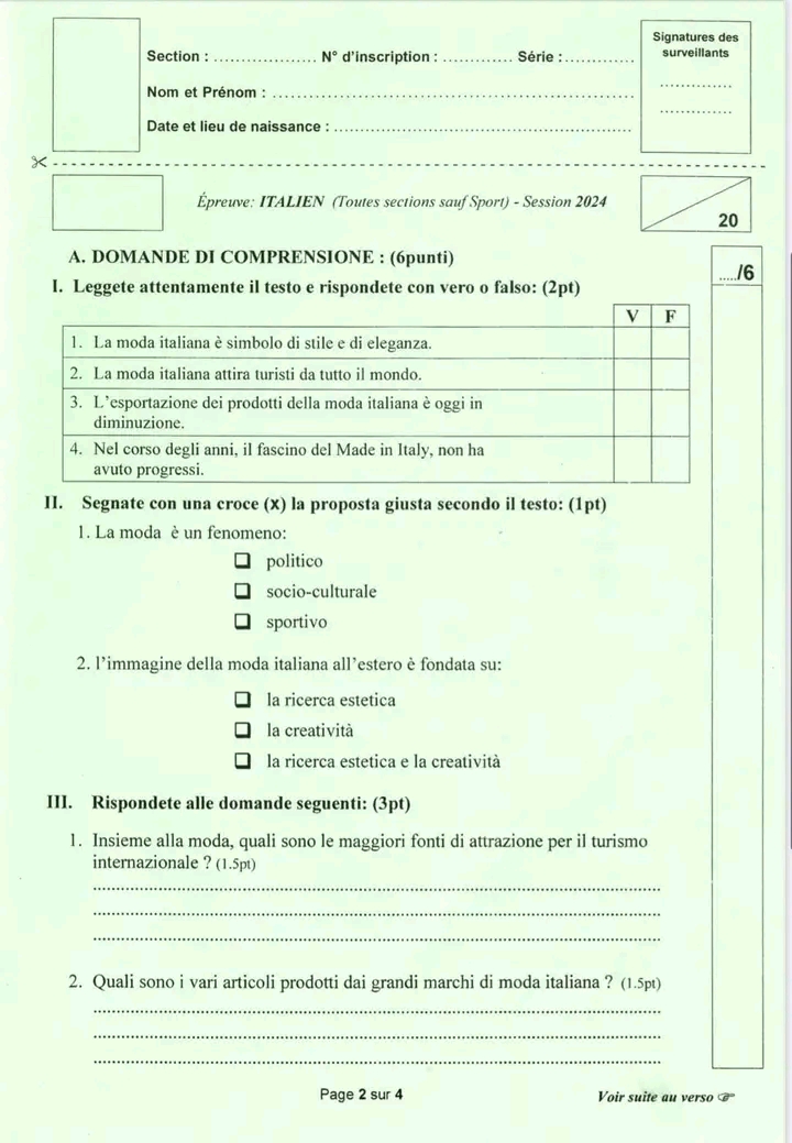 امتحان المادة الاختيارية اللغة الإيطالية - الدورة الرئيسية للبكالوريا 2025 ❤️