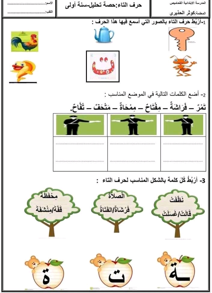 قراءة و انتاج سنة أولى تمارينات متنوعة من اعدا د دروس أنستي منى