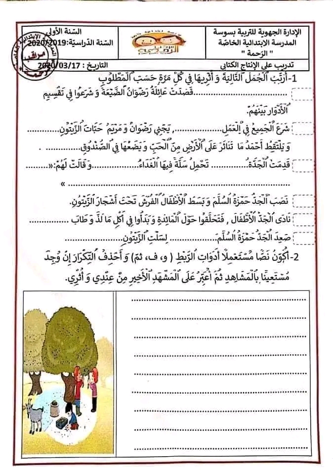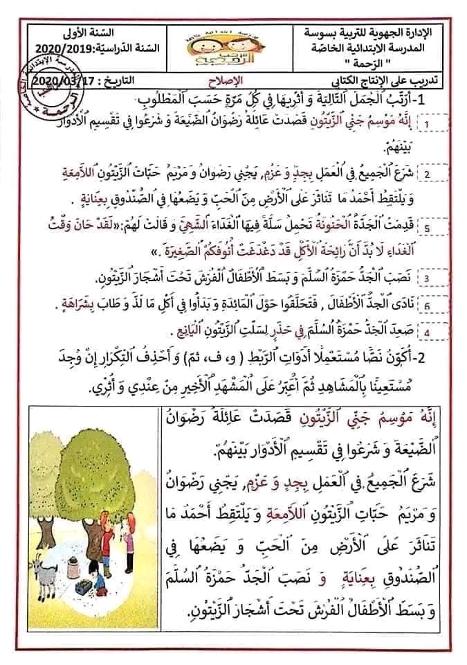 انتاج كتابي مرفق بالاصلاح السنة الاولى الثلاثي الثالث