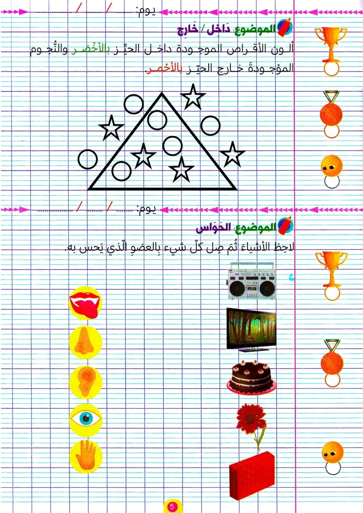 رياضيات الفترة الأولى تعيين موقع شيء بالنسبة إلى شيء آخر في الفضاء✨🚀