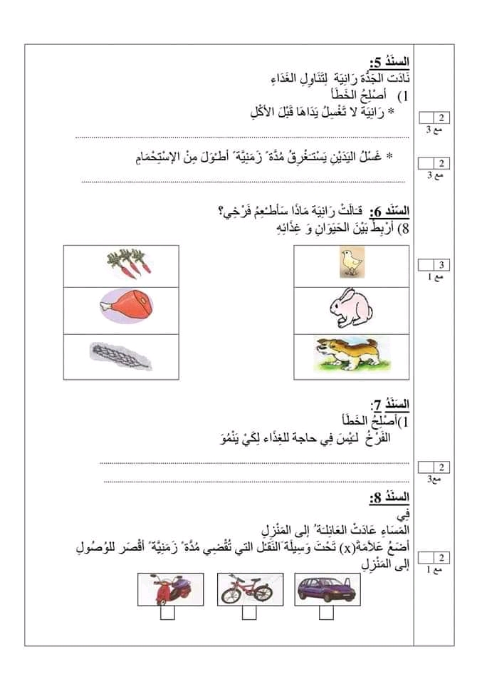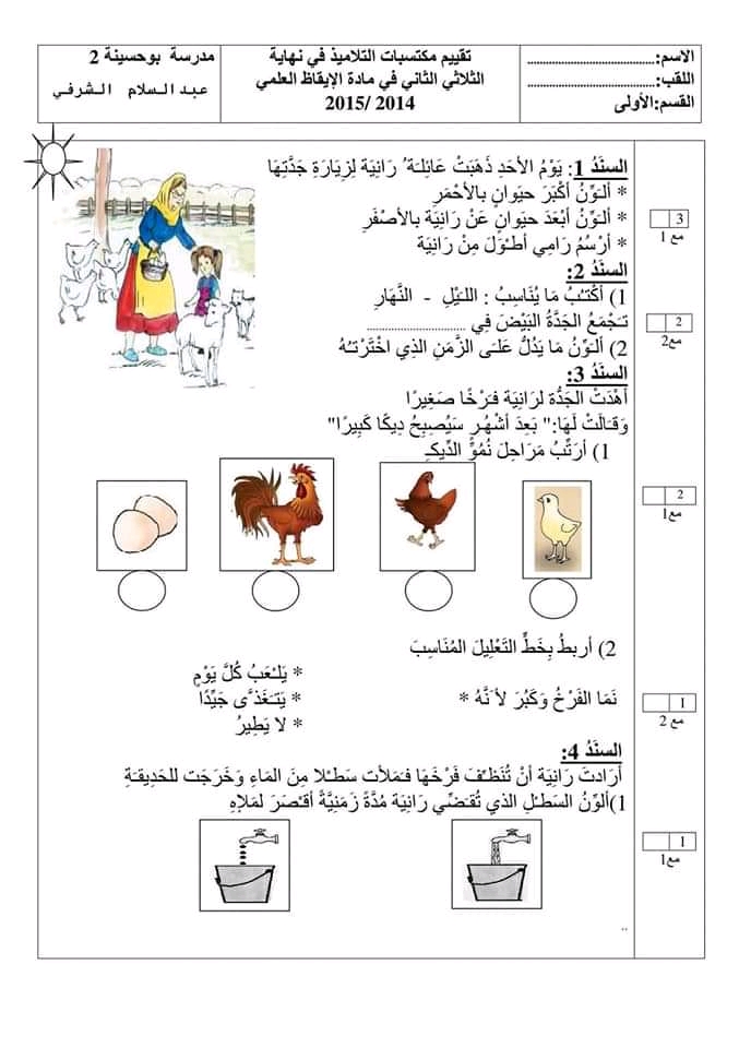 اختبار ايقاظ علمي سنة اولى ثلاثي 1