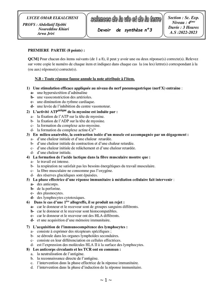 Devoirs de synthèse Sciences SVT trimestre 3 ( 2 )