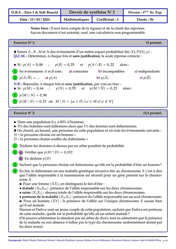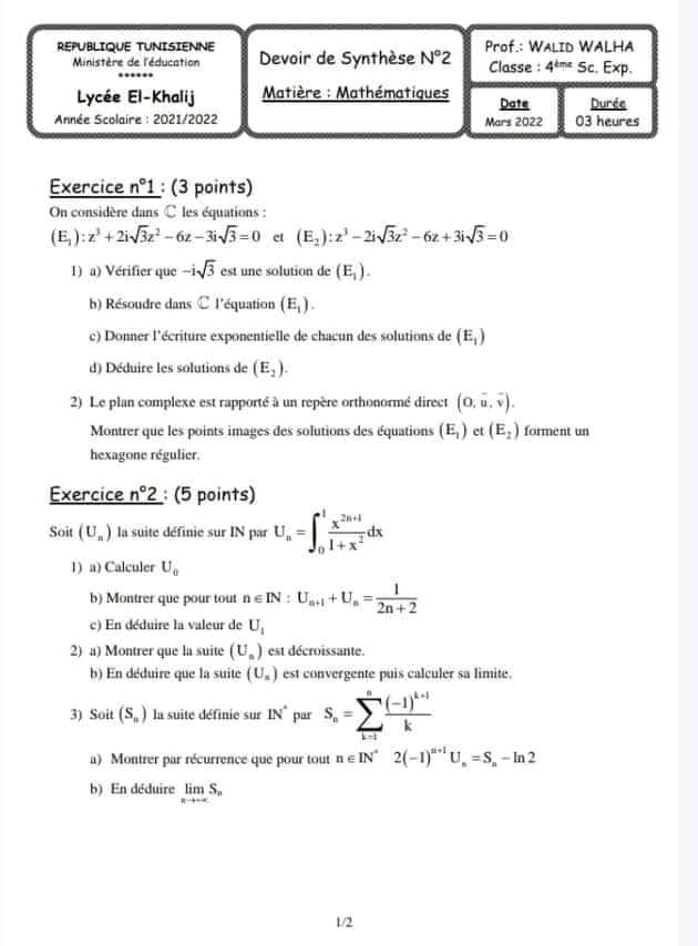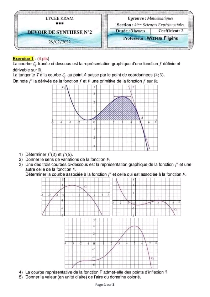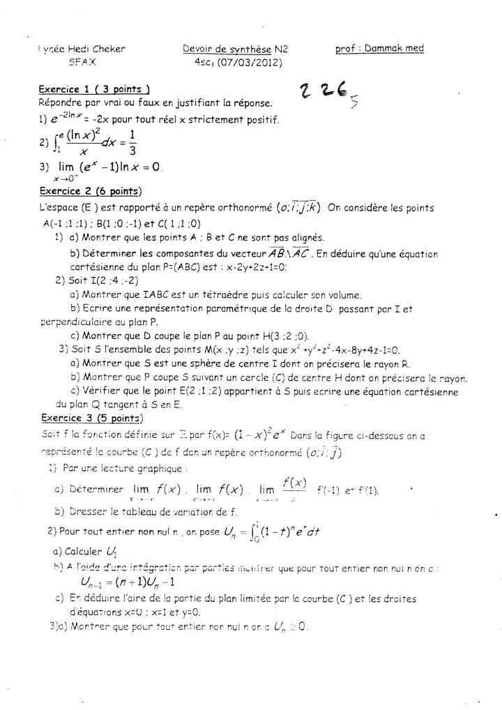 Math devoir de synthèse n 2 math corr