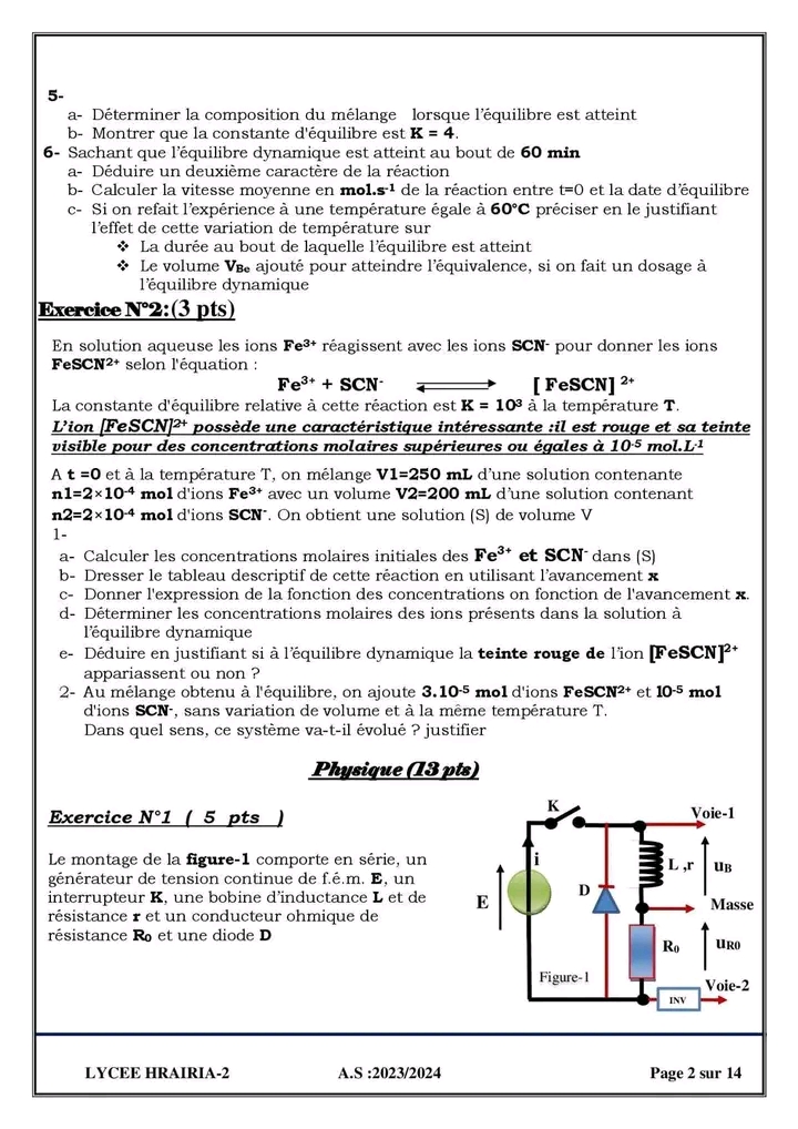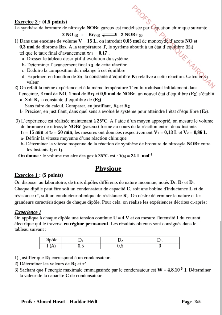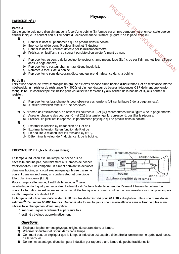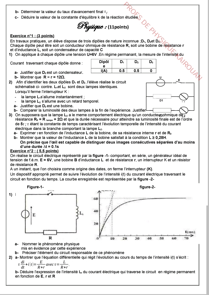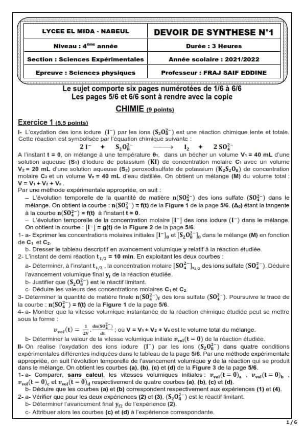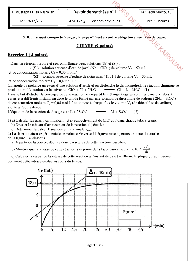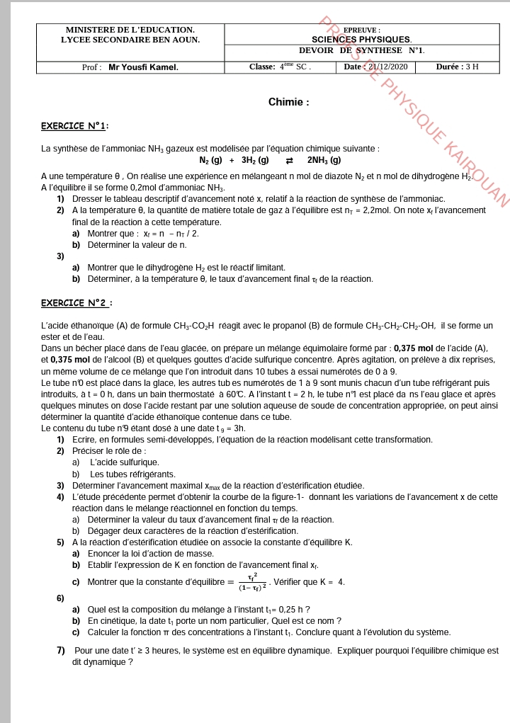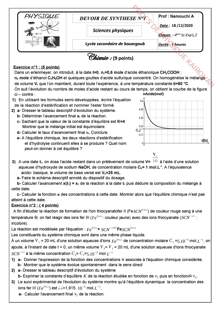 Devoir de Synthèse 1 avec correction ( bac Sciences)