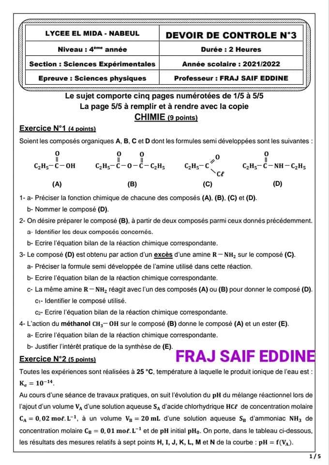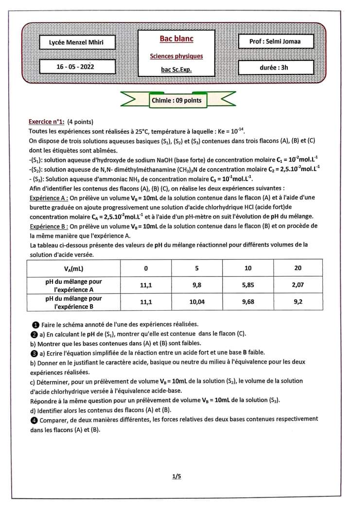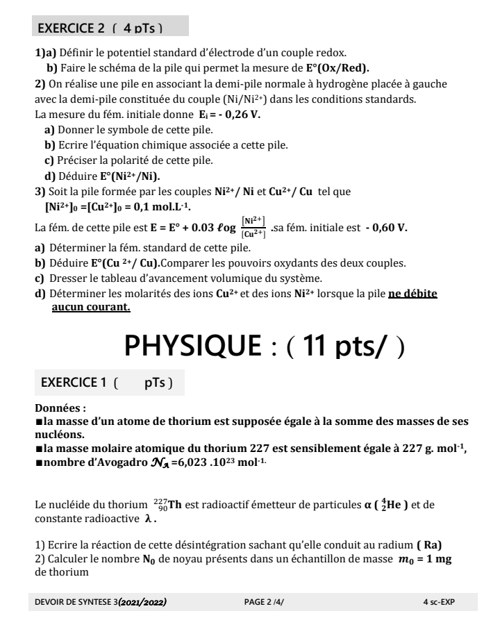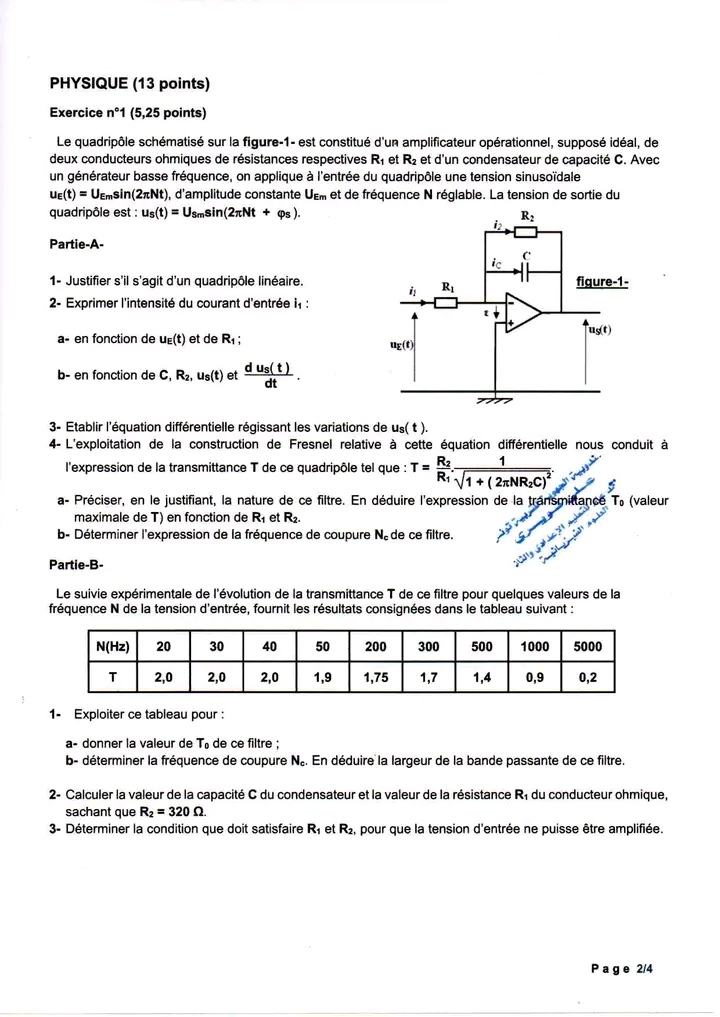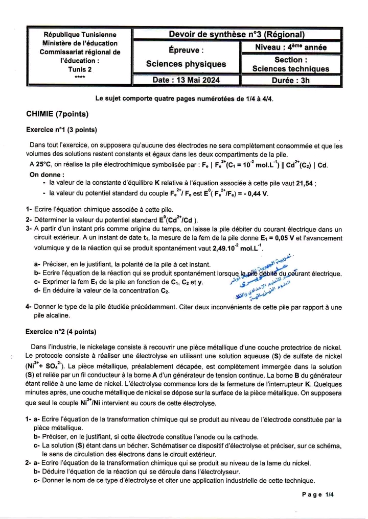 Devoir de synthèse n°3-4Sc.T(Régional Tunis-2)+Correction