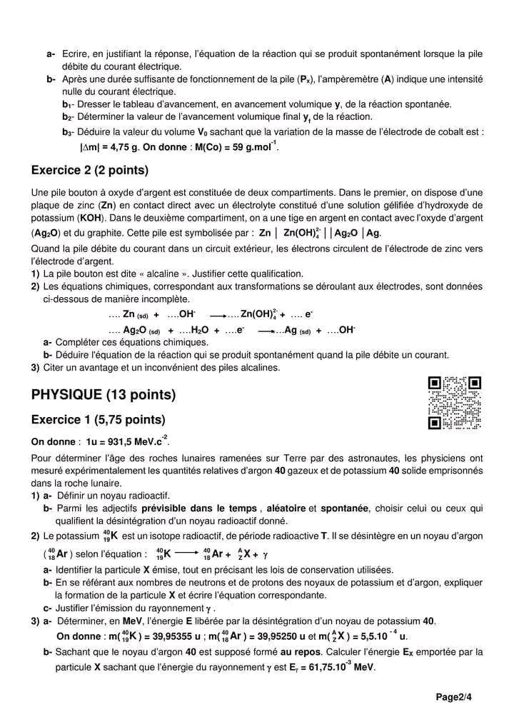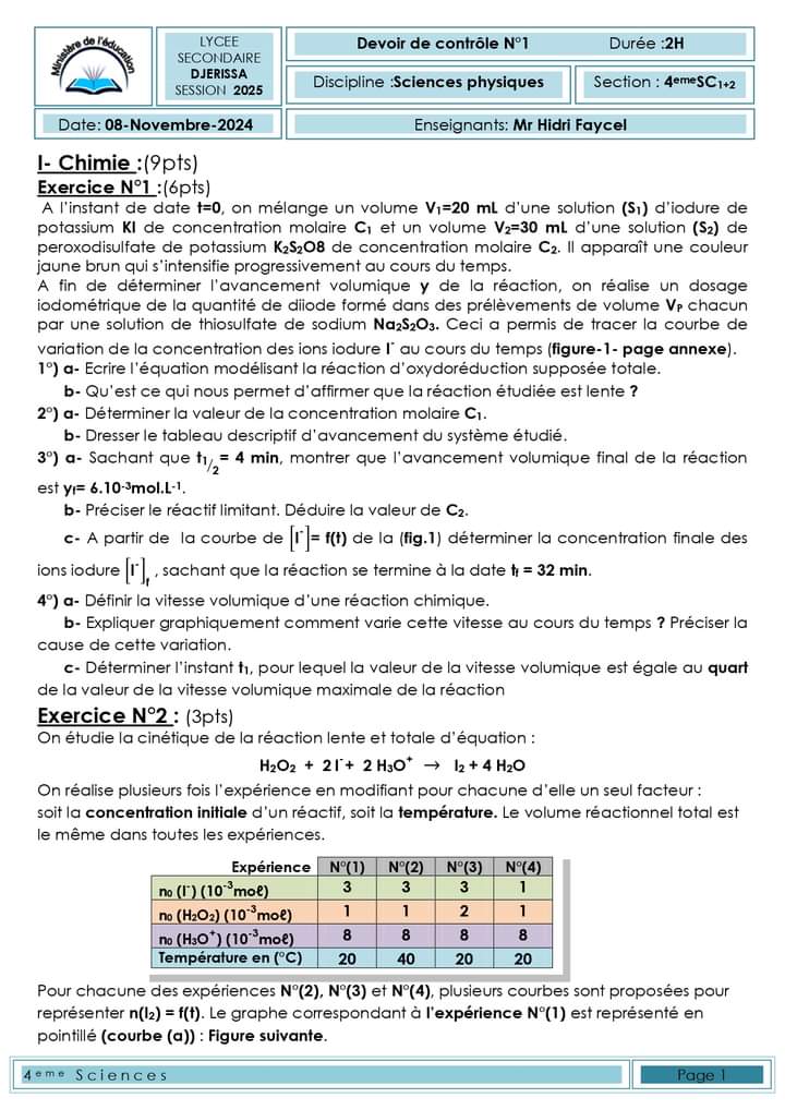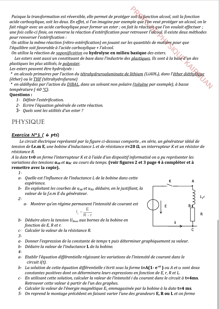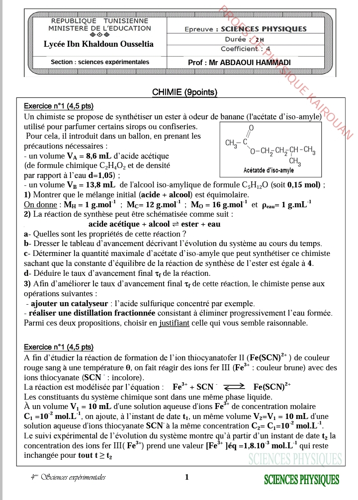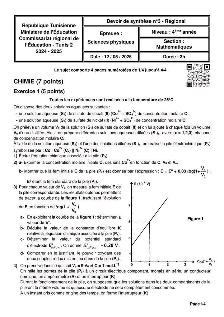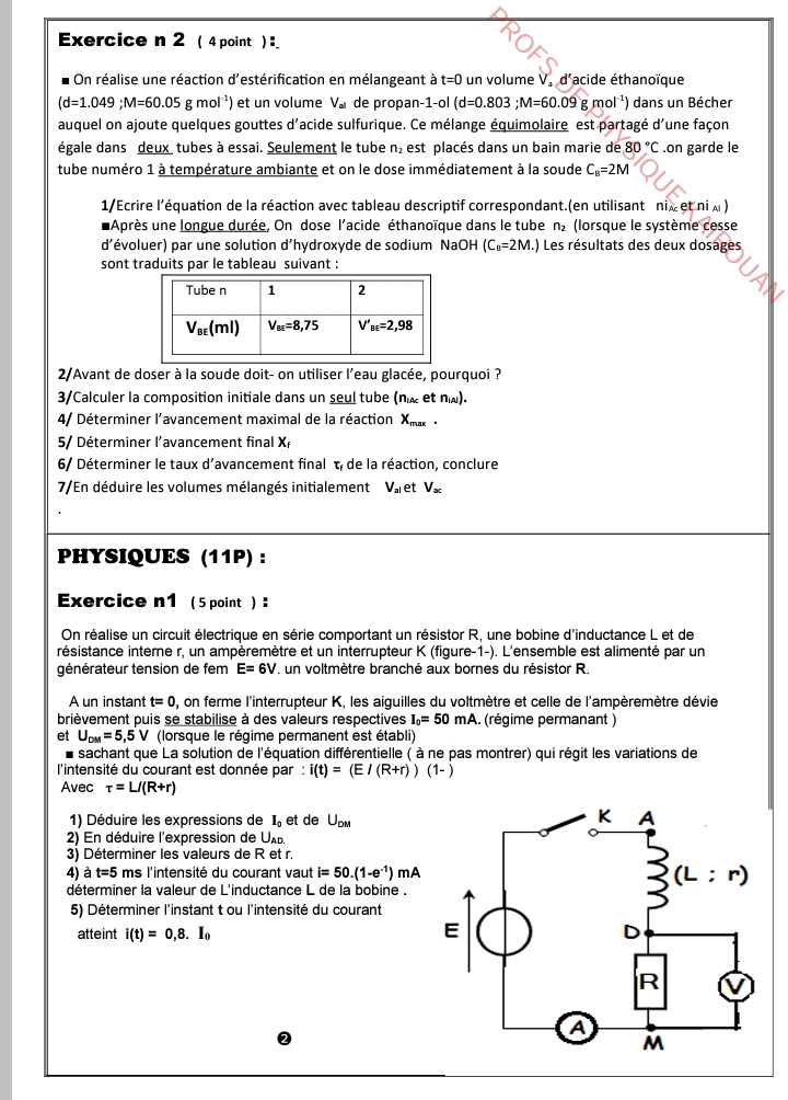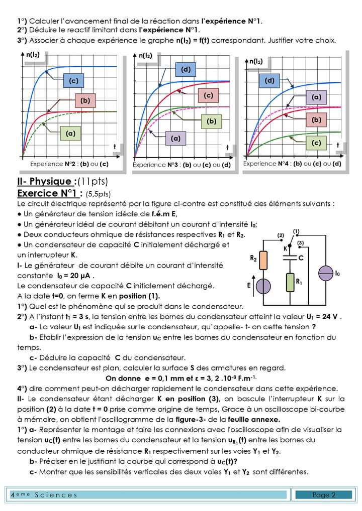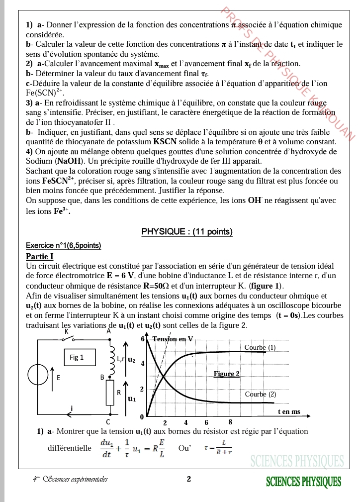 إمتحان العلوم الفيزيائية باكالوريا علوم تجريبية الدورة الرئيسية باكالوريا 2025 .