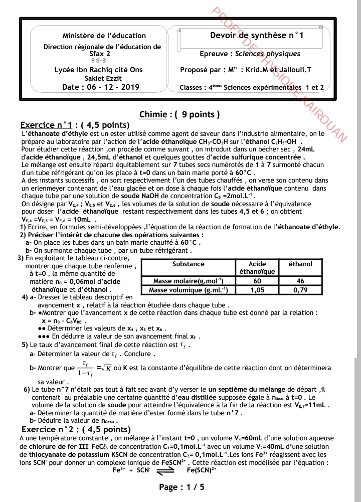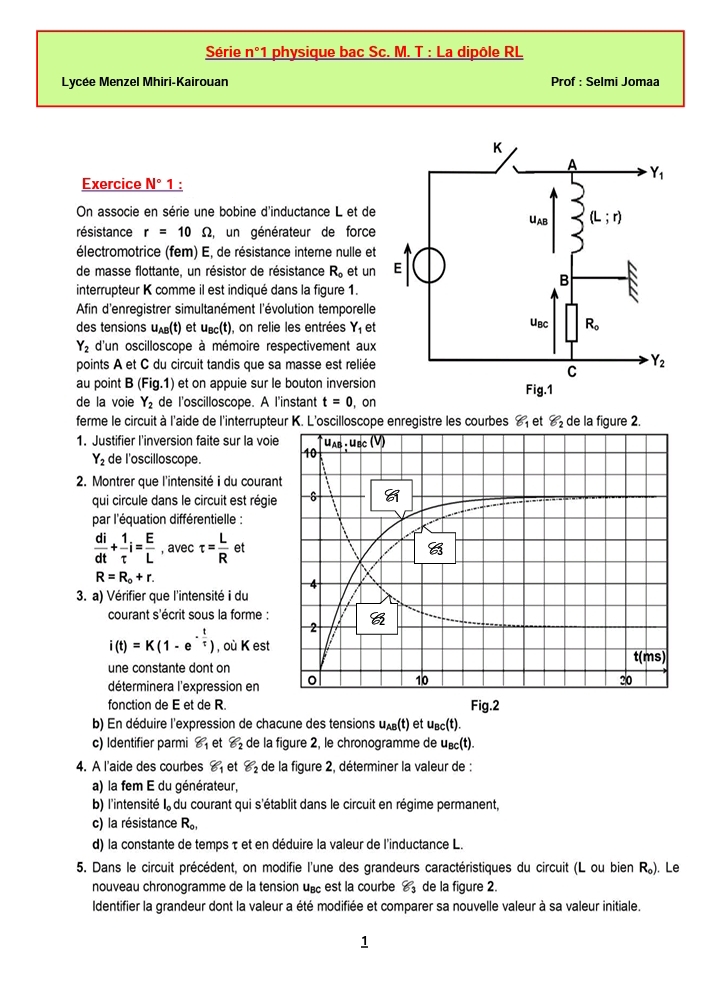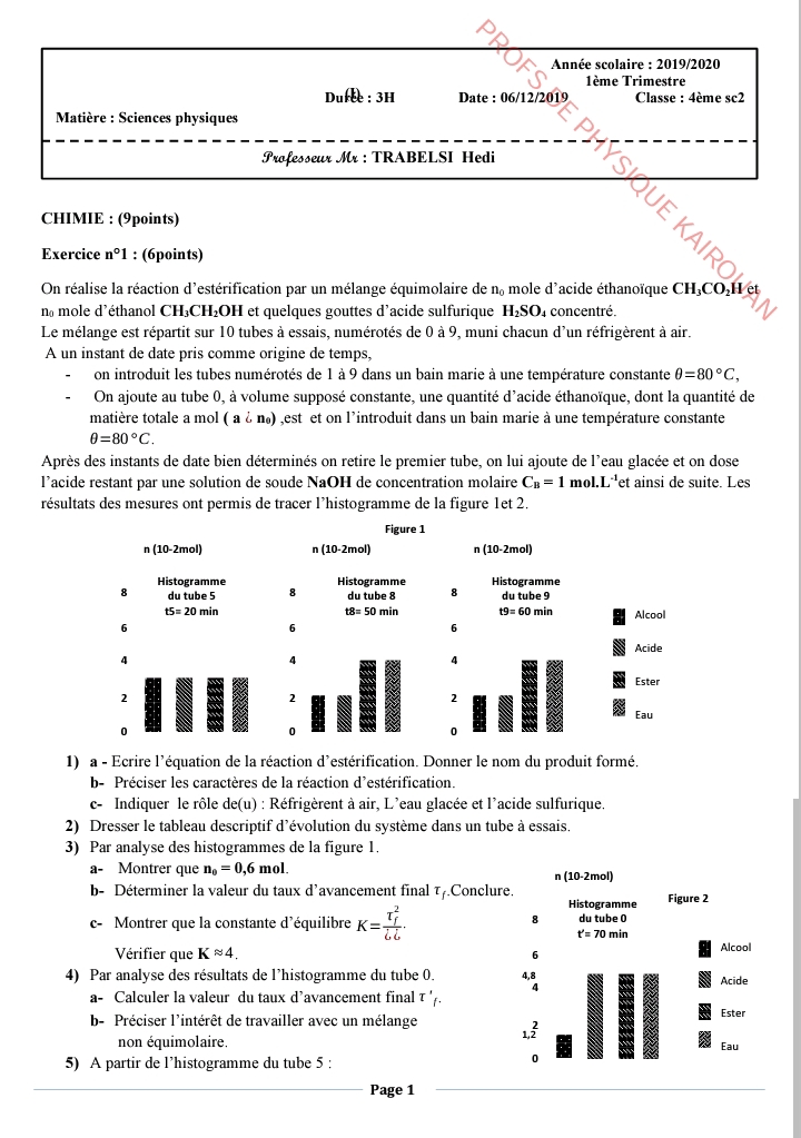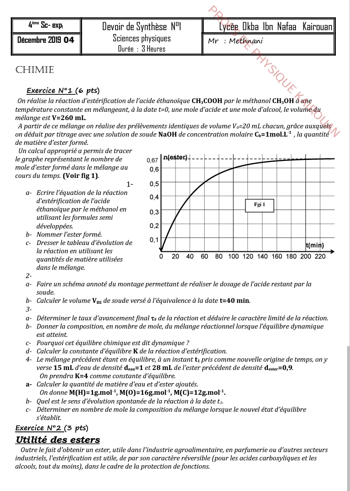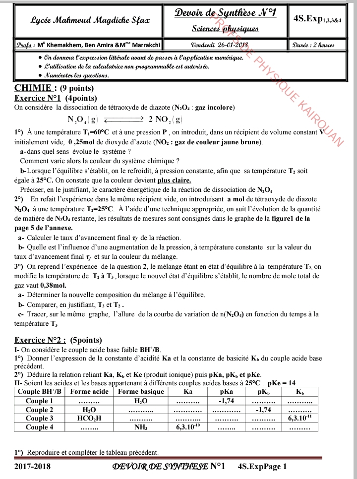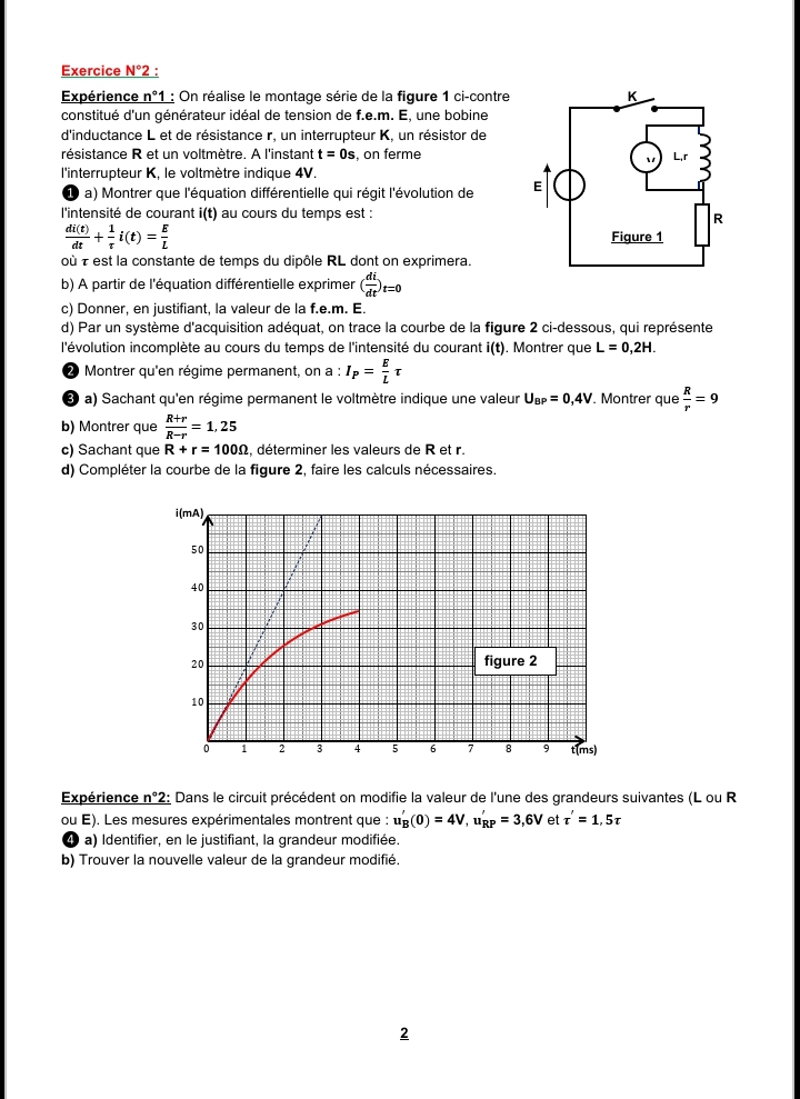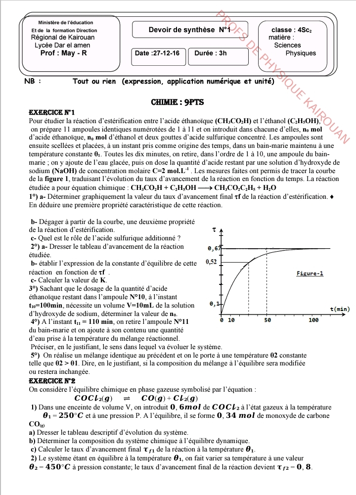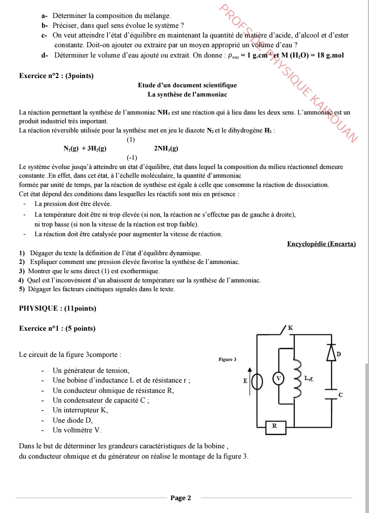 إمتحان العلوم الفيزيائية باكالوريا علوم تجريبية الدورة الرئيسية باكالوريا 2025 .