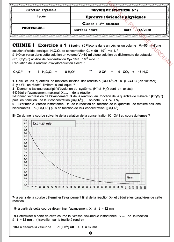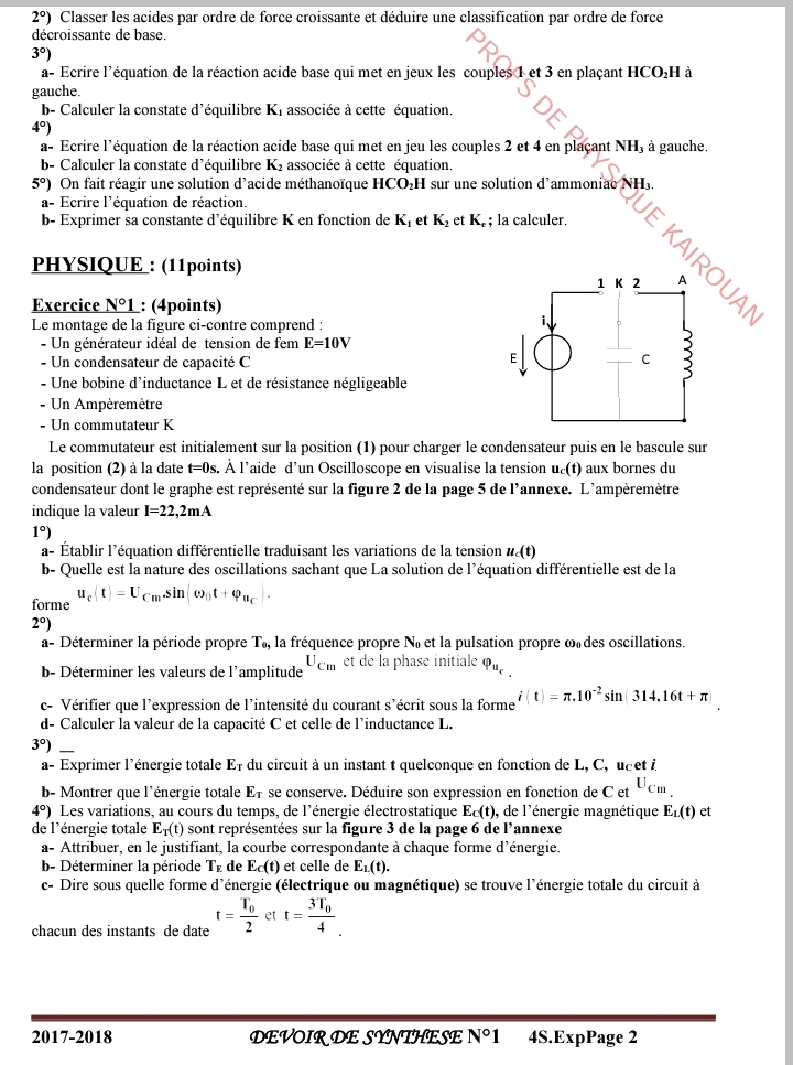 🎯Bac Math : Sciences Physiques+ Correction🎯