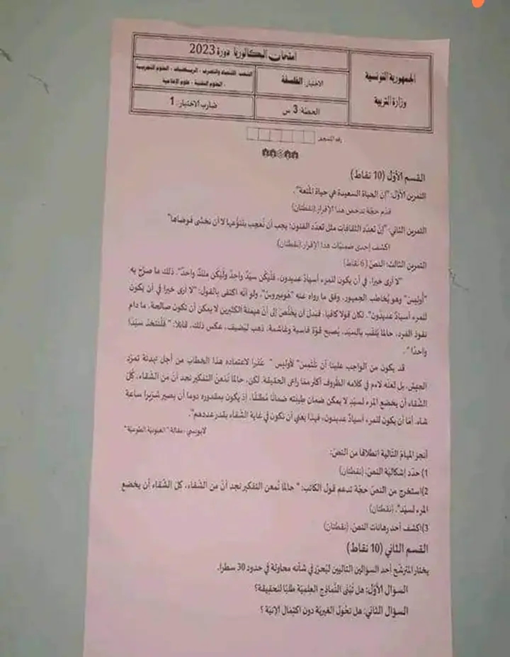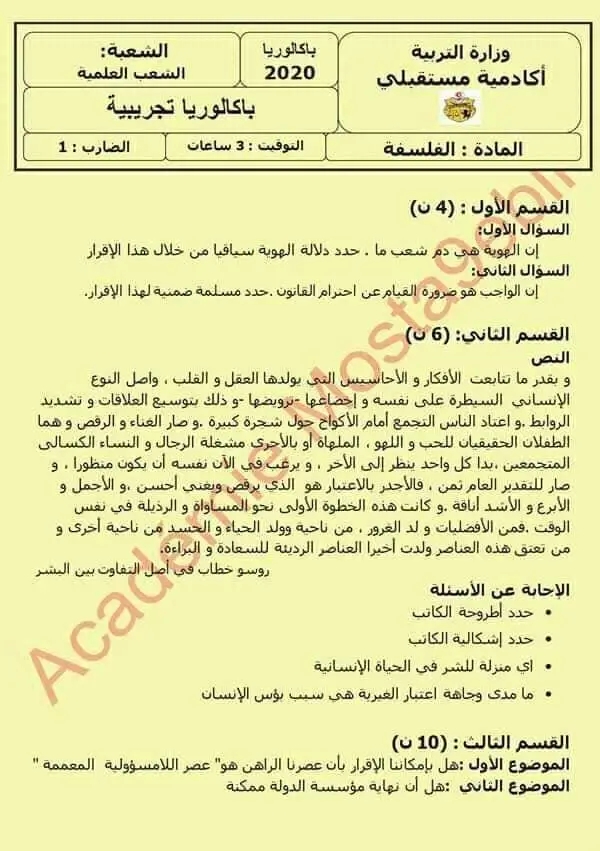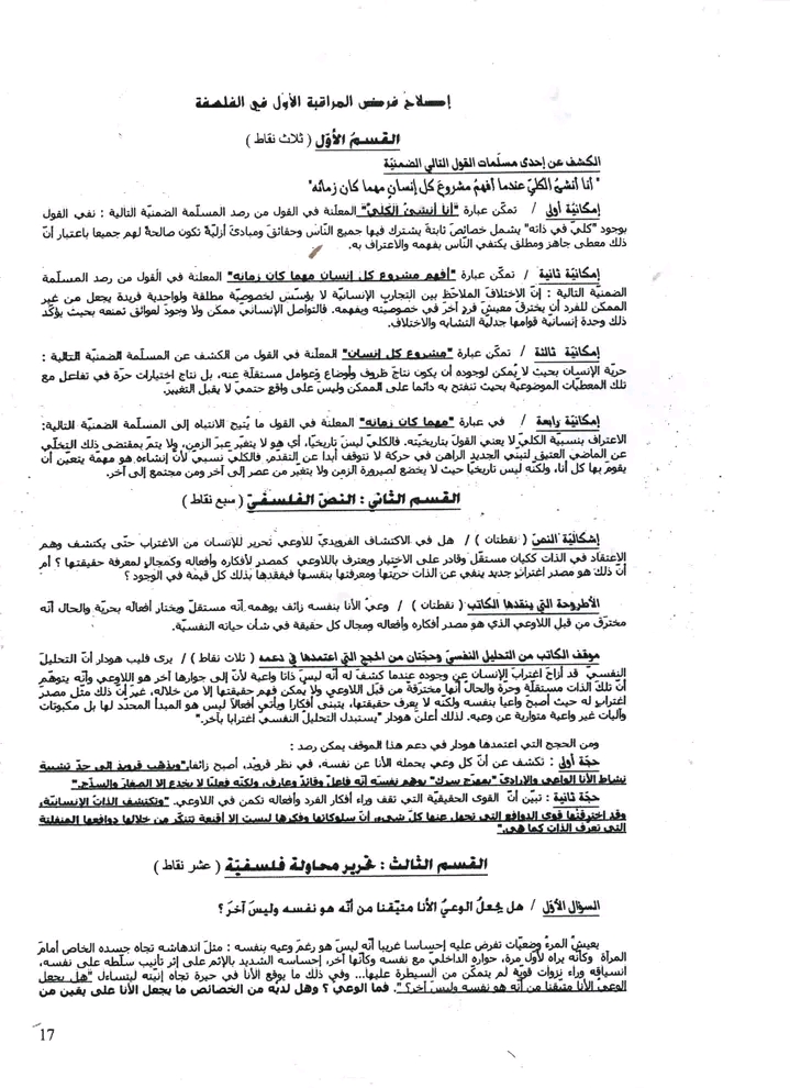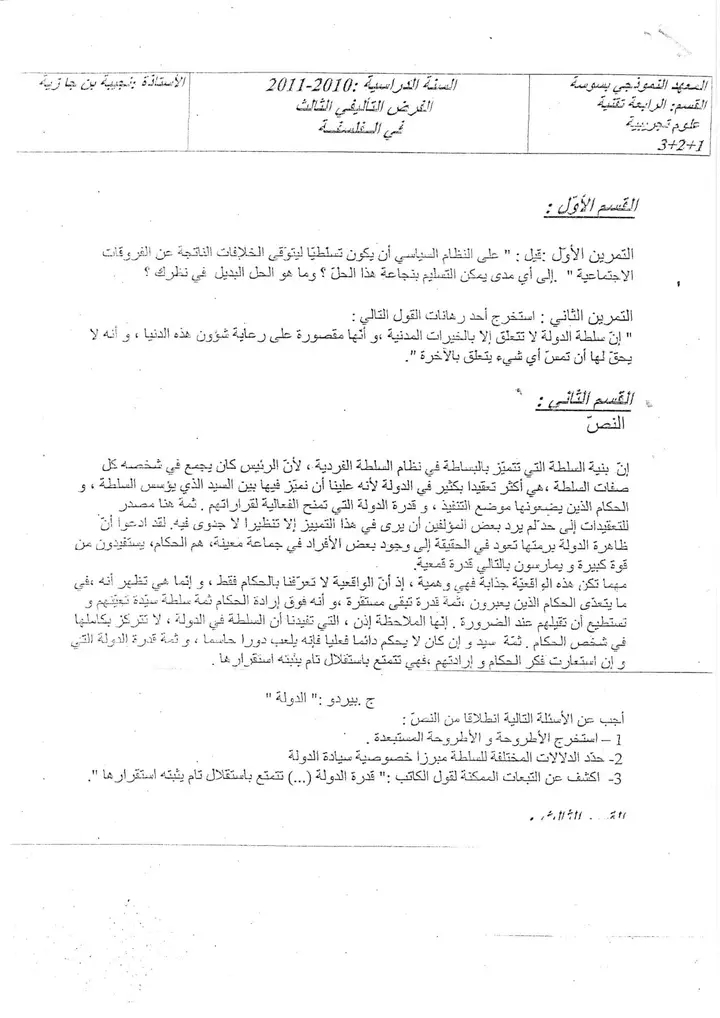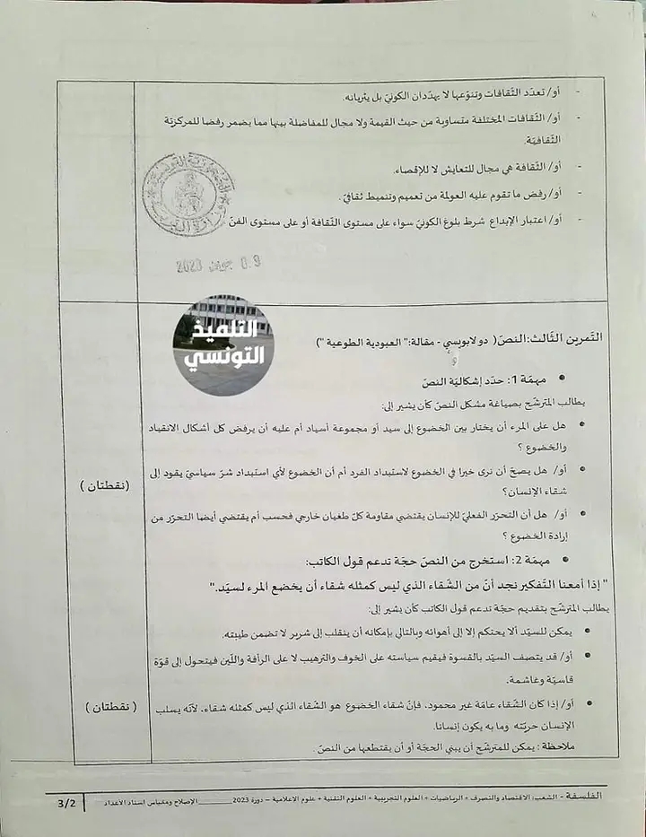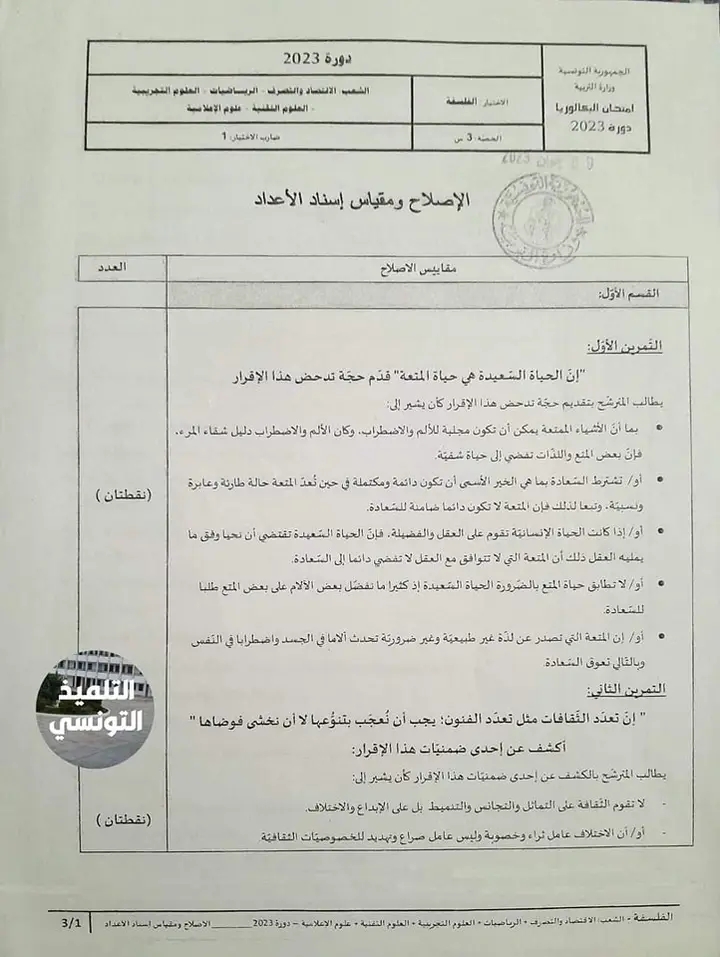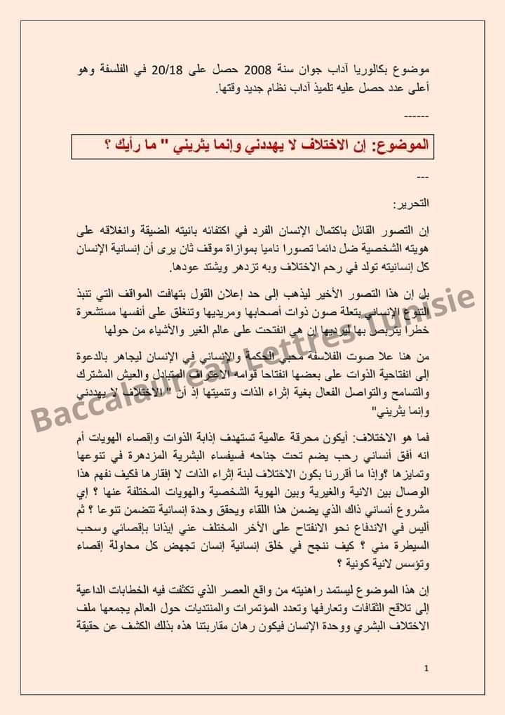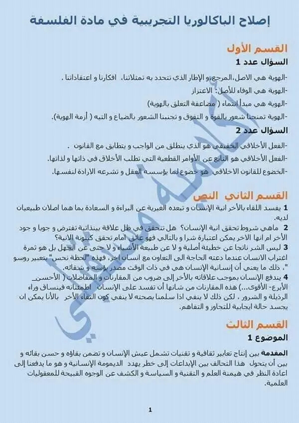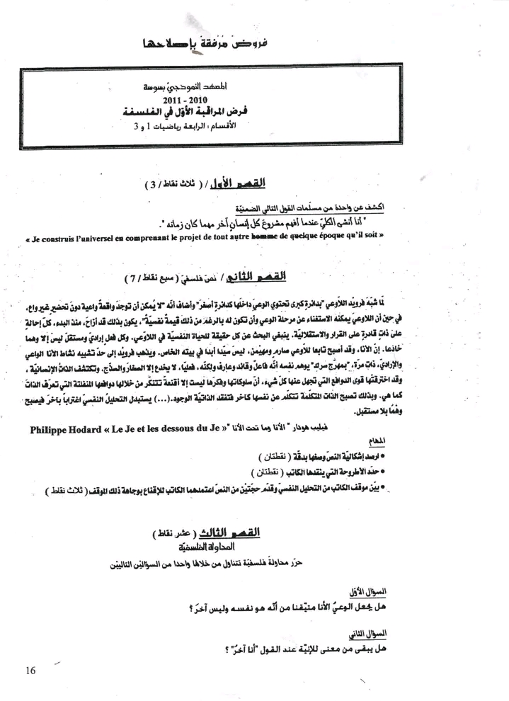فرض مراقبة عدد 1 فلسفة بالاصلاح