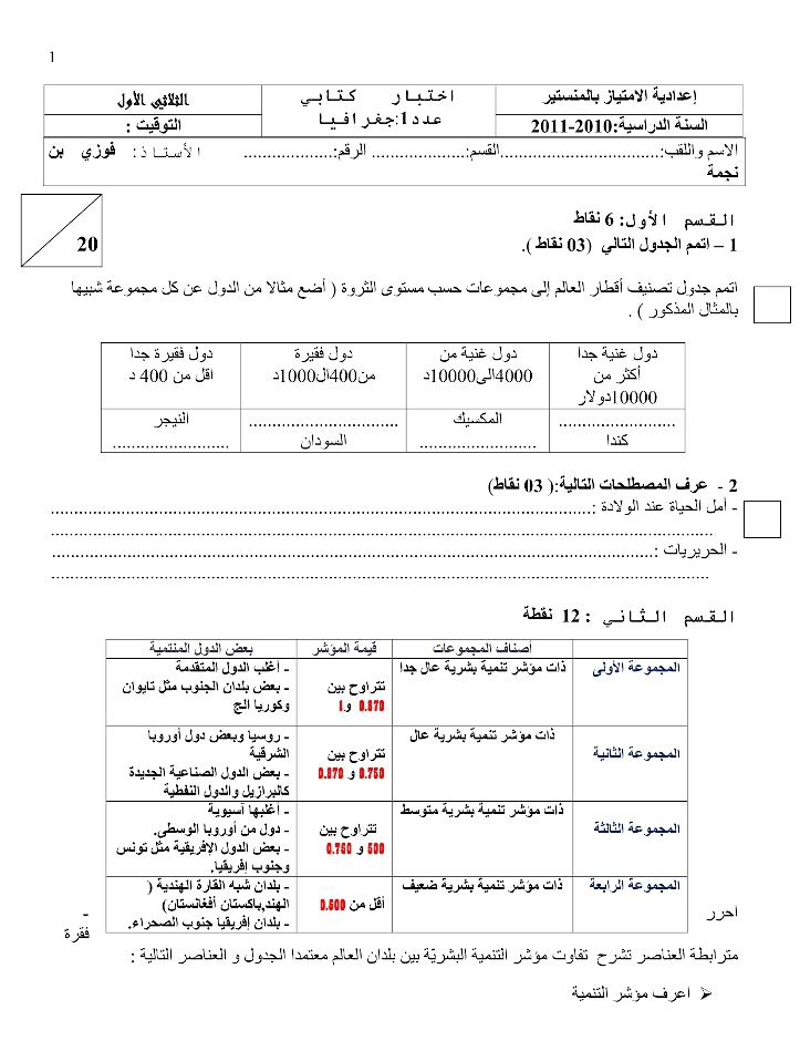 فرض مراقبة عدد 1 في الحغرافيا +الاصلاح ثامنة أساسي شكرا لصاحب العمل اصلاح الجغرافيا القسم الاول: الناتج الدا... فرض مراقبة عدد 1 في الحغرافيا +الاصلاح ثامنة أساسي