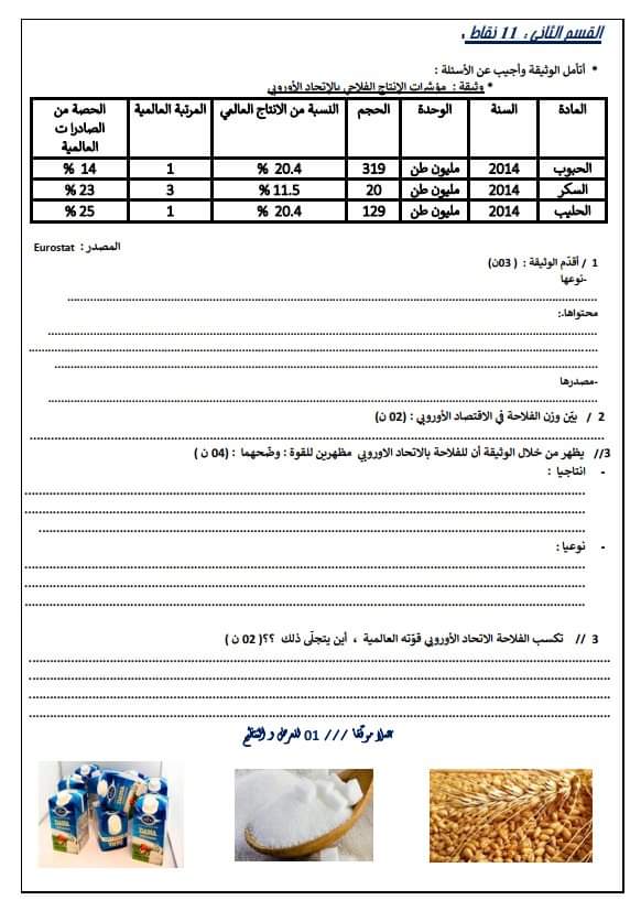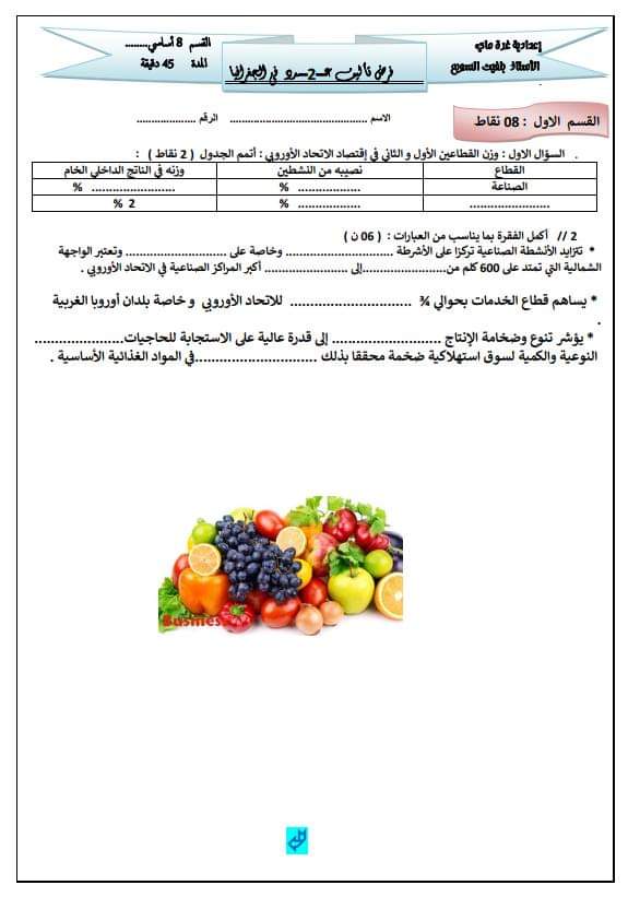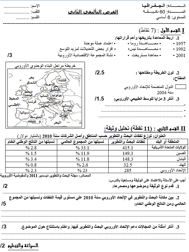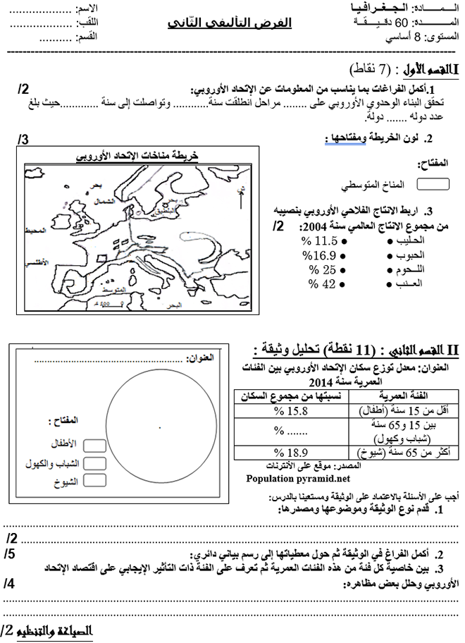 فرض تأليفي عدد 2 في مادة الجغرافيا