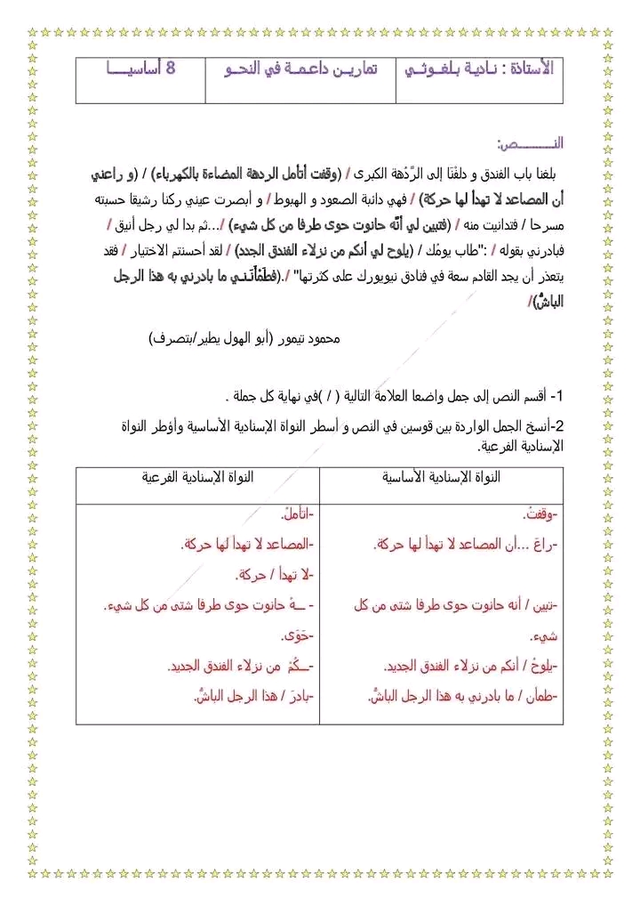 درس 2 النحو : النواة الاسنادية الأساسية والنواة الإسنادية الفرعية جزء 2