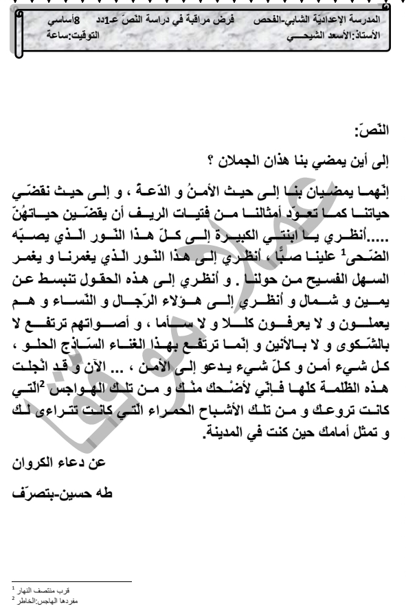 الثامنة أساسيا: محور المدينة و الريف