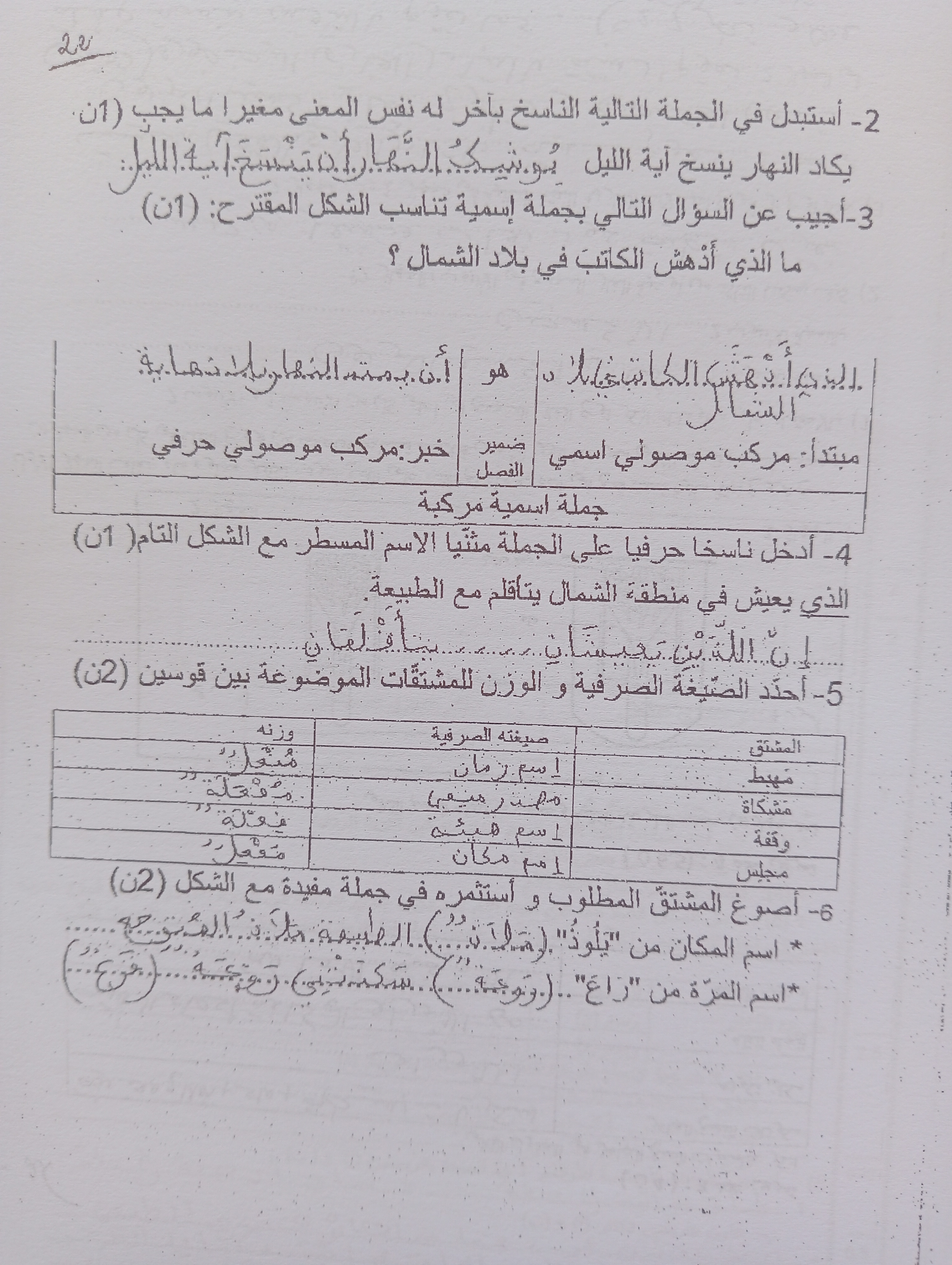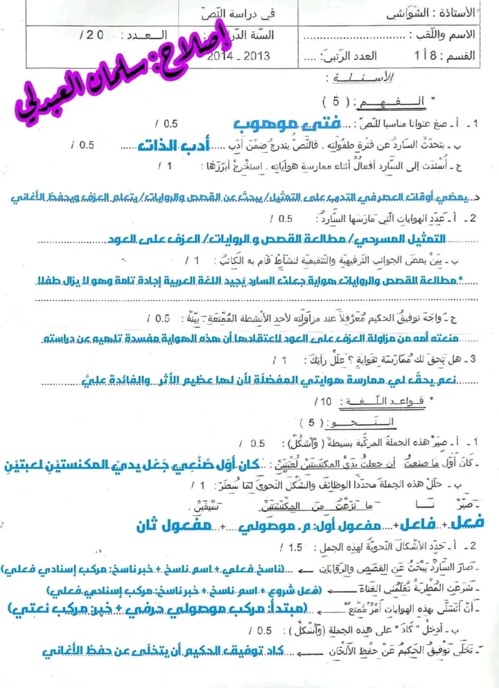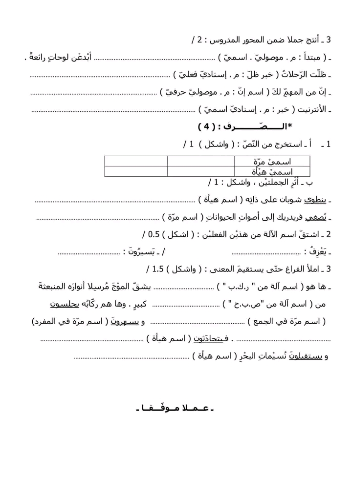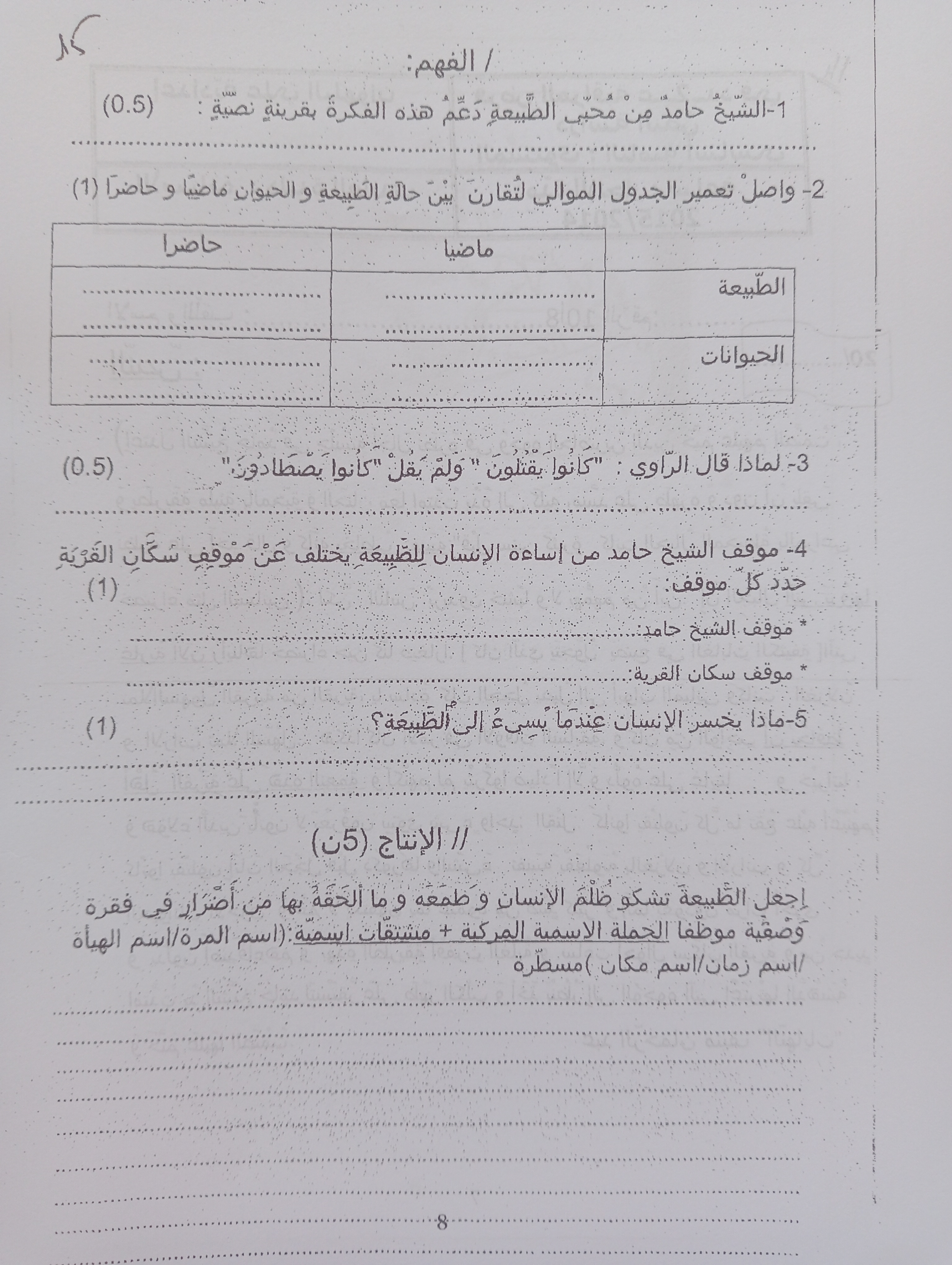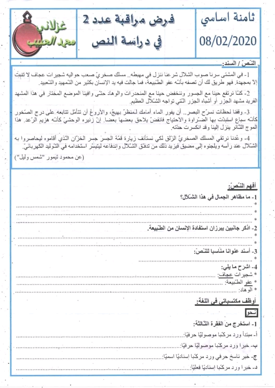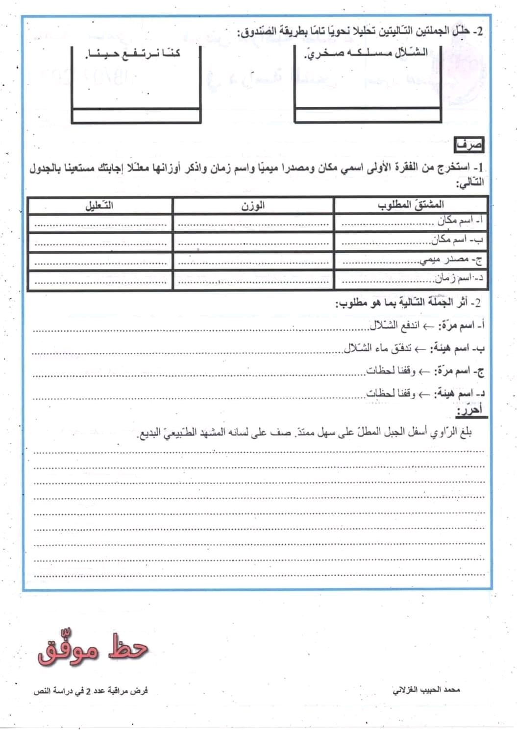 فرض مراقبة عدد 2 في مادة دراسة النص بالاصلاح