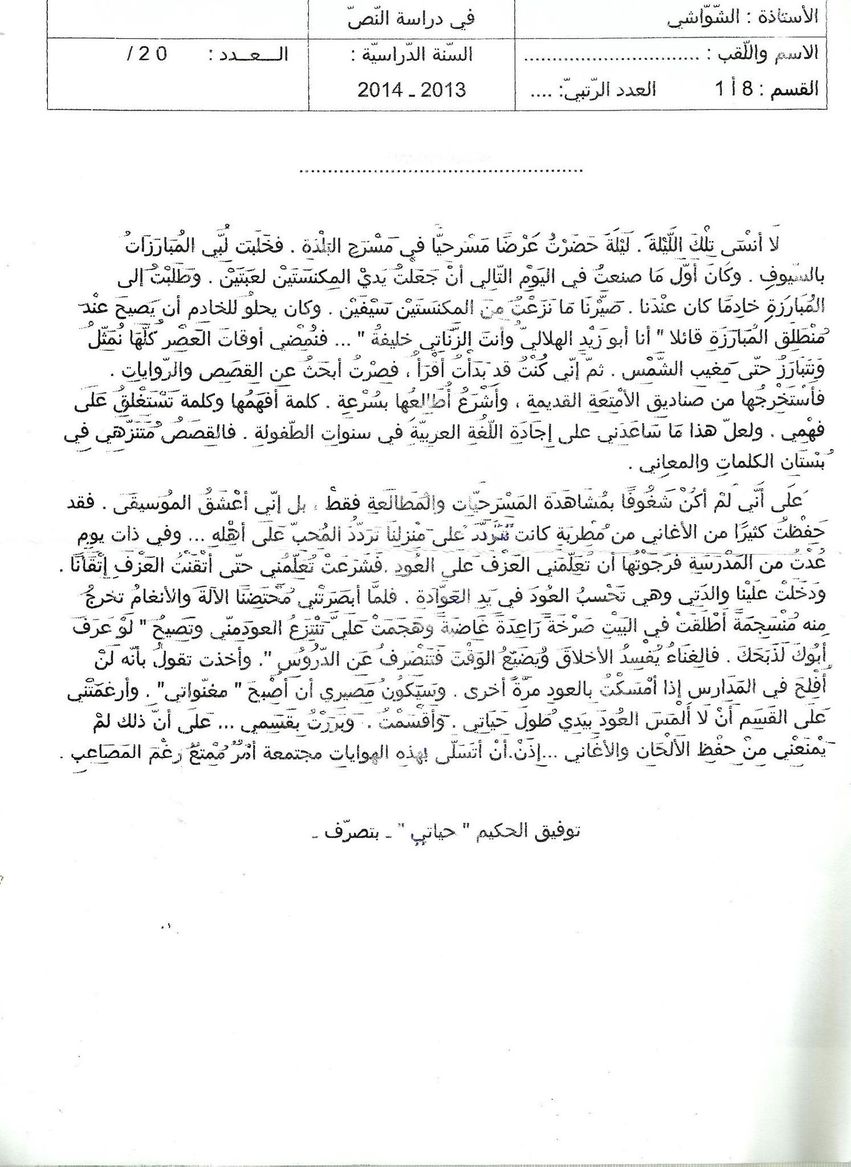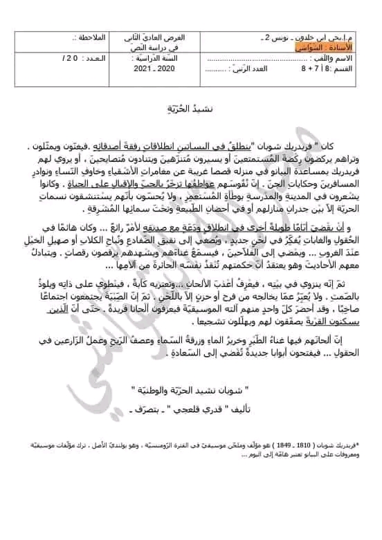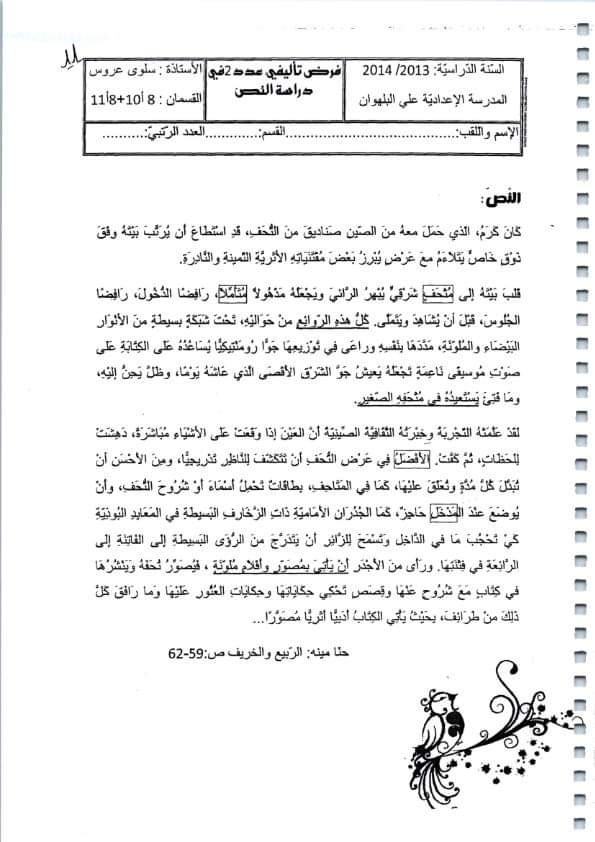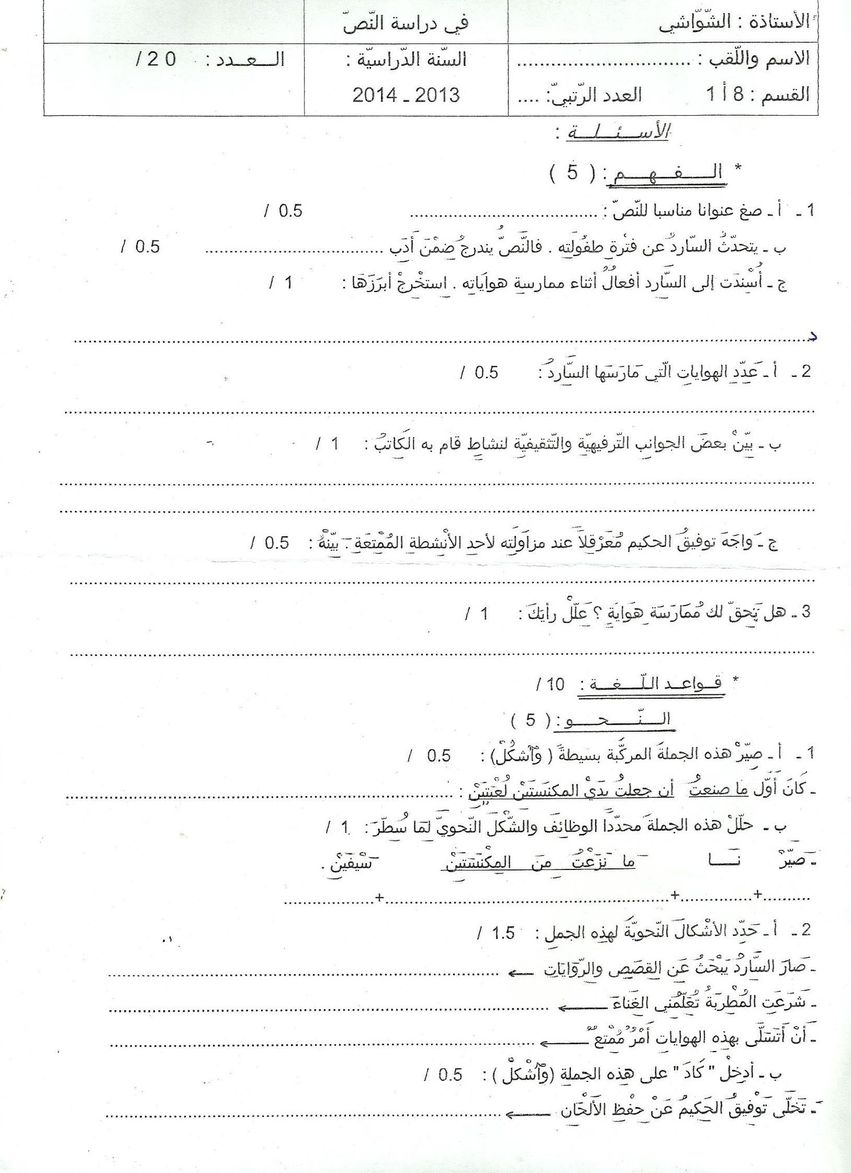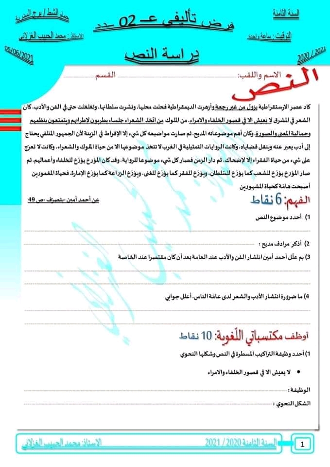 الفرض التأليفي الجامع (8 أساسيا)